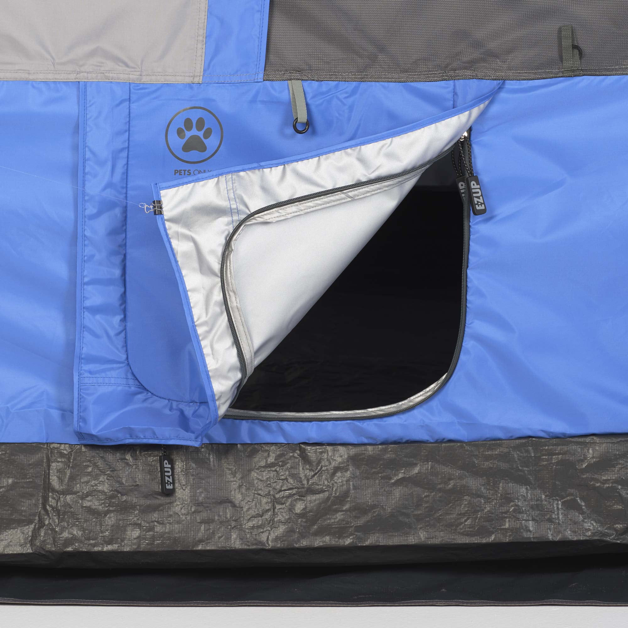 E-Z UP camping cube 6.4 converts 10′ straight leg canopy into camping tent! The Camping Cube tent is a spacious and easy-to-set-up camping accessory product for you, your family and next fun trip. The Camping Cube tent sets up in seconds, turning your existing E-Z UP shelter into a camping haven. Or, build your own custom camping E-Z UP shelter and Camping Cube setup from scratch (Shelter not Included). Fast and Easy Setup, perfect for any camping trip. he Camping Cube pop-up tent add-on is not self-standing. The 6. 4 Camping Cube is designed to work with a straight leg frame. Recommended compatible models: 10′ x 10′ Vantage, 10′ x 10′ Pyramid, 10′ x 10′ Eclipse, 10′ x 10′ Enterprise, 10′ x 10′ ES100S, or 10′ x 10′ Hi-Viz. Not compatible with 10’ x 10’ Ambassador or 10’ x 10’ Envoy Shelter. The camping cube add-on works to transform a 10’ x 10’ straight leg Shelter into an entirely new space for any upcoming camping trip. Frame/top (Shelter) not included. The camping cube 6. 4 add-on accommodates up to 6 People with room for your 4-legged friend (That’s where the . 4 comes from) with built in pet entry. Highest Height setting is 6’4” (approx. 76”). the camping cube measures 111” L x 111” W x 76” H (350 cm x 281 cm x 281 cm) offering more 541 cubic feet (27. 6 M3) of room.