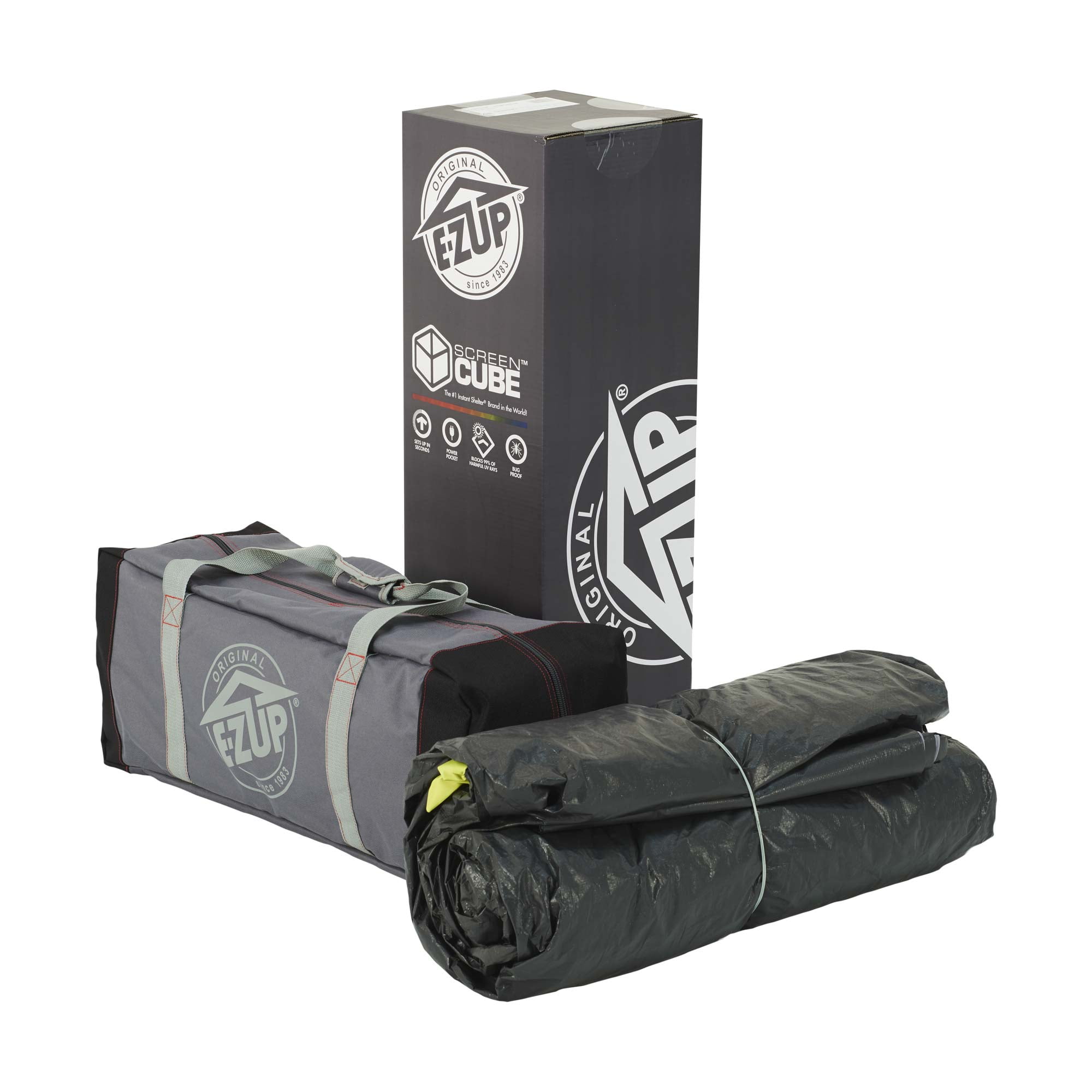E-Z UP Screen Cube™ 5 sets up in seconds by connecting to your E-Z UP® Instant Shelter canopy Frame/top not included Available for E-Z UP Angled Shelters Oversize entry door, providing plenty of room to give E-Z access for all your belongings & gear Heavy-Duty E-Z Zipper and Zipper Pulls that allows for smoother operation and secure closing Power pocket that runs the extension cords and power your devices with convenience. Keeps weather out & flaps plus zipper E-Z UP Accessory Gear Bag for transport Seam sealed bug proof ceiling for more protection with a fully enclosed, water-resistant, and insect-proofing ceiling Oversize Entry Door Power Pocket O-Ring Attachment Points ideal for hanging rope, lighting, and lanterns Dimensions: 100″L x 100″W x 76″H Shelter Size: 10 x 10 Recommended Uses: Camping, Beach, Trade Shows, Troop Events Recommend using with E-Z UP® Dome®, Vista™ 3-year warranty Fits 5 May be used with 10′ x 10′ Angled Leg Vista or Dome