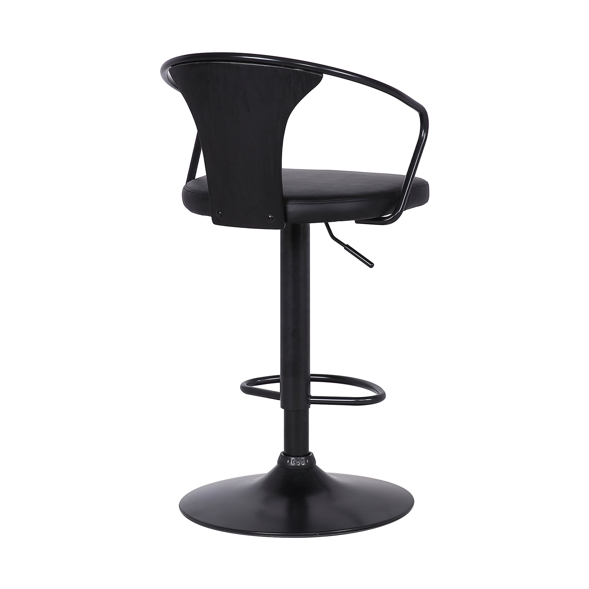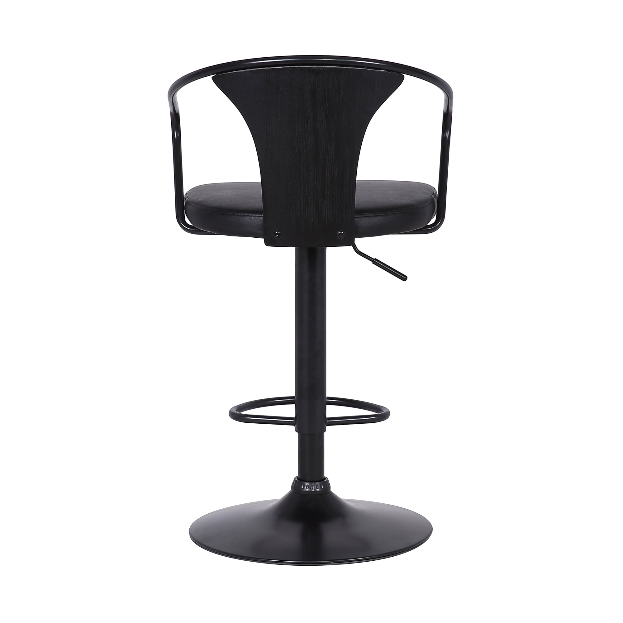 Eagle Adjustable Height Swivel Black Faux Leather and Black Wood Bar Stool with Black Metal Base