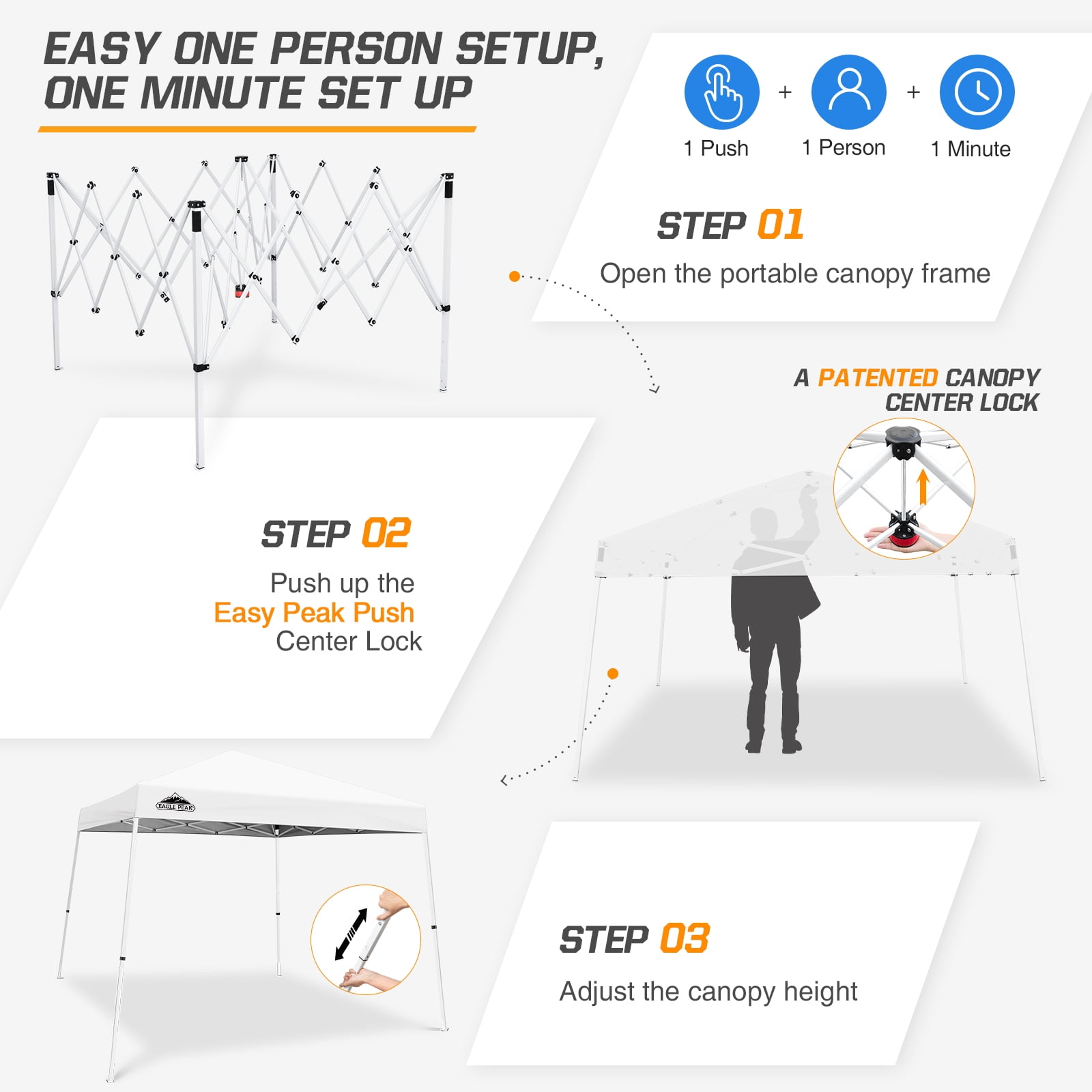 EAGLE PEAK 10’ x 10’ Outdoor Canopies Easy One Person Setup, UV Protected, Water Resistant
