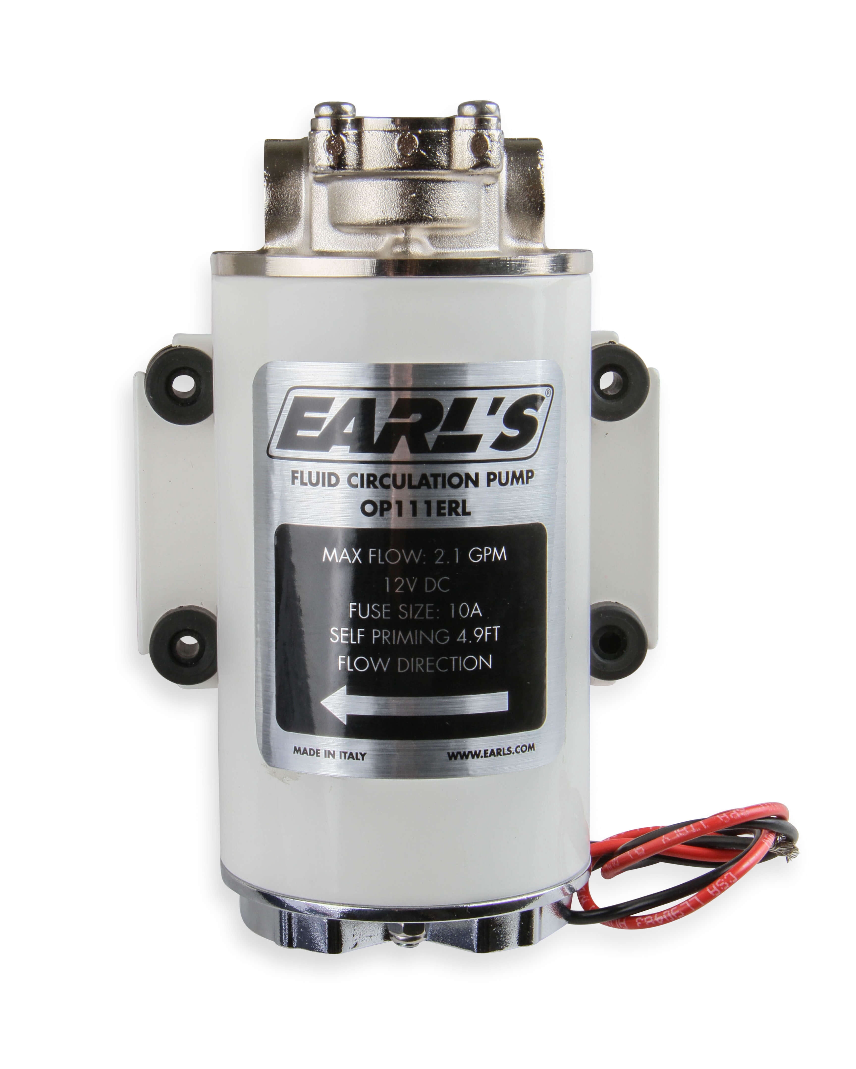 12-Volt DC Electric Oil Circulation Pump w/ 3/8 in. BSPP (British Standard Pipe Parallel) straight thread Female Ports; Earls electric oil pump is ideal for circulating the gear oil through an external oil cooler – for cooling the differential or manual transmission. This heavy duty pump features a metal housing & is self-priming with a flow rate of up to 2.1 gallons per minute. The compact design is durable and has a continuous duty rating (see temperature range shown below). This pump includes (2) -6 AN Male to BSPP adapter fittings. Ideal for use with Earl’s UltraPro oil cooler along with AN hose & hose ends.;