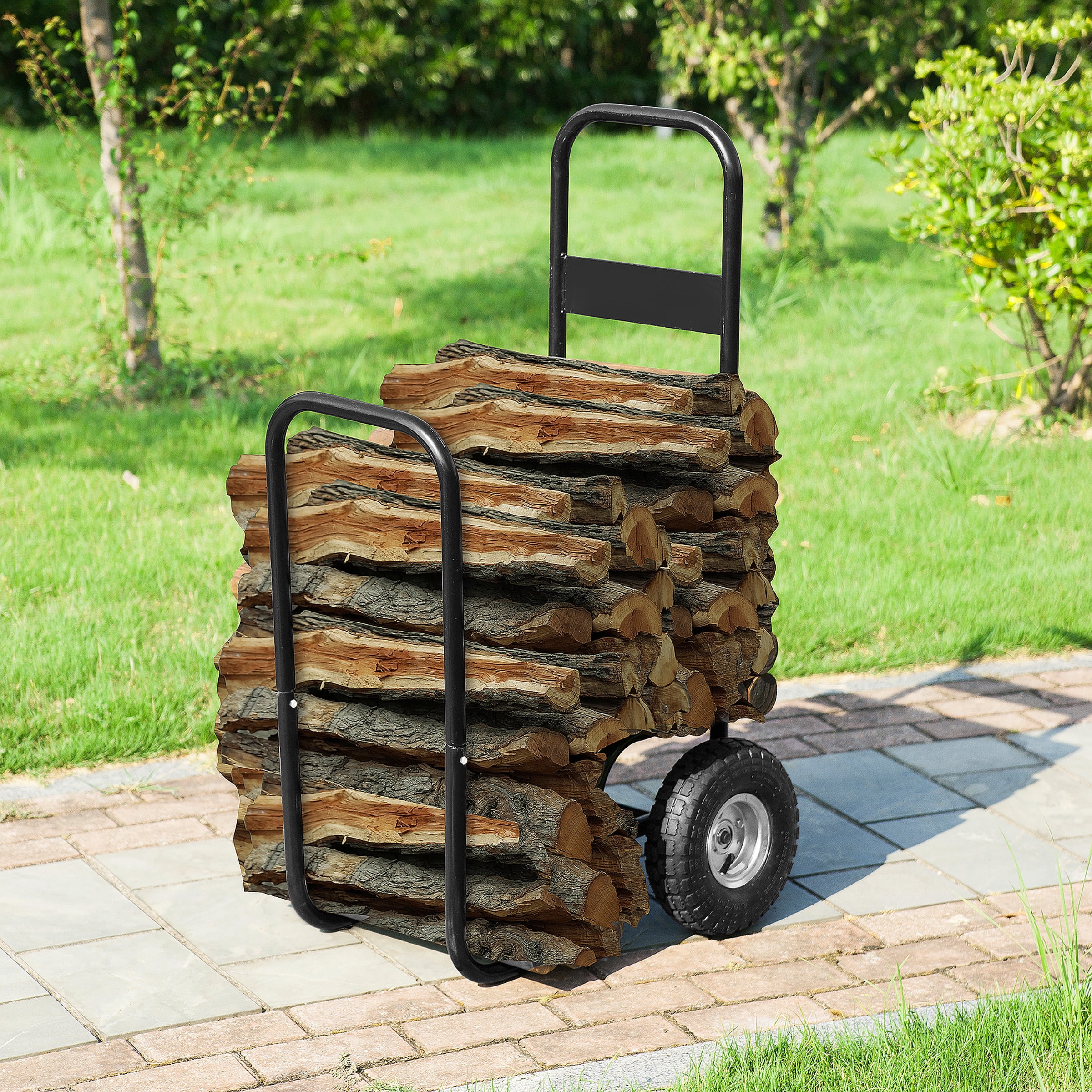 Earth Worth Rolling Firewood Rack – Log Dolly with Steel Frame, Black