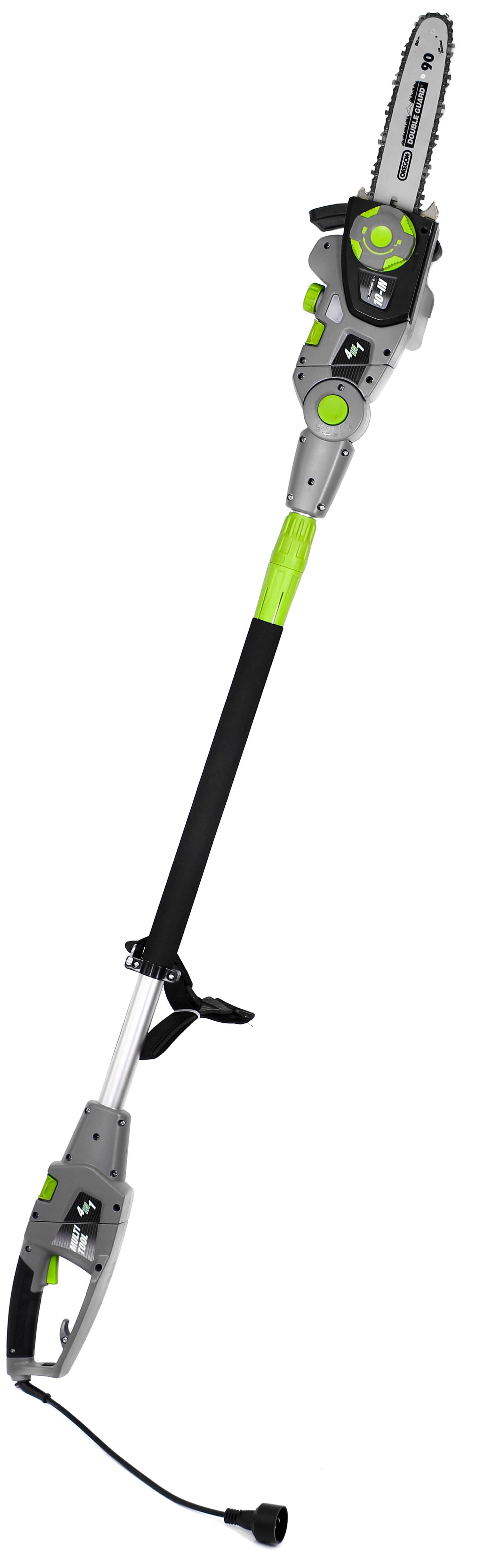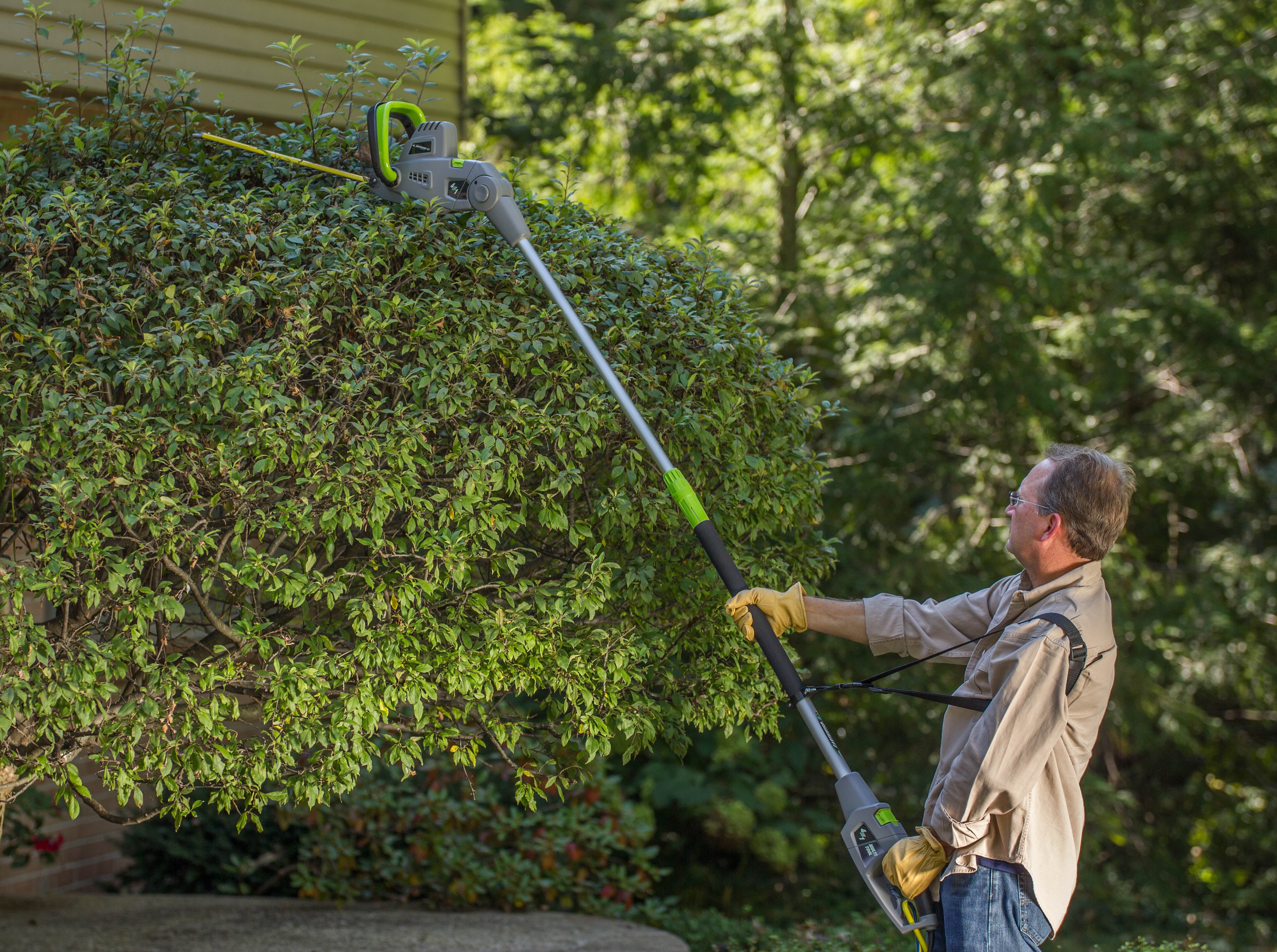 Four tools in one, pole Hedge trimmer, pole saw, chainsaw, Hedge trimmer Includes protective blade covers and shoulder strap for using the pole attachment- Pole Saw max length: 8 Feet – Hedge Pole Trimmer max length: 8.8 Feet 4-in-1 Multi Tool Easily converts from a handheld hedge trimmer and handheld chainsaw to a pole hedge trimmer and a pole saw!Features 4-in-1 chainsaw multi-tool that works as a pole hedge trimmer, pole saw, chainsaw, and hedge trimmer Includes protective blade covers and shoulder strap for use with pole trimmers Earthwise pole saw max length is 8 feet and hedge pole trimmer max length is 8.8 feet Chainsaw/pole saw has automatic oiling system 7 Amp 10″ Chainsaw 4.5 Amp 18″ Hedge trimmer Both chainsaw and hedge trimmer has a adjustable angle cut when pole is attached