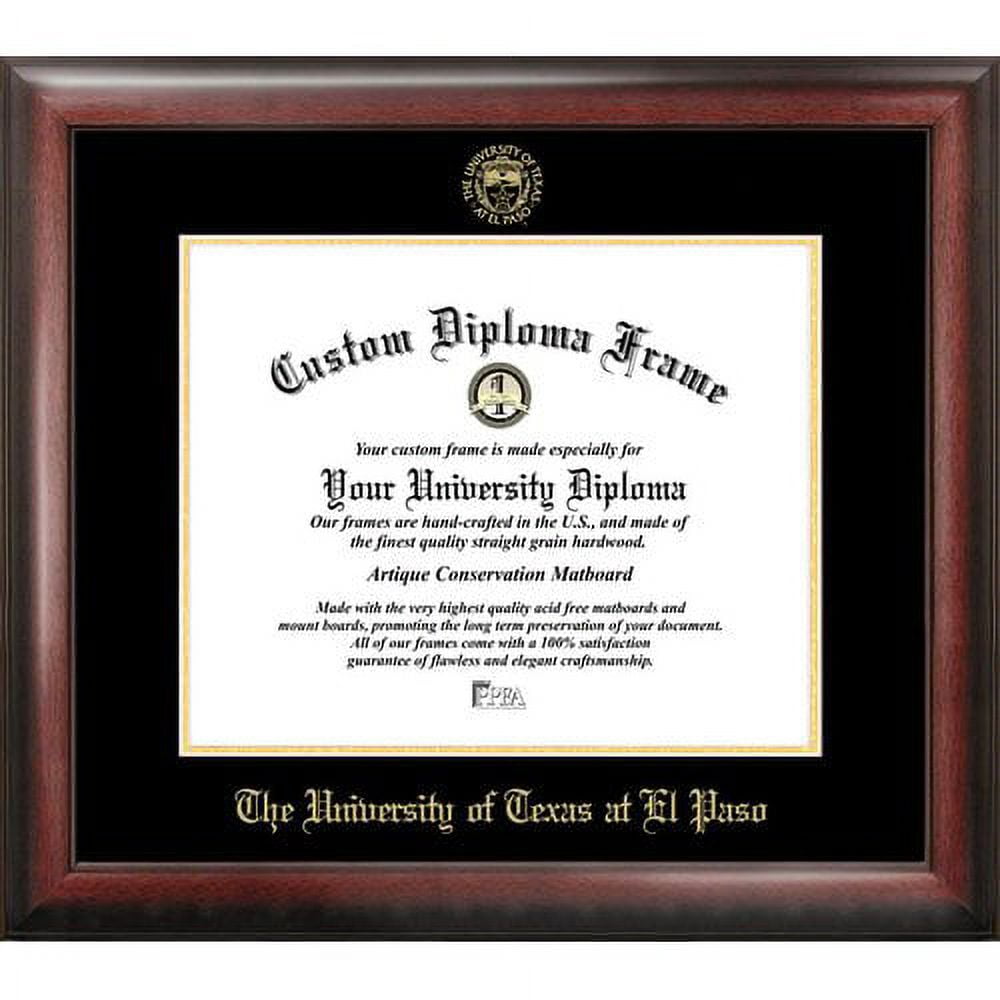 Classic satin mahogany diploma frame with medallion or foil seal of the official university marks and imprinted with University Name. Custom made to fit any diploma size.