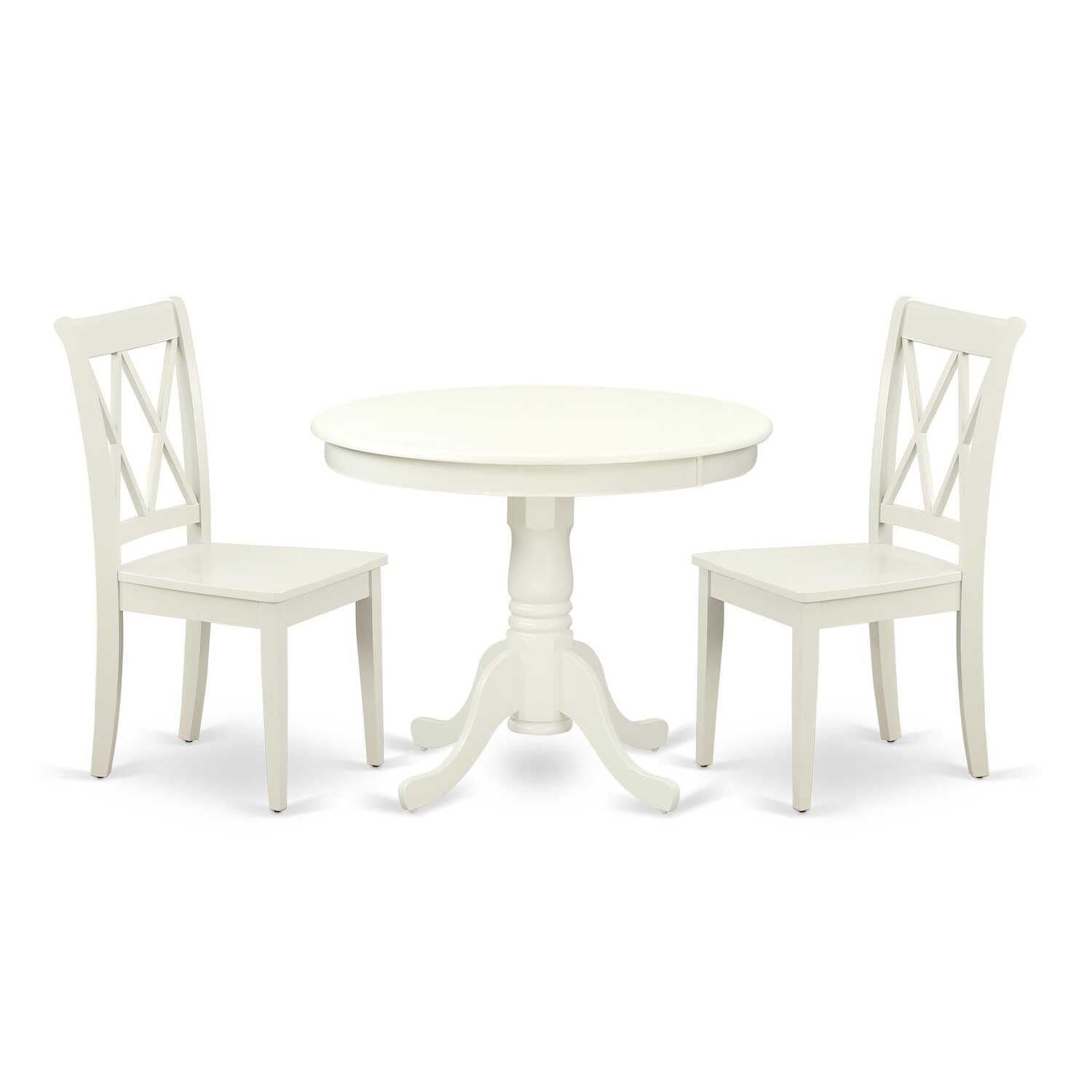 ANCL3-LWH-W 3PC Round 36 inch Table and 2 Double X back Chairs
