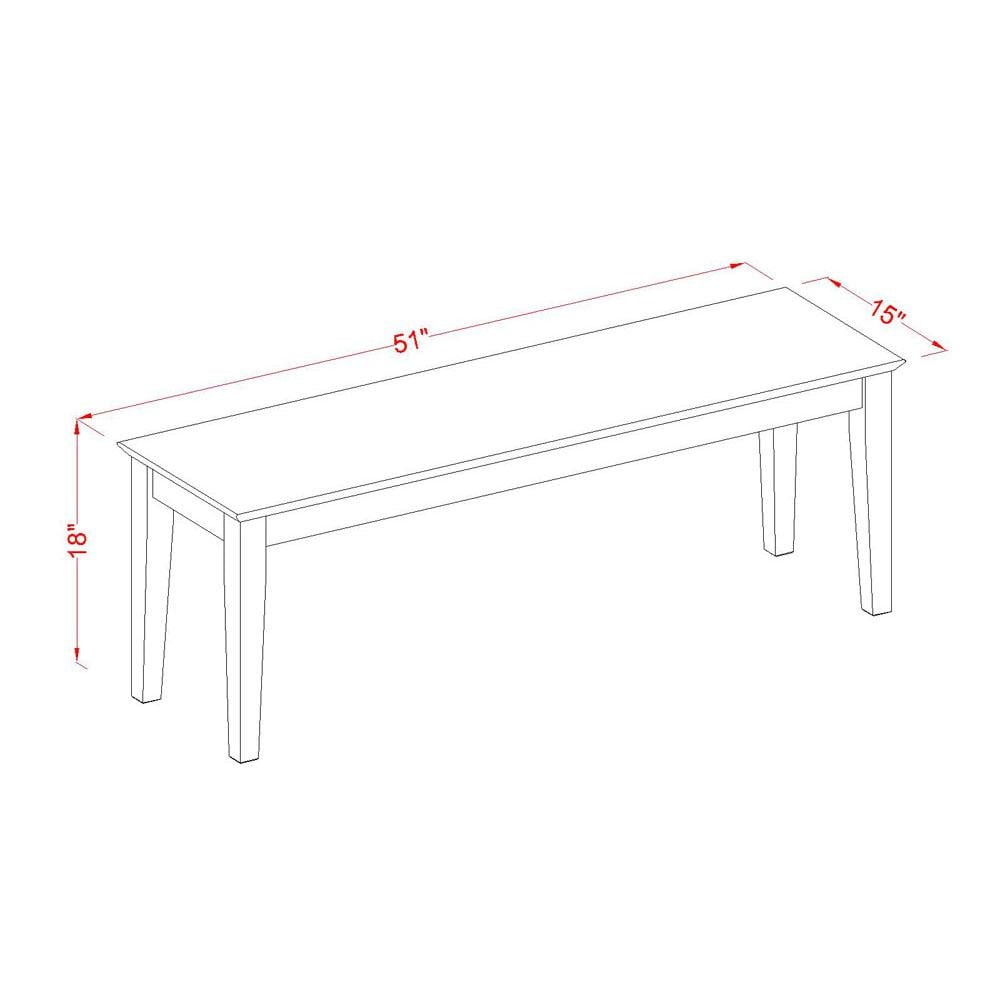 Dimensions: 51L x 15W x 18H in. Solid rubberwood construction Easy backless design Choose from available finish Simple traditional rectangular shape Alternative to dining chairs