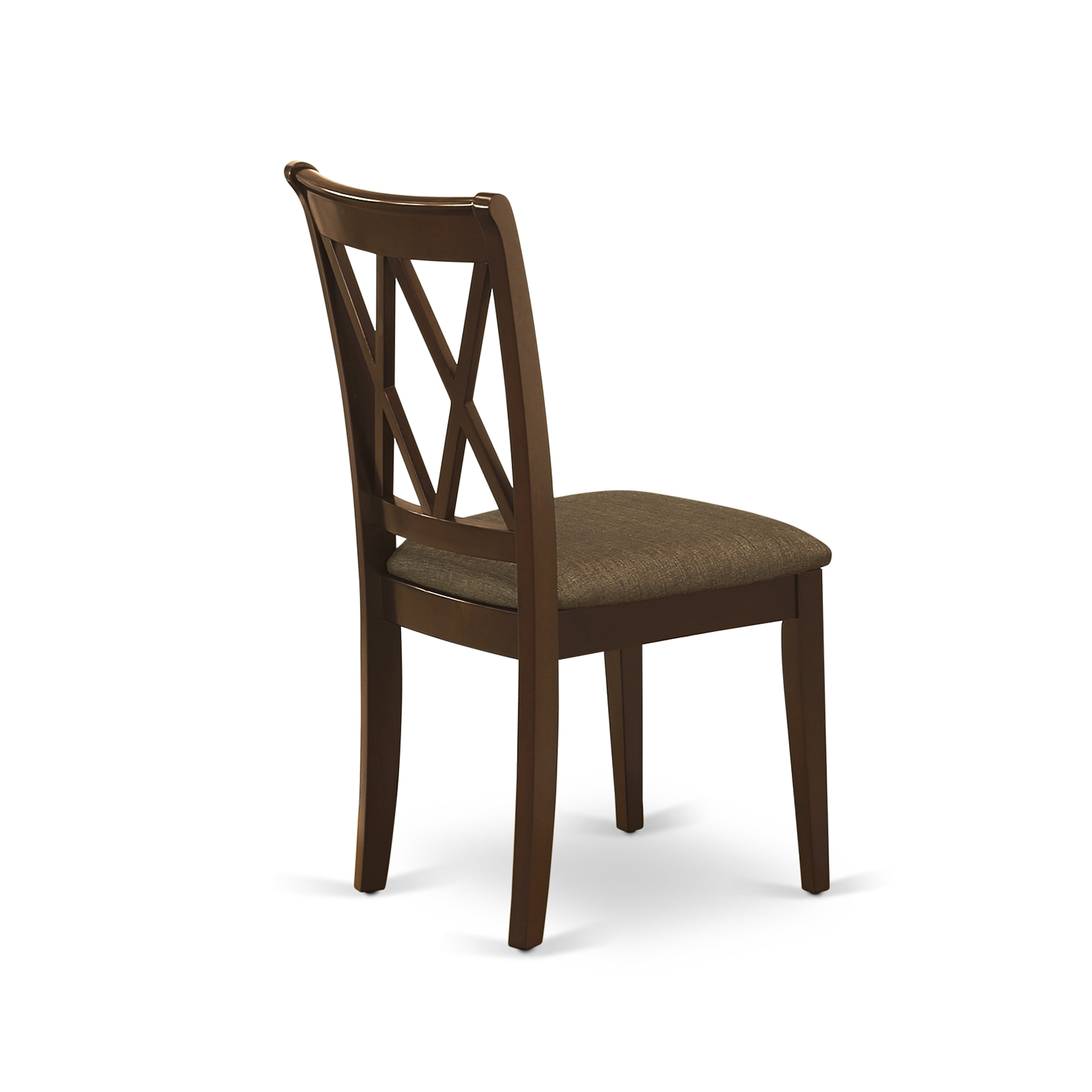 Materials: Asian hardwood, linen, foam Finish: Mahogany, brown Get a useful view to your gorgeous dining table with these modern set of two Clarksville wood dining chairs This dining chair set of 2 will increase the charm of any living area together with their timeless design Transform the dining room table with stylish seating that’s always trendy These dining room chairs set features comfortable linen upholstery seat and mahogany finish. Durable oriental hardwood double x-back and legs which creates the best high-class color collaboration to provide a luxury look to your living area. Midcentury dining chairs double x-back and legs are manufactured from top quality oriental hardwood also known as (rubber wood) gives stability and durability to these modern dining chairs, as all furniture should Furniture is not and should not be something you have to change every year Cutting edge innovation huge tough shape, comfy linen upholstery seat, and mahogany double x-back and legs offer innovative glance to your dining area Good stability to these wonderful country dining chairs set, comfortable support to your back, and fantastic sitting experience