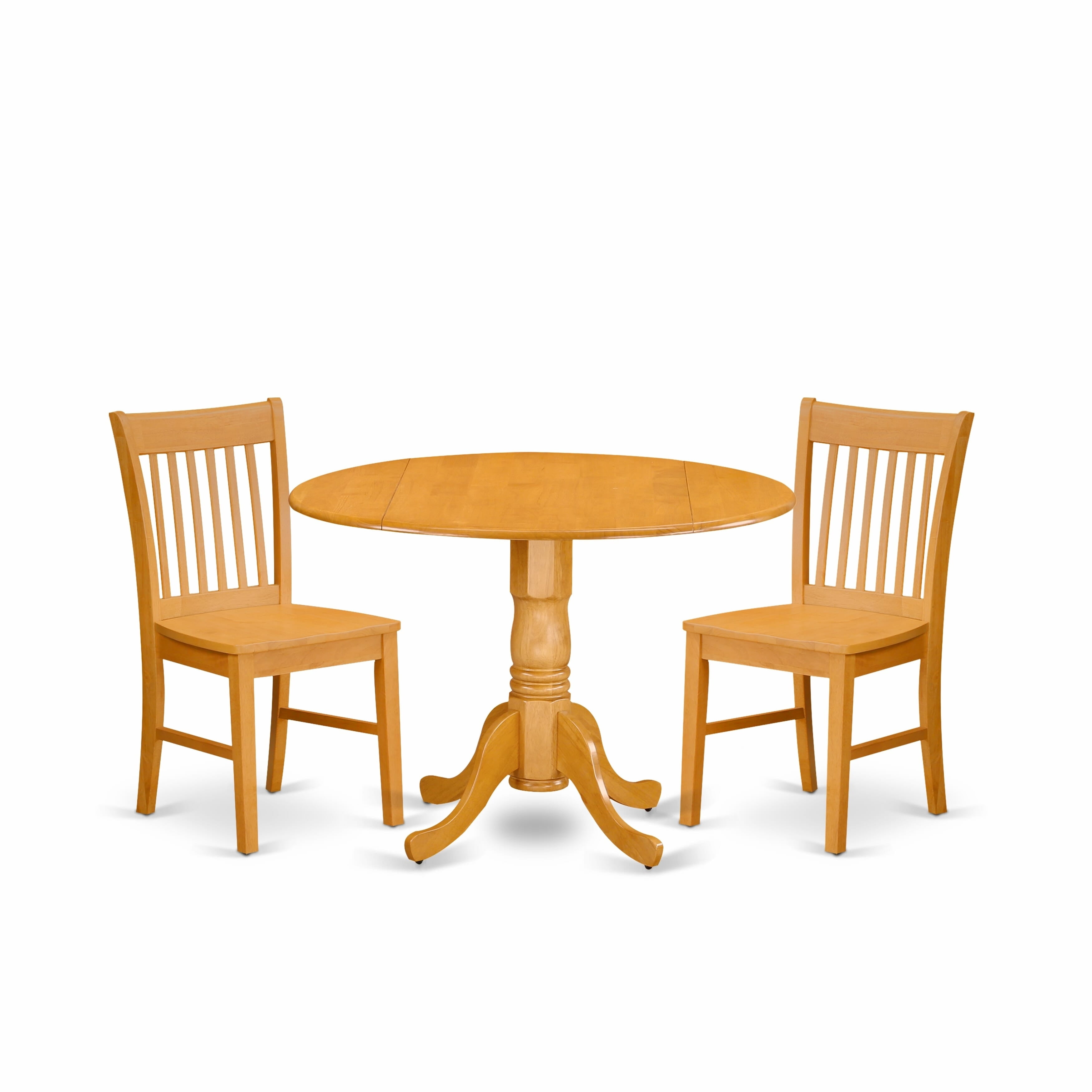 East West Furniture Dublin 3-piece Traditional Wood Dining Room Set in Oak