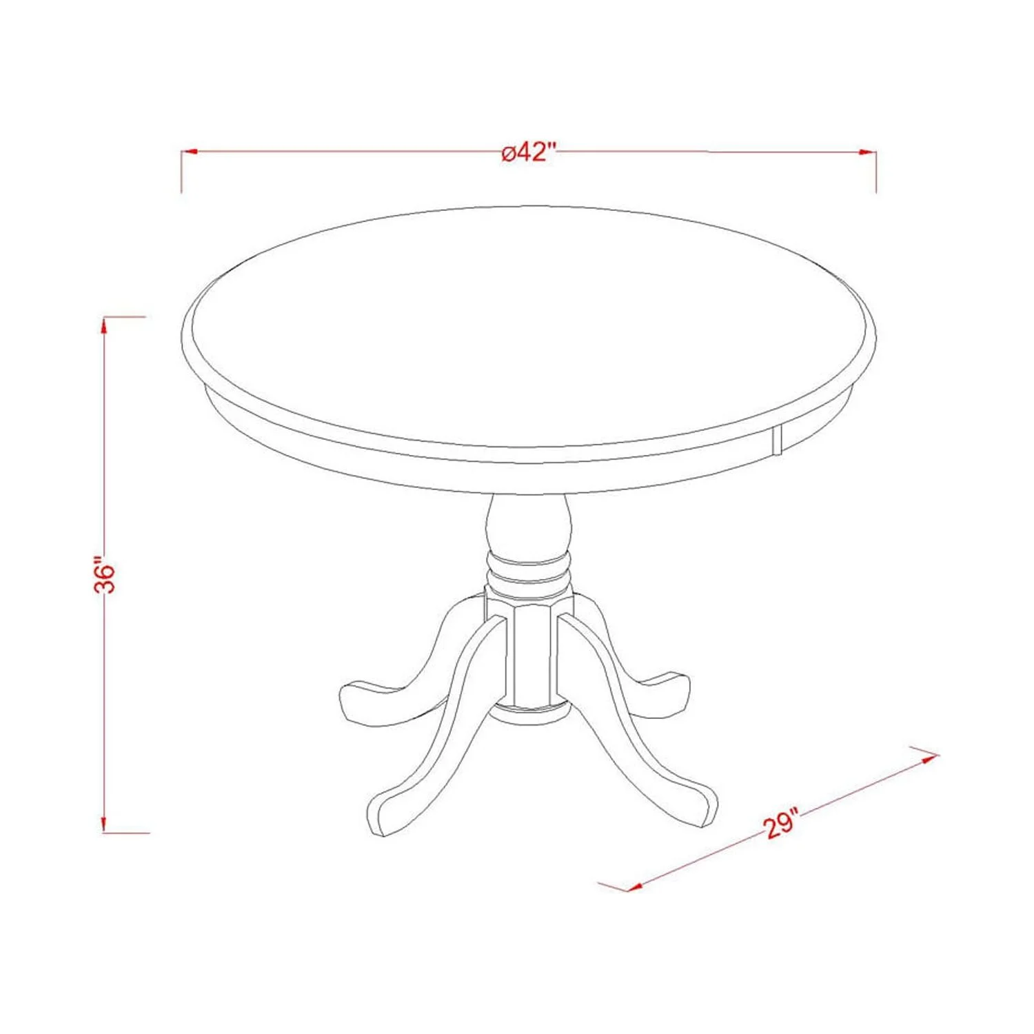Materials: Wood Finish: Black, cherry A great pedestal small dining table made by east west furniture with professional skills and care for your beautiful dining area Raise the elegance of your kitchen with our lovely small dining table A superb kitchen table to enjoy breakfast, lunch, or dinner with your family and friends Our modern dining table features spectacular black finish pedestal legs, and cherry finish top surface that offers an impressive check to this mid-century dining table High dining table is colored with superior quality paints which provide the gentle feel and fresh style to the wood This color combination just blends into any interior decoration Stability is a necessary attribute for home furniture because furniture is not something you should modify every year Our high pro carpenters produced this small dining table with excellent quality Asian wood (also known as rubber wood) which provide good robustness and stability to last longer Amazing tabletop style, good quality colors and robust premium quality hardwood made it the perfect dining table for your dining area and offer impressive stableness to this modern dining table.