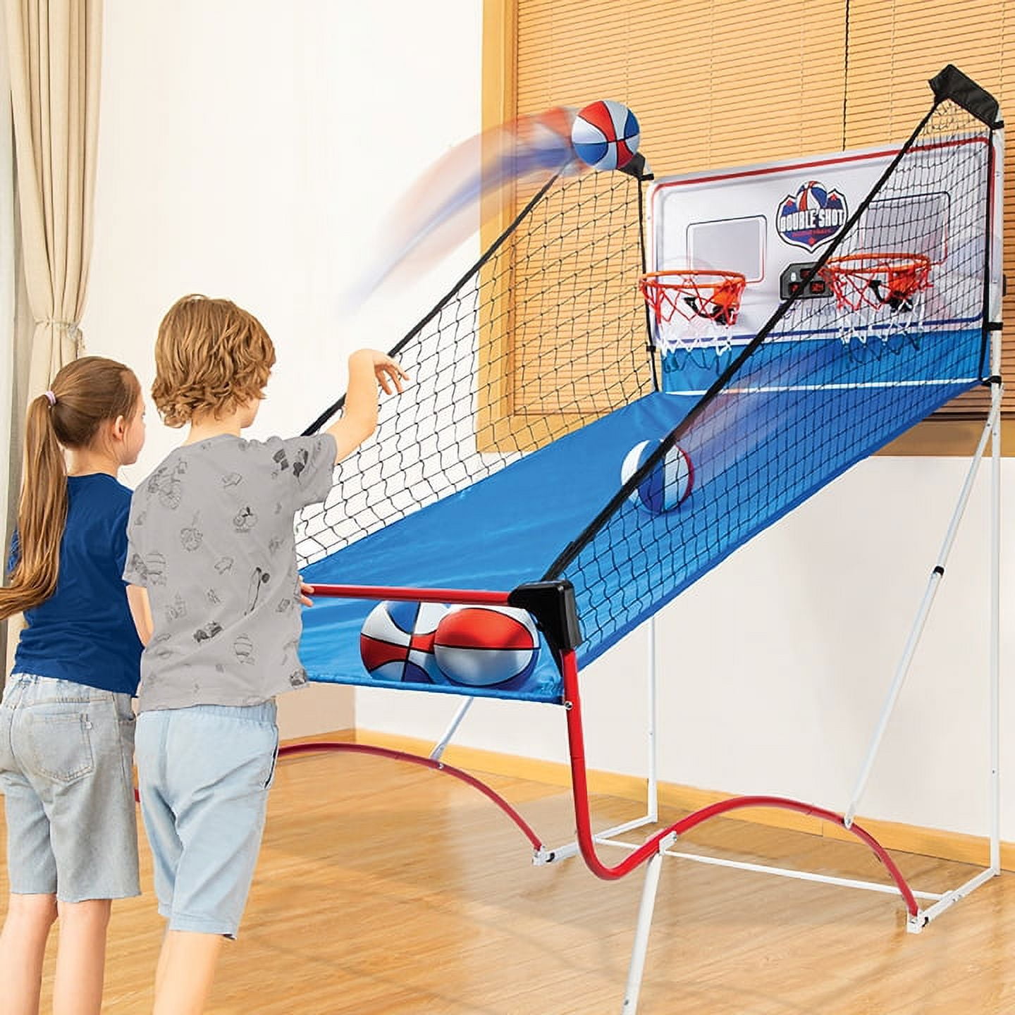 EastPoint Shootout Arcade Basketball – 2 Player Hoops – Red, White & Blue Folding Indoor Arcade Game – 80.5 in. (H)
