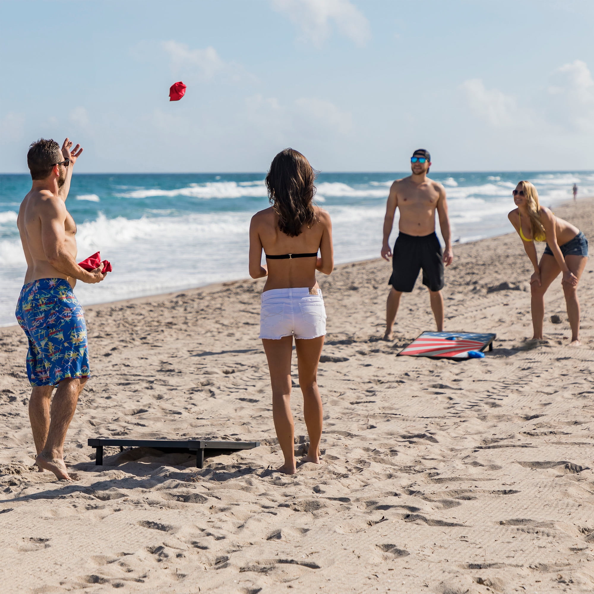 2 – 36 in x 24 in (91.44 cm x 60.96 cm) Deluxe Bean Bag Toss Boards with Reinforced Corners and Sides 8 – Premium Bean Bags – 6in x 6in (15.2cm x 15.2cm) Complete Set of Game Rules and Instructions Organized space-saving storage for all your components and accessories Boards attach together for easy portability Boards are not Waterproof