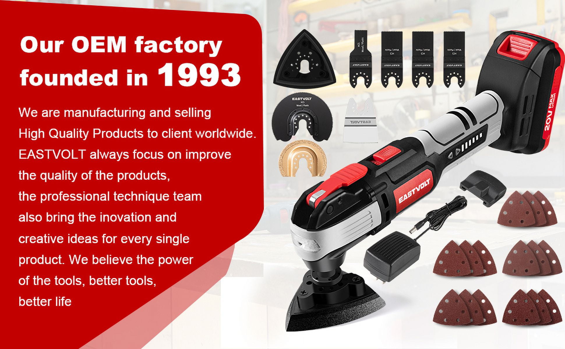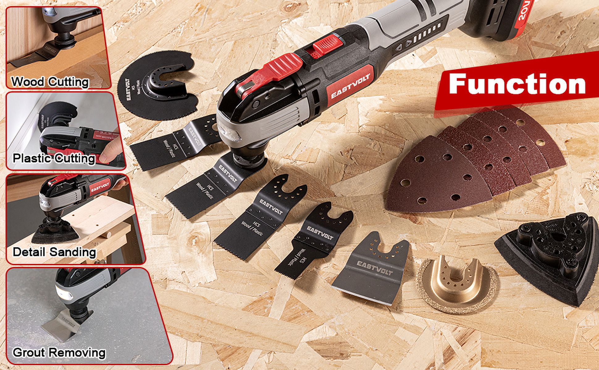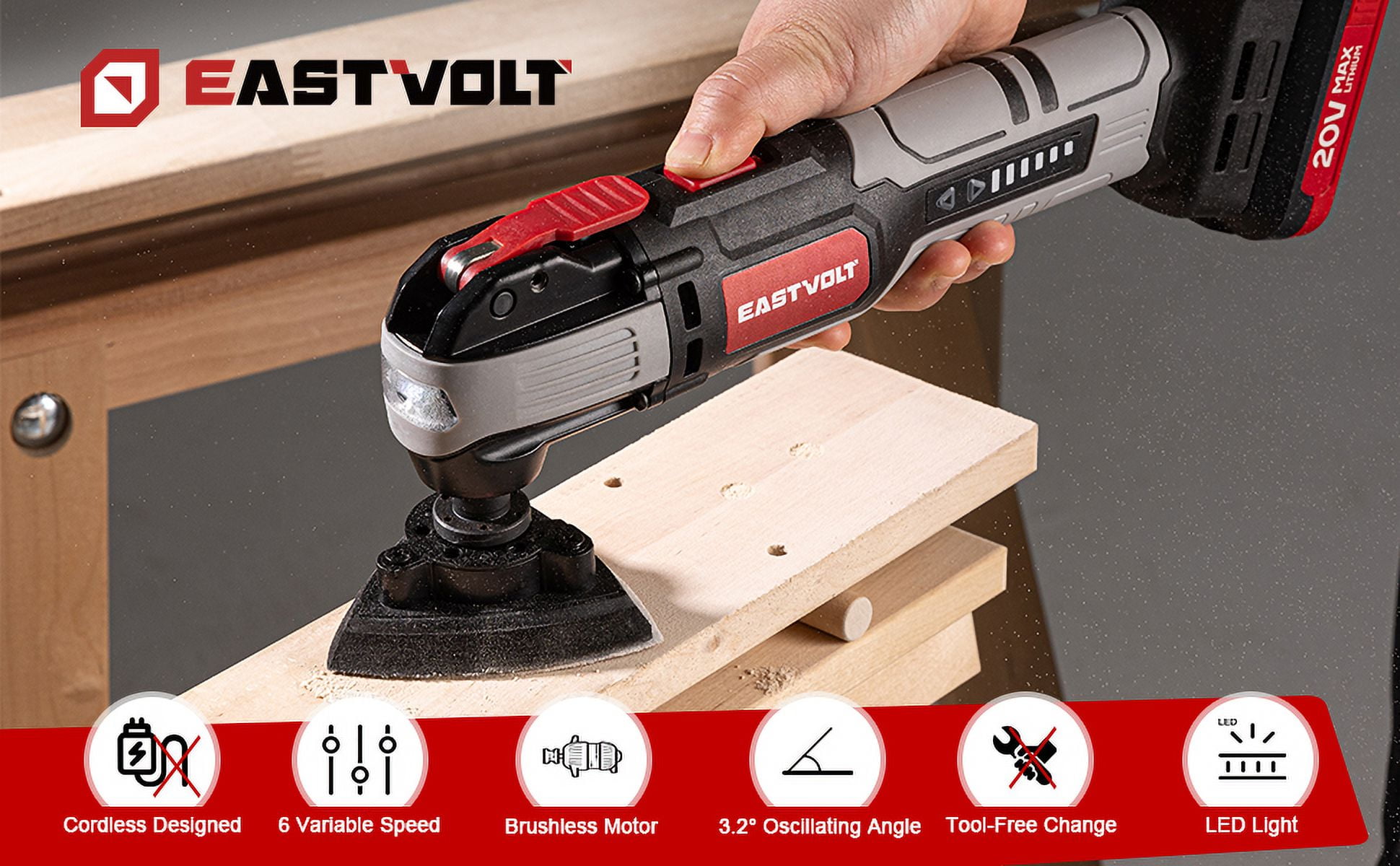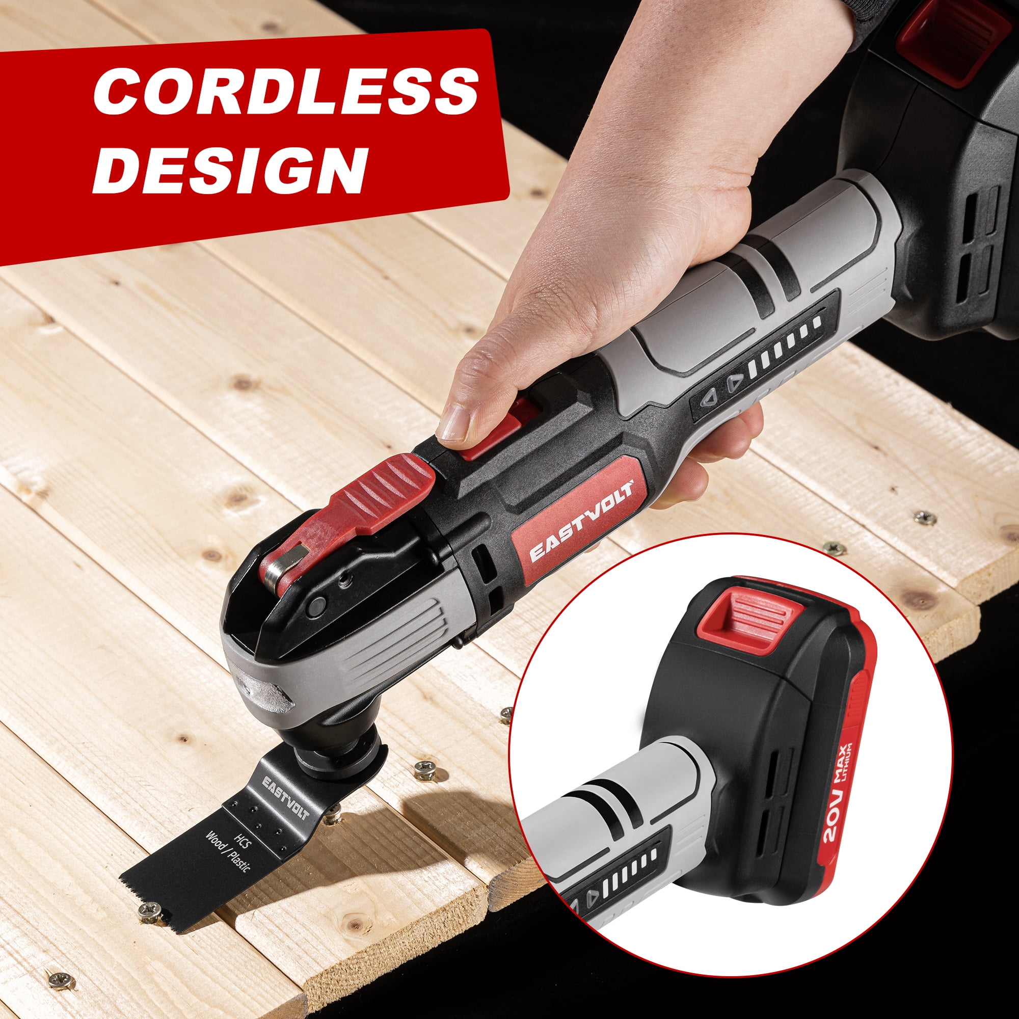 Eastvolt 20V Cordless Oscillating Tool Kit, 6 Variable Speed Oscillating Multi-Tool, Battery Powered Oscillating Multitool for Scraping, Grinding, Sanding, Cutting