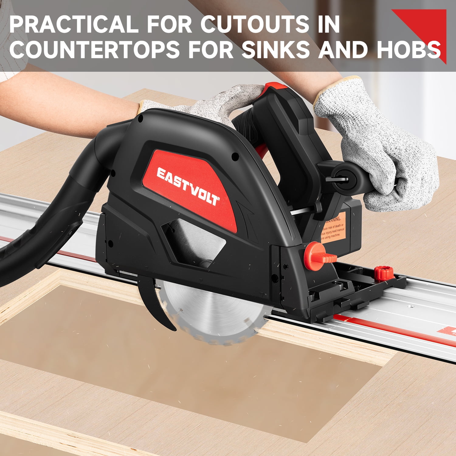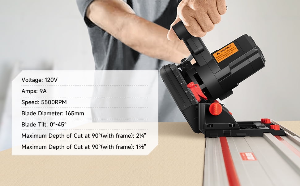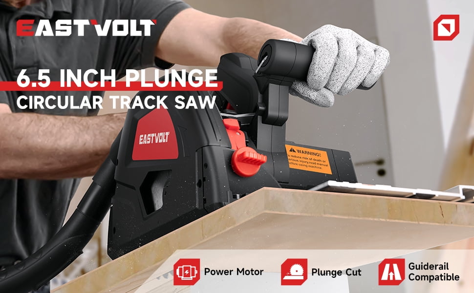 Eastvolt 9-Amp 6-1/2″ Plunge Circular Track Saw, 0-45°Bevel Adjustment, 5500RPM Plunge Saw for Wood Cutting