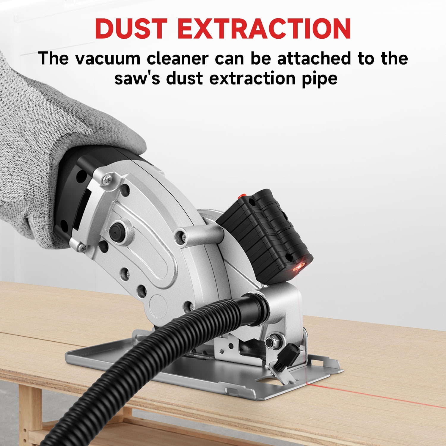 【Powerful Motor】4.5Amp powerful motor provides 5000RPM no-load speed to cut woods, plastics, tile and soft metal 【Three Blades】Included with the machine are three different type blades, 24T TCT blade for wood and plastics, 44T HSS blade for wood and soft metal, diamond blade for tile 【Adjustable Cutting Depth】Easy-set depth gauge lever for adjustable cutting depth from 0 to 1-1/16″ 【Precise Laser Guide & Safe Design】The laser guide and scale ruler can assist you to cut a precise straight line. The safety button offers double protection, in case any accidental start up 【Package Contents】1 x Mini Circular Saw, 1 x 24T TCT Blade, 1 x 44T HSS Blade, 1 x Diamond Blade, 1 x Hex Wrench, 1 x scale ruler, 1 x Dust Exhaust Pipe, 1 x User Manual