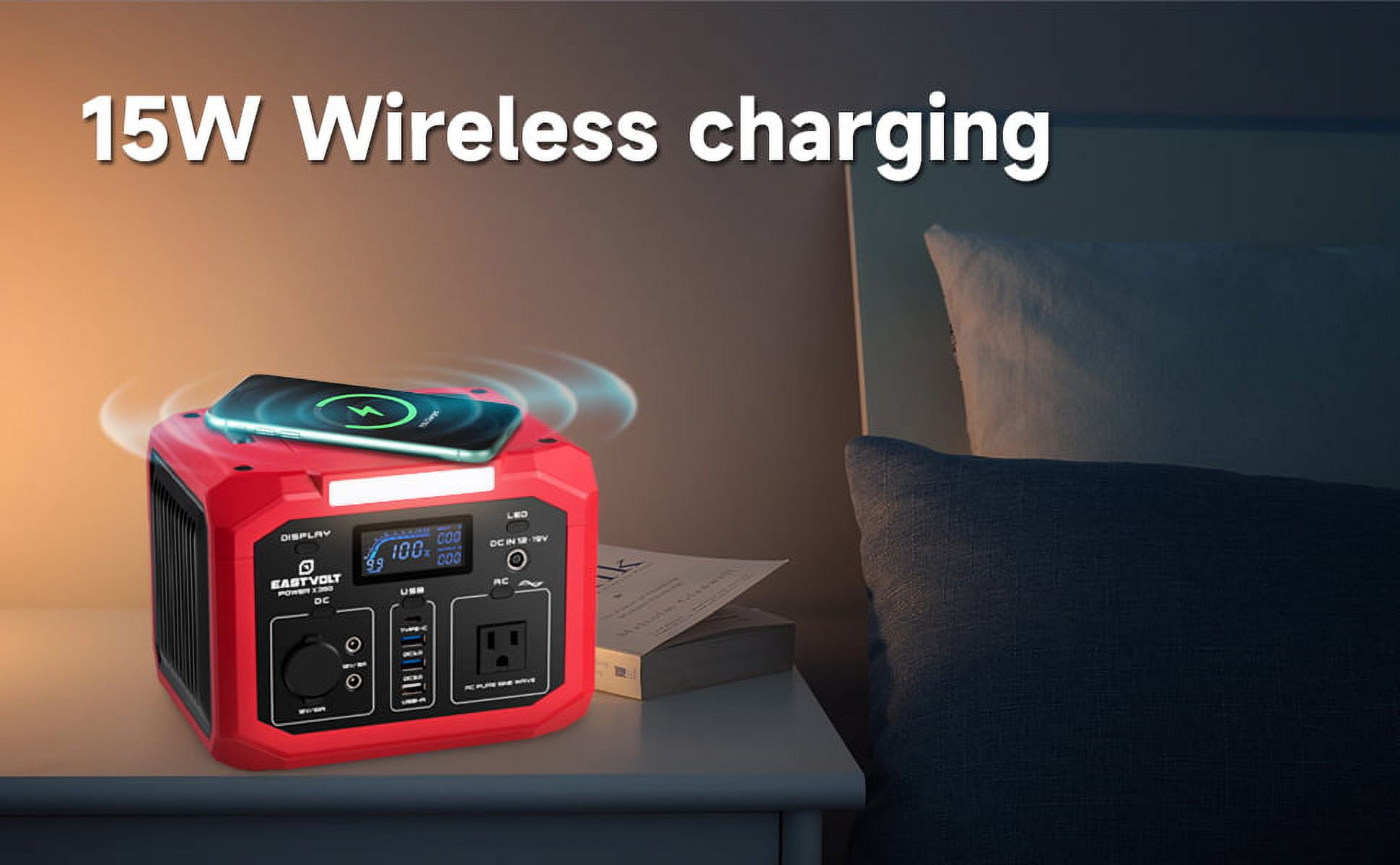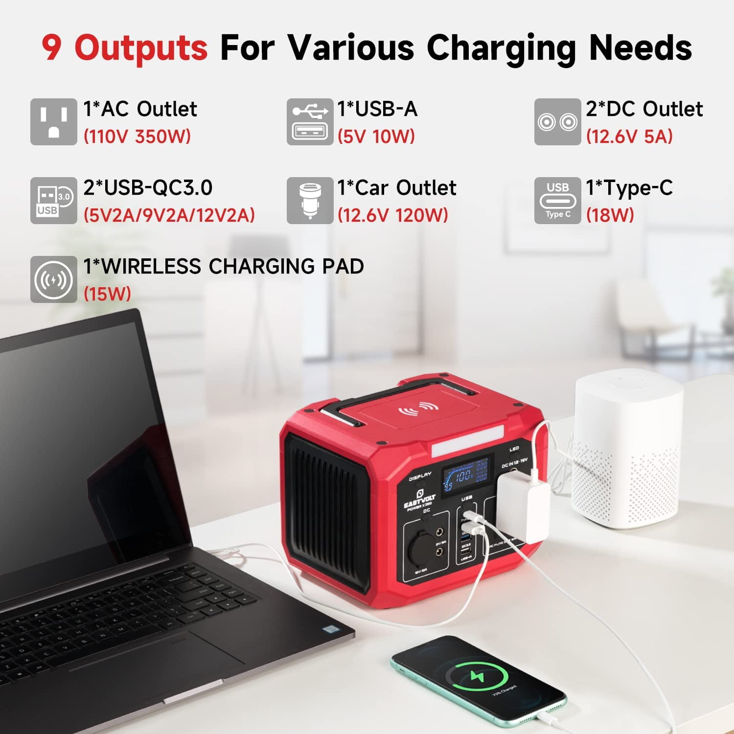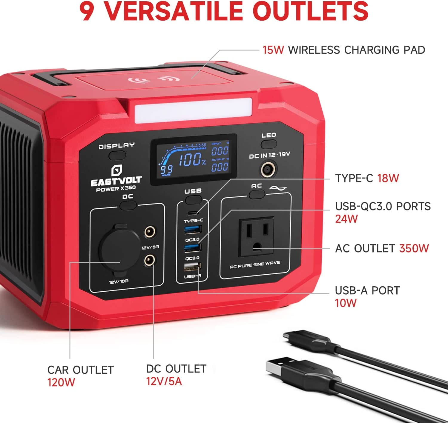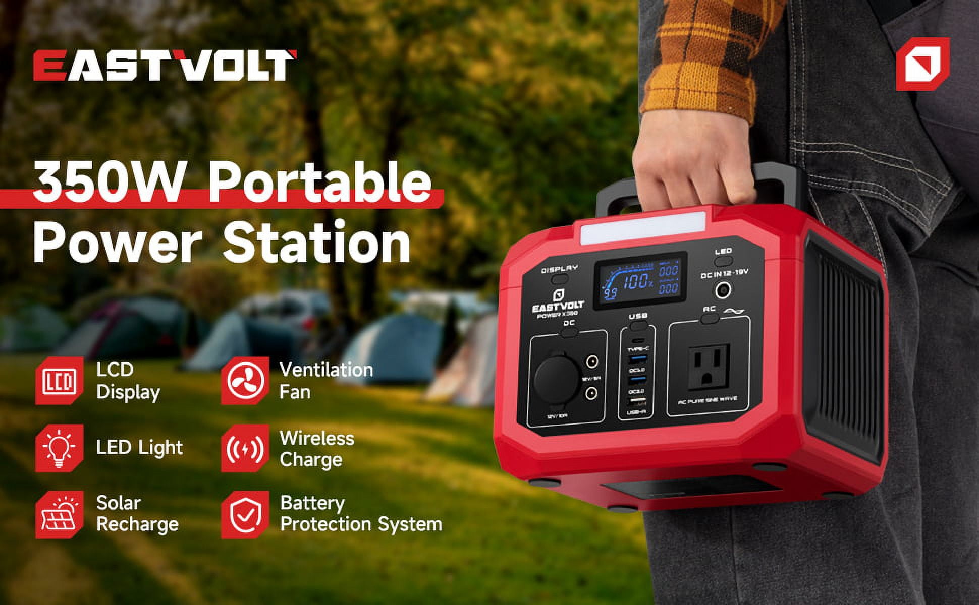 Eastvolt Portable Power Station 350W (500W Surge), 299.5Wh/83200mAh Lithium-Ion Battery with 110V AC Outlet, Wireless Charger, Solar Generator for Emergencies Home and Outdoor Camping