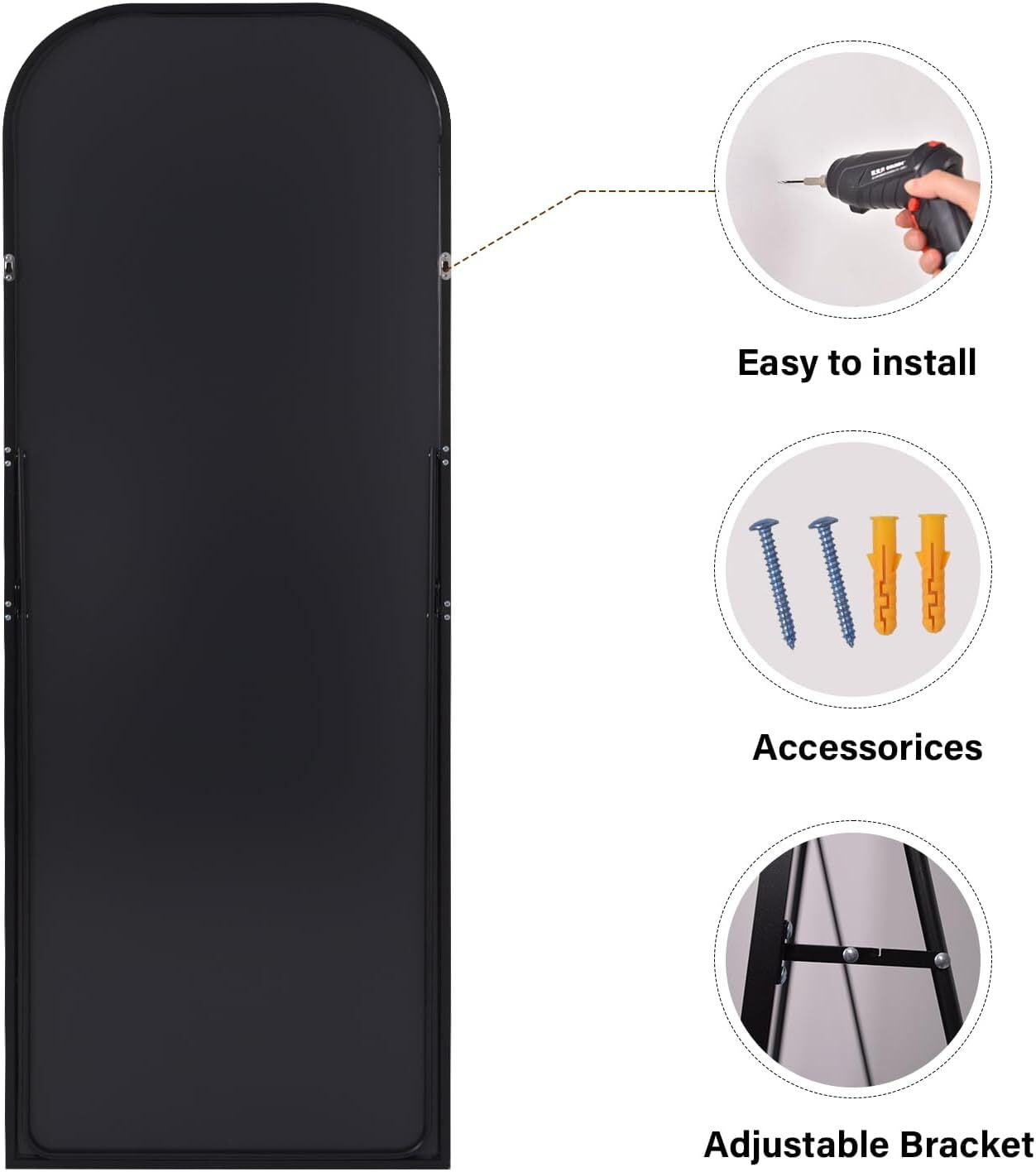 Easy4Home 71″x26″ Arched Full Length Mirror Metal Frame Freestanding Mirror Wall-Mounted, Black