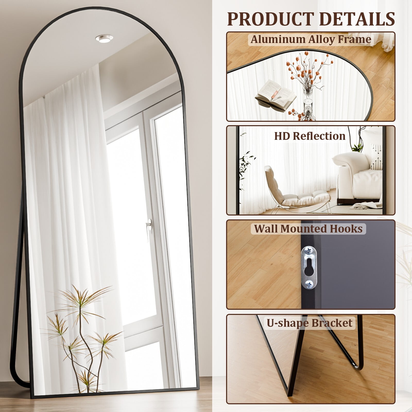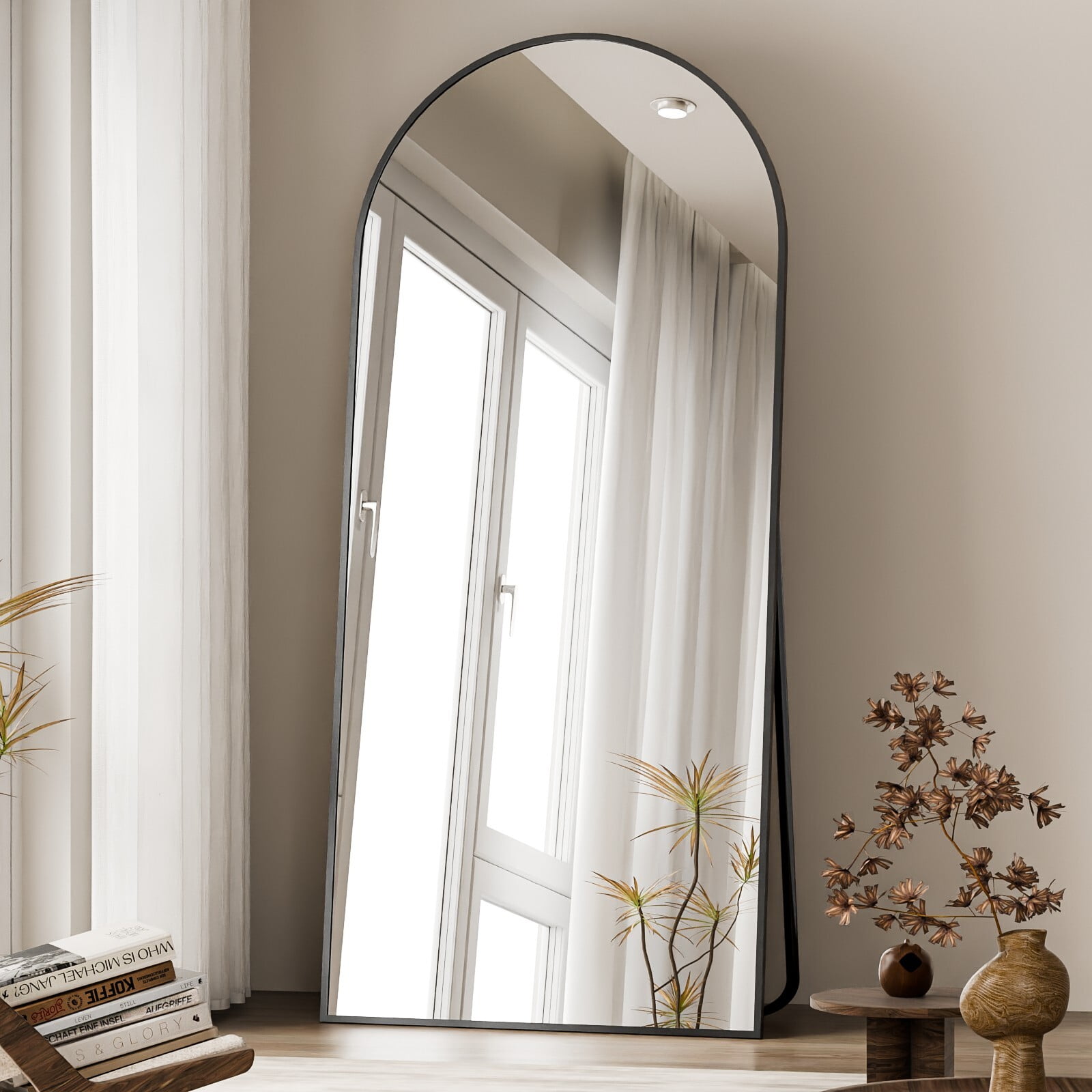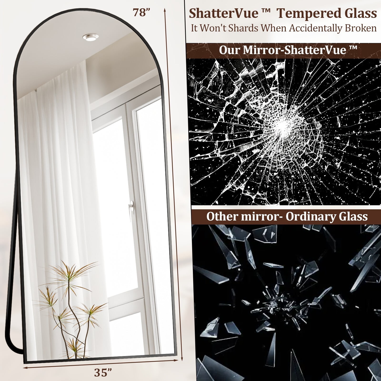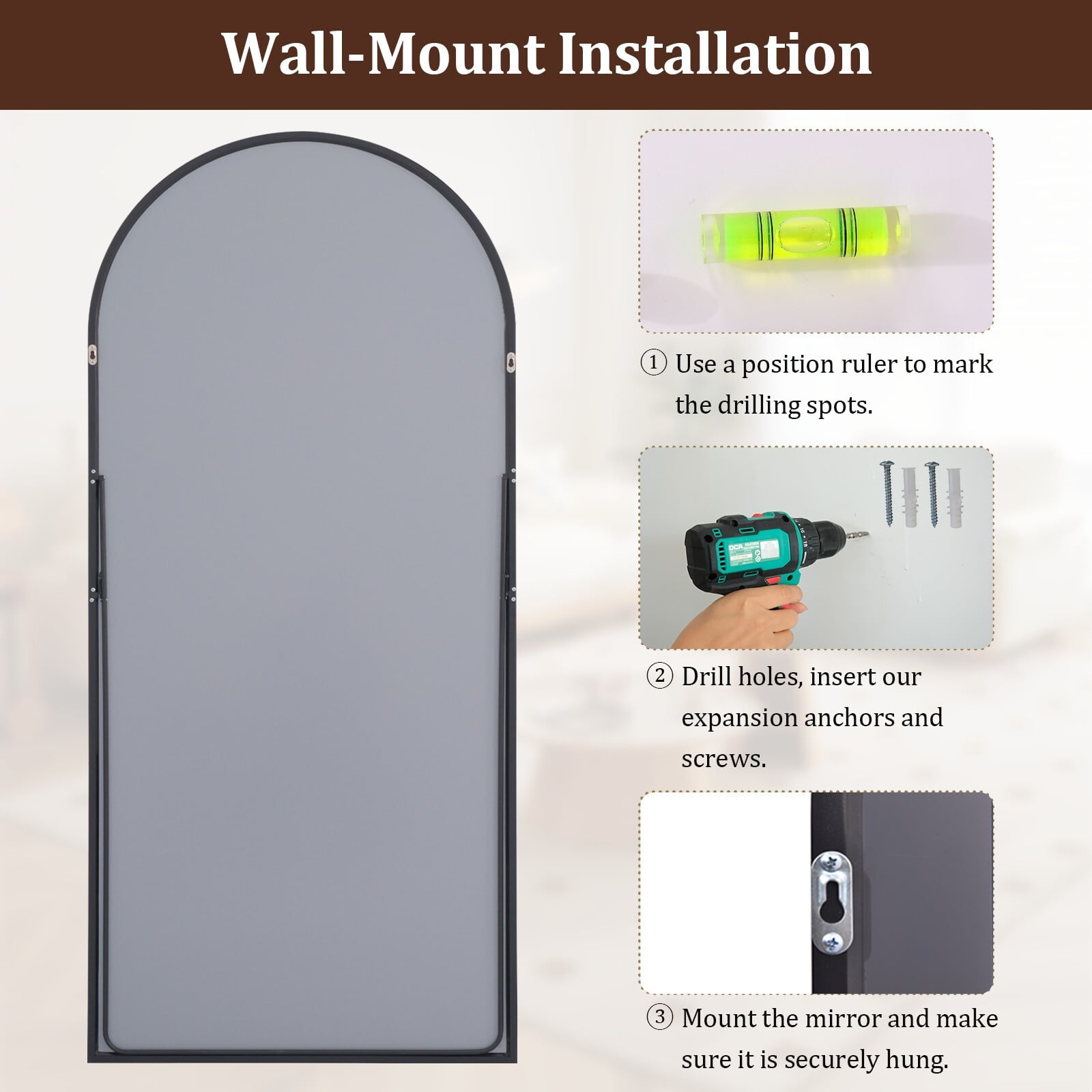 Easy4Home 78″x 35″ Arch-Top Floor Mirror Metal Frame Free-Standing & Wall-Mounted, Black