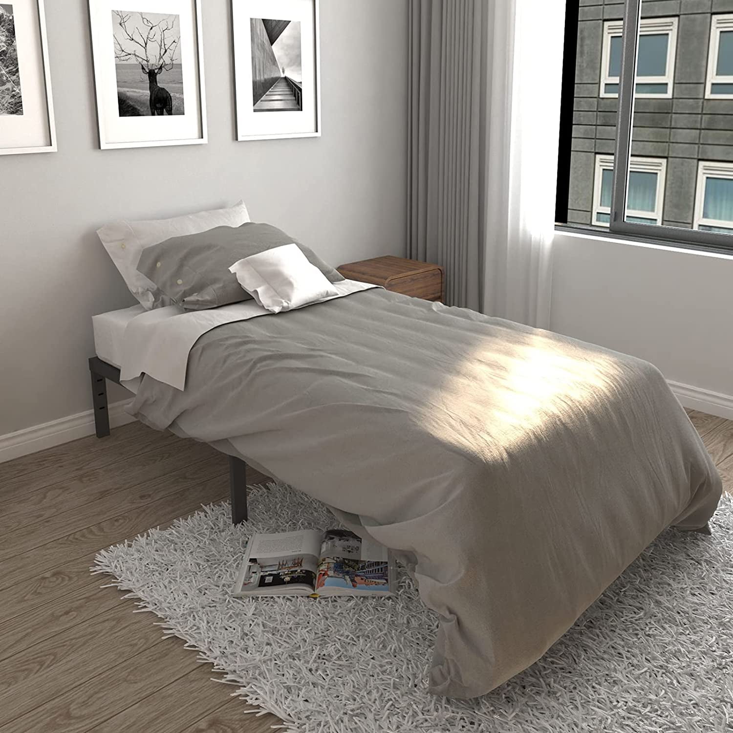 【Sturdy Steel Frame】Metal Twin Bed frames for adult made of alloy steel,which is stronger and more durable than ordinary bed frames, Reinforced metal bed legs and steel slats supports up to 3500 lbs,stable and no shake,stay away from squeaking,much safer and firm. 【Non-Slip and Noise Free】Reinforced structure for no shake,cushioning gasket to avoid noise. Choose our heavy duty bed frames Twin XL size will provide you a quiet sleeping environment. 【Adequate Under-bed Storage】There is 12 inch high storage space under the 14 inch high bed frame,Convenient for you to store various items. 【No Box Spring Needed】The steel bed frame can provide very good support, no need to buy additional springs, you can place the mattress directly on the bed frame. 【Easy Assembly】The installation is very simple, read the instruction and installation video, you can complete it independently within 20 minutes.