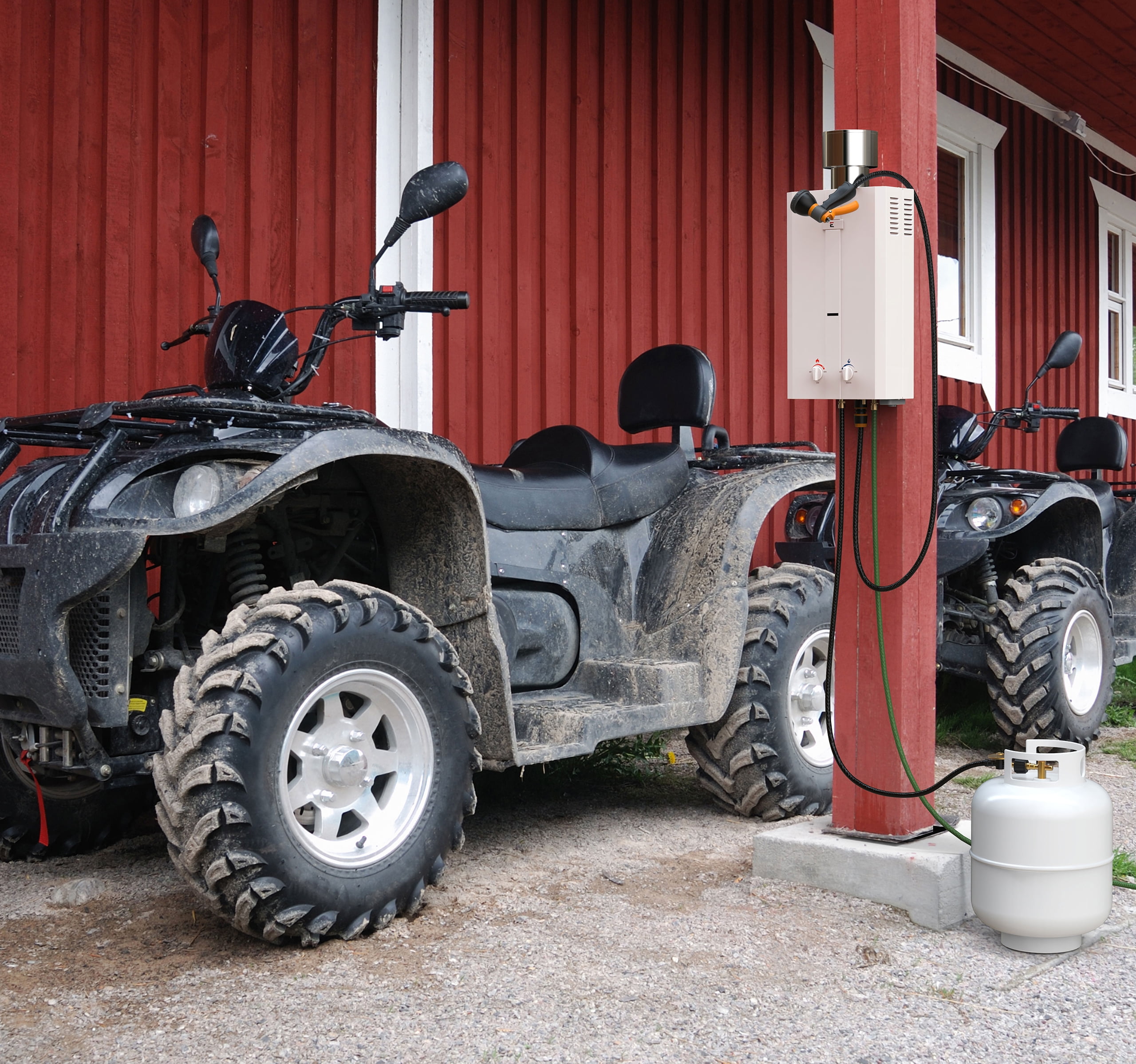 Lightweight, easy to carry, and compact, makes using it for camping, hunting, in your Tiny Home, RV’s, Poolside, Washing Pets, Equestrian, Cleaning Vehicles, Greenhouses or anywhere else that you need instant reliable endless hot water Runs on a standard 20 lb. Liquid Propane tank and is equipped with an electronic ignition. Powered by 2 “D” cell batteries, making it ideal for on-the-go Features a safety shut-off that is activated when the unit runs longer than 20 minutes or is tilted more than 45 degrees in either direction Low pressure activation of 20 PSI and is easy to connect to any standard garden hose Rated at 3.0 Gallons per minute (GPM) of hot water output with an achievable temperature range of 50 – 120 degrees Fahrenheit Best in class 1-year product warranty, live chat, appointments for product support, self-help guides will give you peace of mind that the Eccotemp L10 will keep you in hot water for years What’s Included: Eccotemp L10 Portable Tankless Water Heater, shower head, 1/2′ CSA certified gas regulator and hose, mounting hardware, and garden hose quick connect and adapter