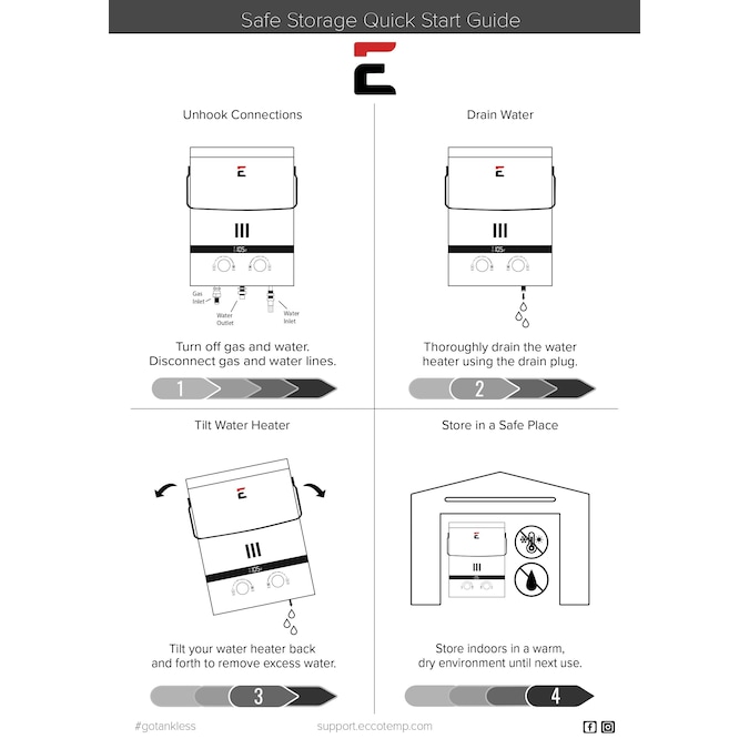 - 2-yr product warranty, live chat, appointments for product support, and self-help guides will give you peace of mind that the Eccotemp EL7 will keep you in hot water for years