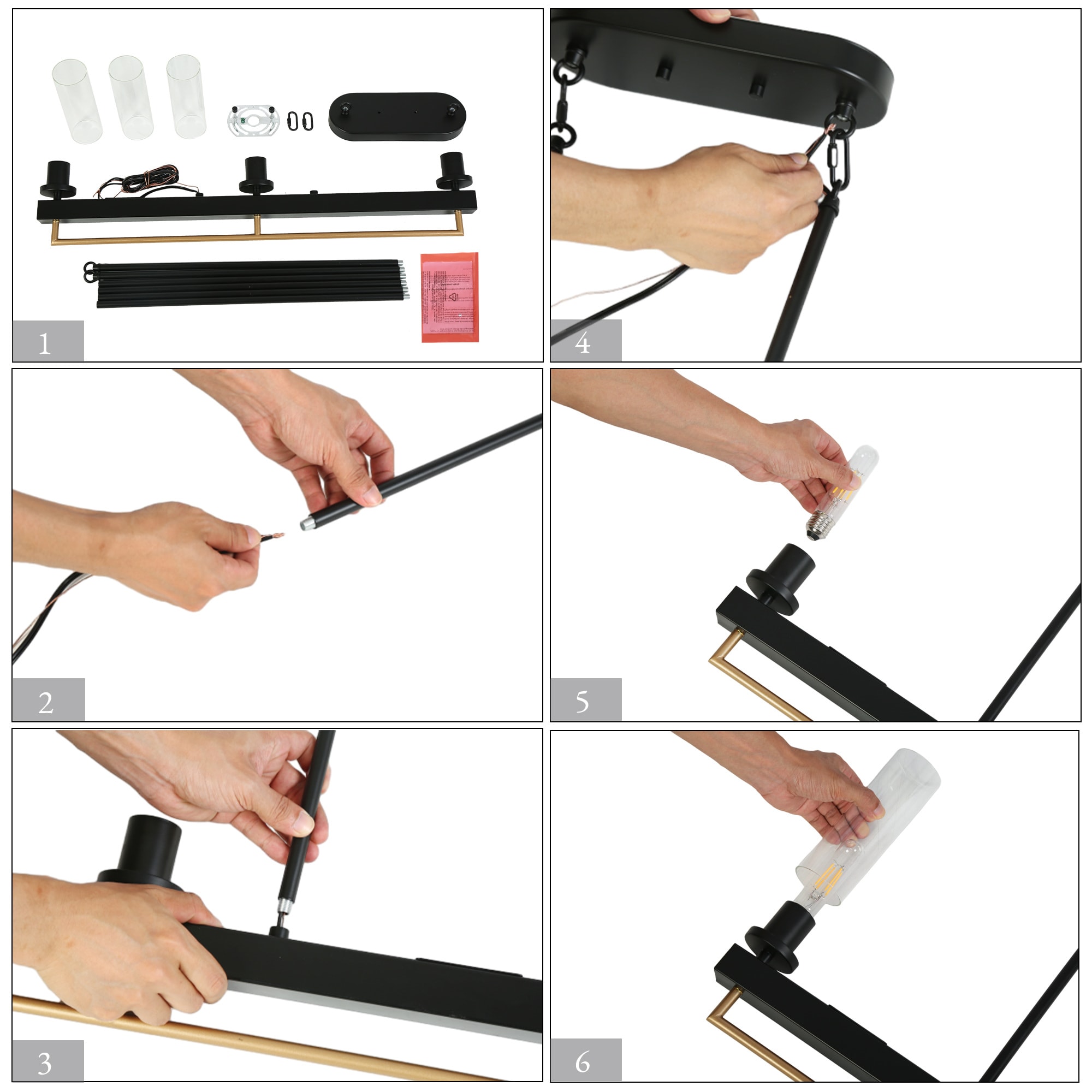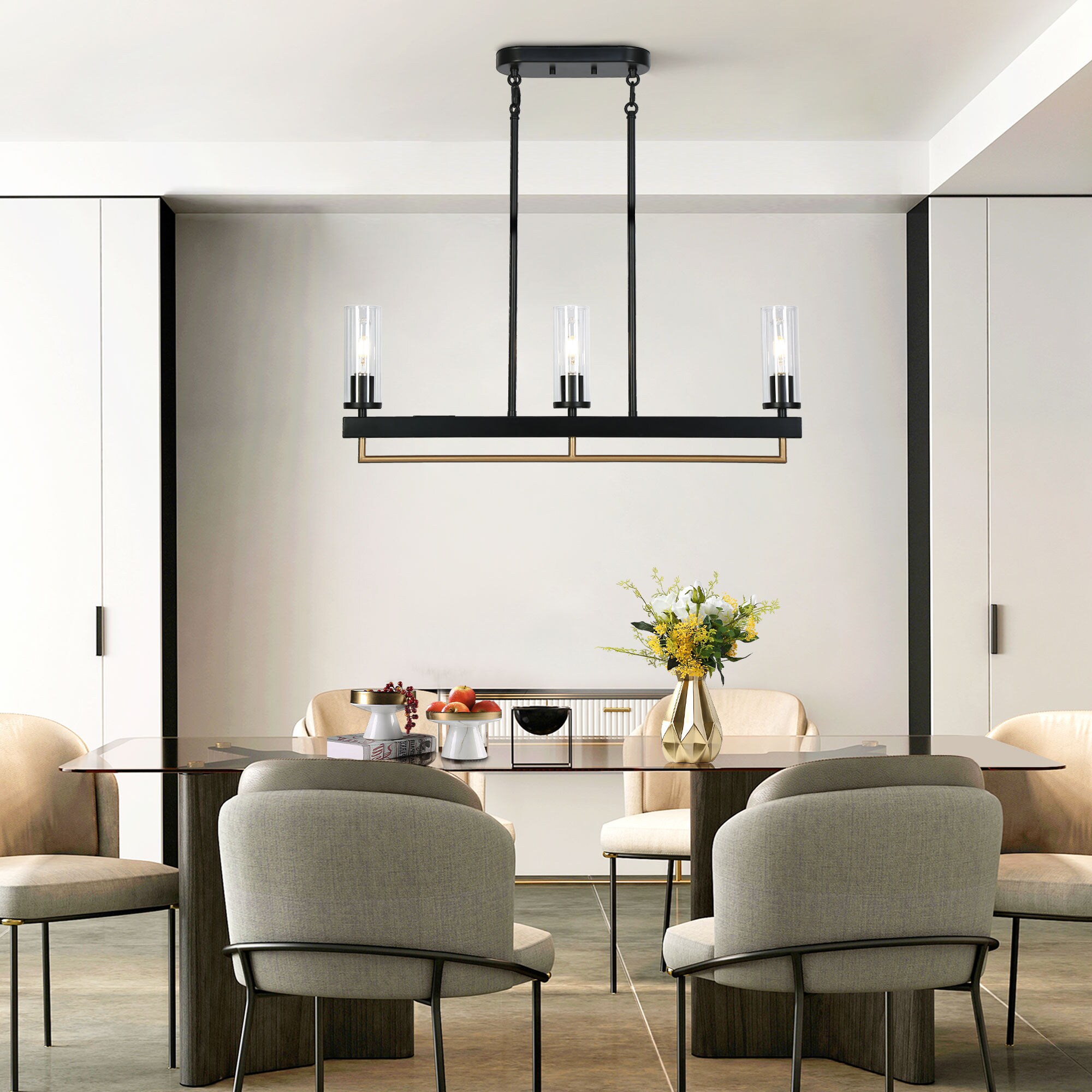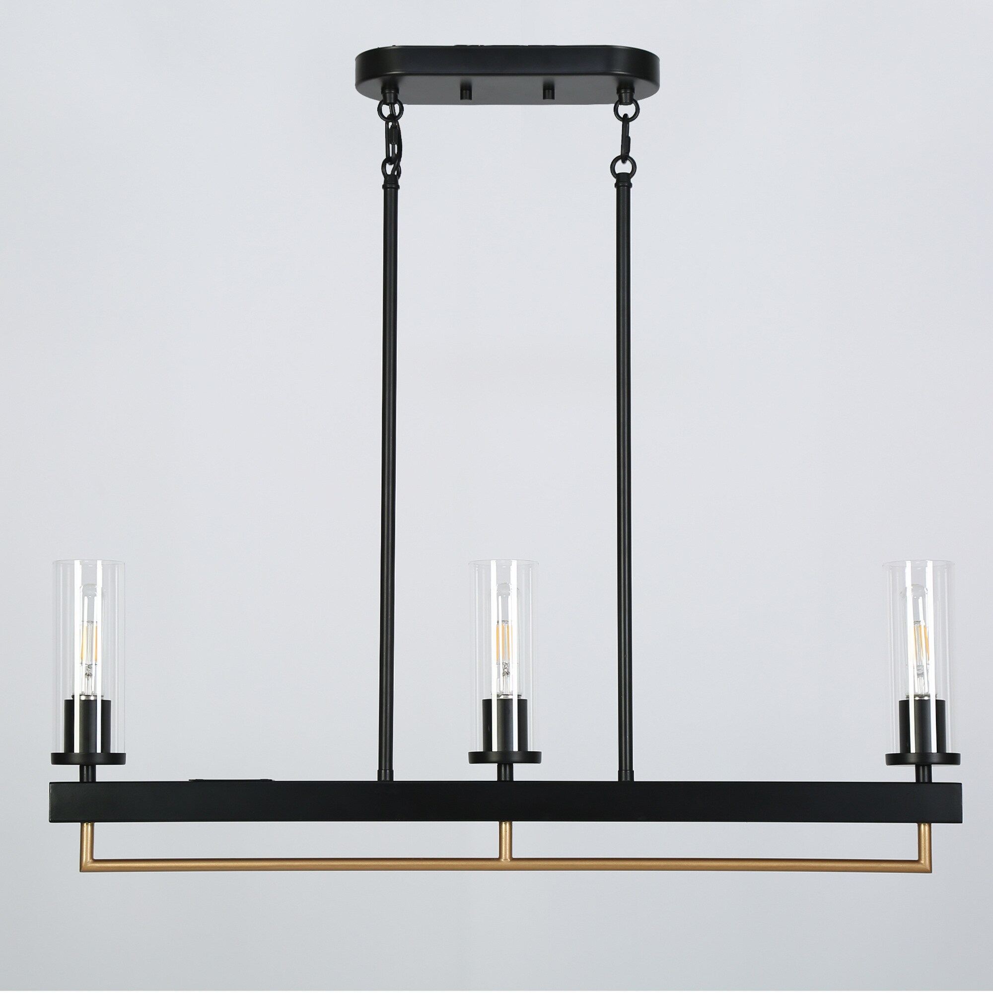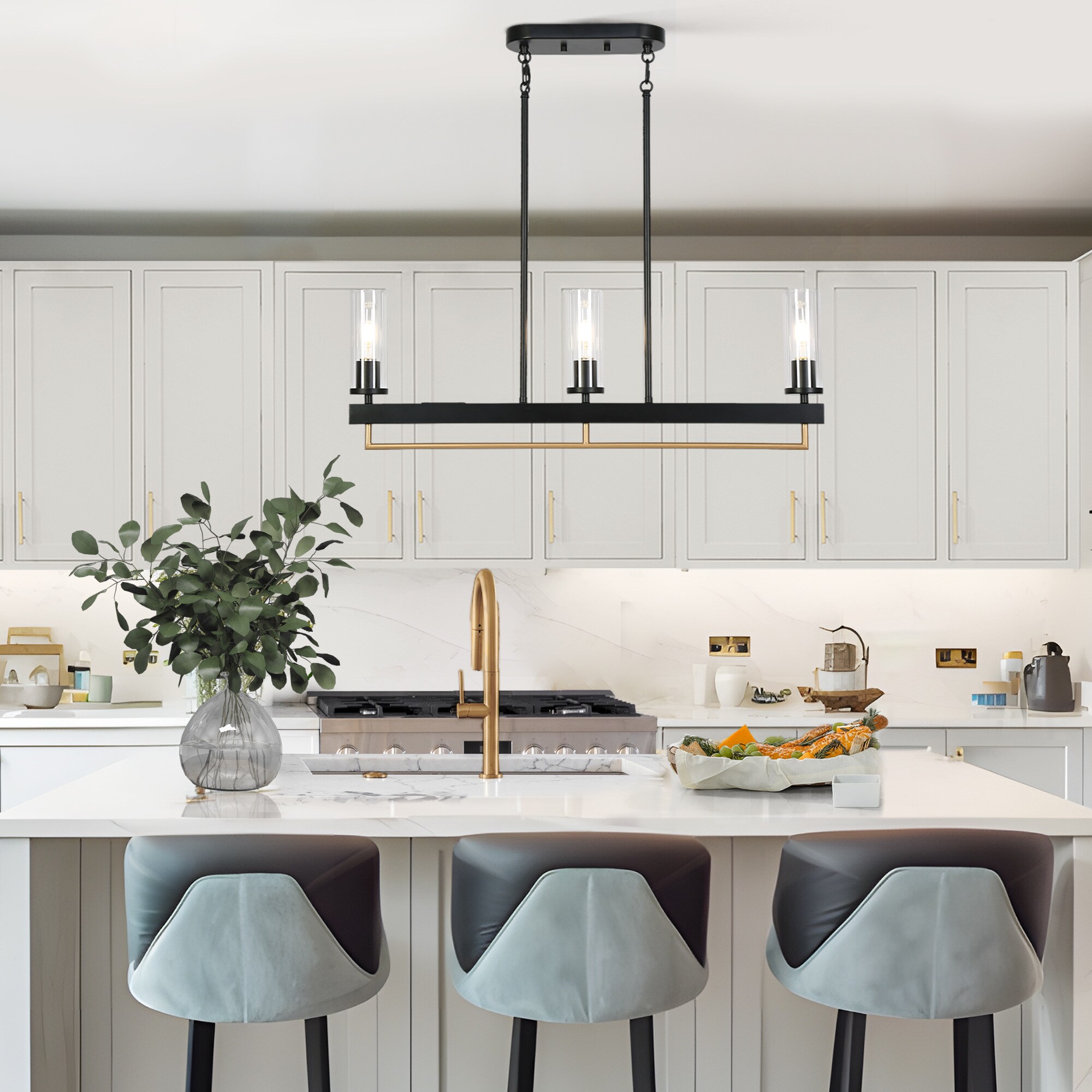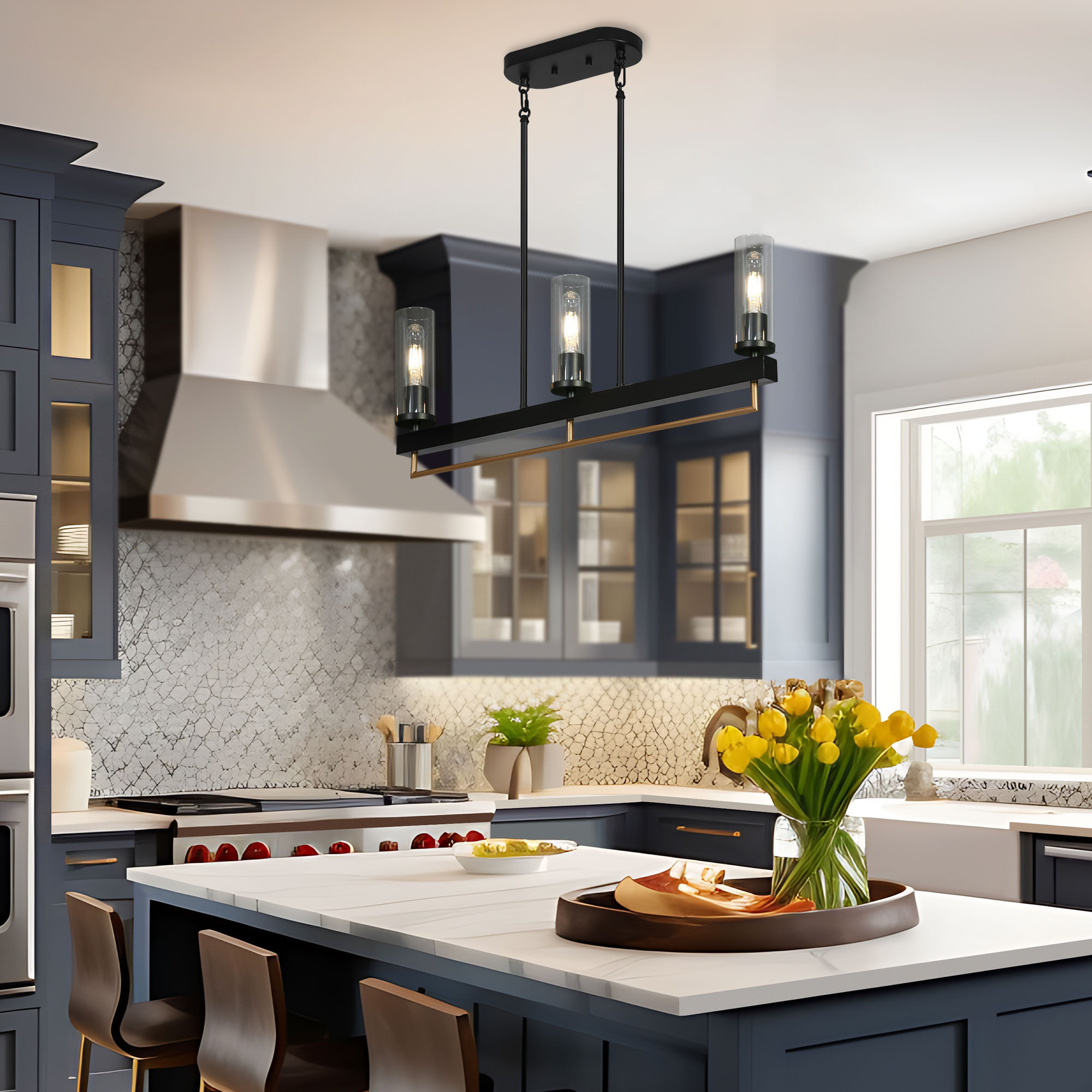 This elegant matte black and brass island pendant light is perfect for adding a modern yet timeless touch to your kitchen or dining area. Its sleek design and clear glass shades fit seamlessly into both industrial and contemporary decor styles. The combination of black and brass finishes creates a balanced aesthetic that enhances any room’s ambiance. Ideal for kitchen islands or dining tables, it provides ample light while serving as a stylish focal point in your space.