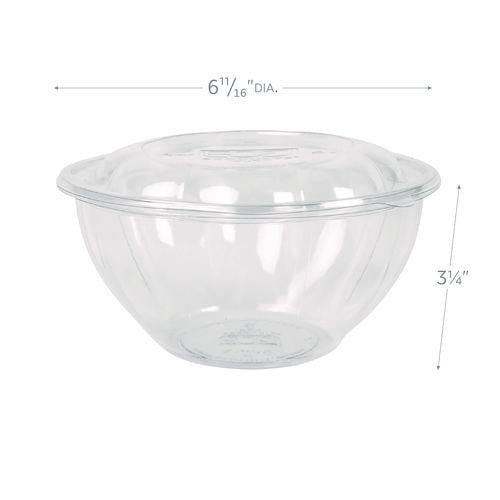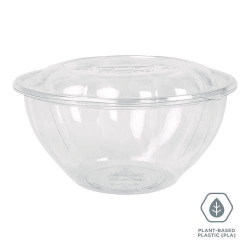 Renewable and Compostable Salad Bowls with Lids, 32 oz, Clear, Plastic, 50/Pack, 3 Packs/Carton Elevate your dining experience with our PLA Salad Bowls with Lids. Crafted from renewable plant-based materials, these clear bowls are the perfect blend of sustainability and style, ideal for restaurants and cafes. By choosing our PLA Salad Bowls with Lids, you’re not just making a purchase; you’re making a statement. Store your cold or chilled foods in these clear bowls with the included snap-on lids. You care about quality, presentation and sustainability. Join us in our mission to create a more sustainable future, one meal at a time. Made from PLA, these salad bowls are derived from natural, renewable resources. The transparent design offers a premium presentation of your fresh salads, fruits, and gourmet dishes, enhancing their natural appeal. Each bowl comes with a tight-fitting lid, keeping your meals fresh and preventing spills during transport; perfect for takeout, delivery and on-the-go lifestyles. Despite being compostable, our PLA bowls are robust and reliable, providing a dependable alternative to traditional plastic without compromising on quality. A great option for restaurants and cafes looking to offer sustainable packaging options. – Color: Clear – Disclaimer Statement: Compost according to manufacturer’s guidelines. Suitable composting facilities may not be available in all areas. – Food Container Type: Base – Global Product Type: Takeout Food Containers – Material: PLA – Number of Compartments: 1 – Compliance Standards: BPI Certified Compostable, USDA Certified Biobased 100% – Material Type: Plastic – Hinged Lid (Yes/No): No – Vented (Yes/No): No – Green Information: Made from 100% renewable resources. – Interior Volume Capacity: 32 oz – Product Biodegradability in Days: 0 – Product Biodegradability Indicator: N – Product Compostability Certification: BPI Certified Compostable – Product Compostability Indicator: Y – Product Compostability Location: Commercial Facility