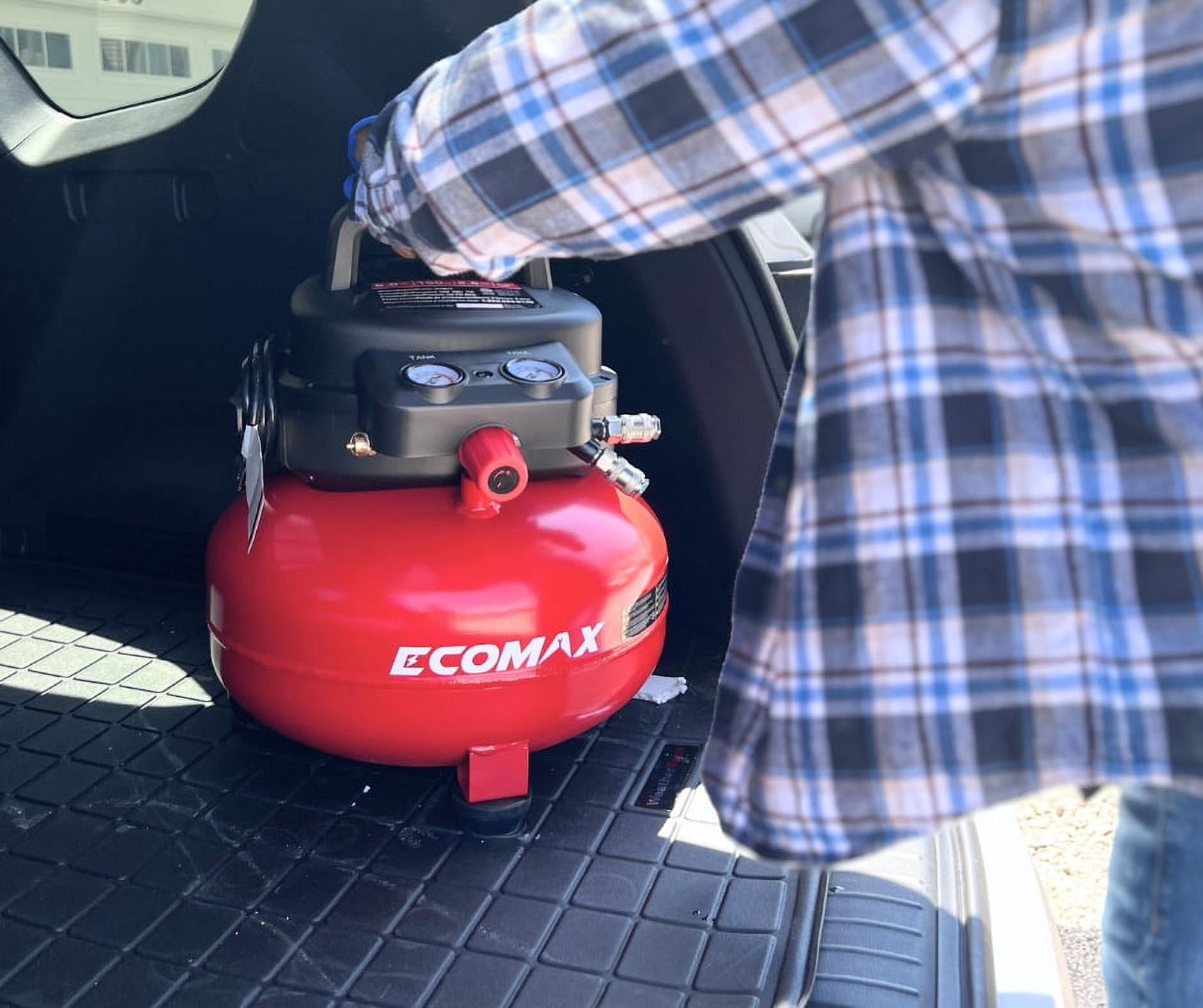 The ECOMAX 6 Gal 1.0 HP PANCAKE AIR COMPRESSOR offers the necessary strength for both household and job site applications. Its operational capacity reaches up to 150 PSI and incorporates two gauges to ensure precise pressure control. With a winding bracket for convenient power cord storage, dual quick couplers for simultaneous usage, and a durable oil-free pump for reduced maintenance, this compressor provides exceptional performance. Despite its compact size and lightweight design, it matches the power of larger compressors, guaranteeing enhanced mobility. Additionally, it possesses low-voltage and cold-weather start capabilities, enabling it to handle a wide range of tasks effectively.