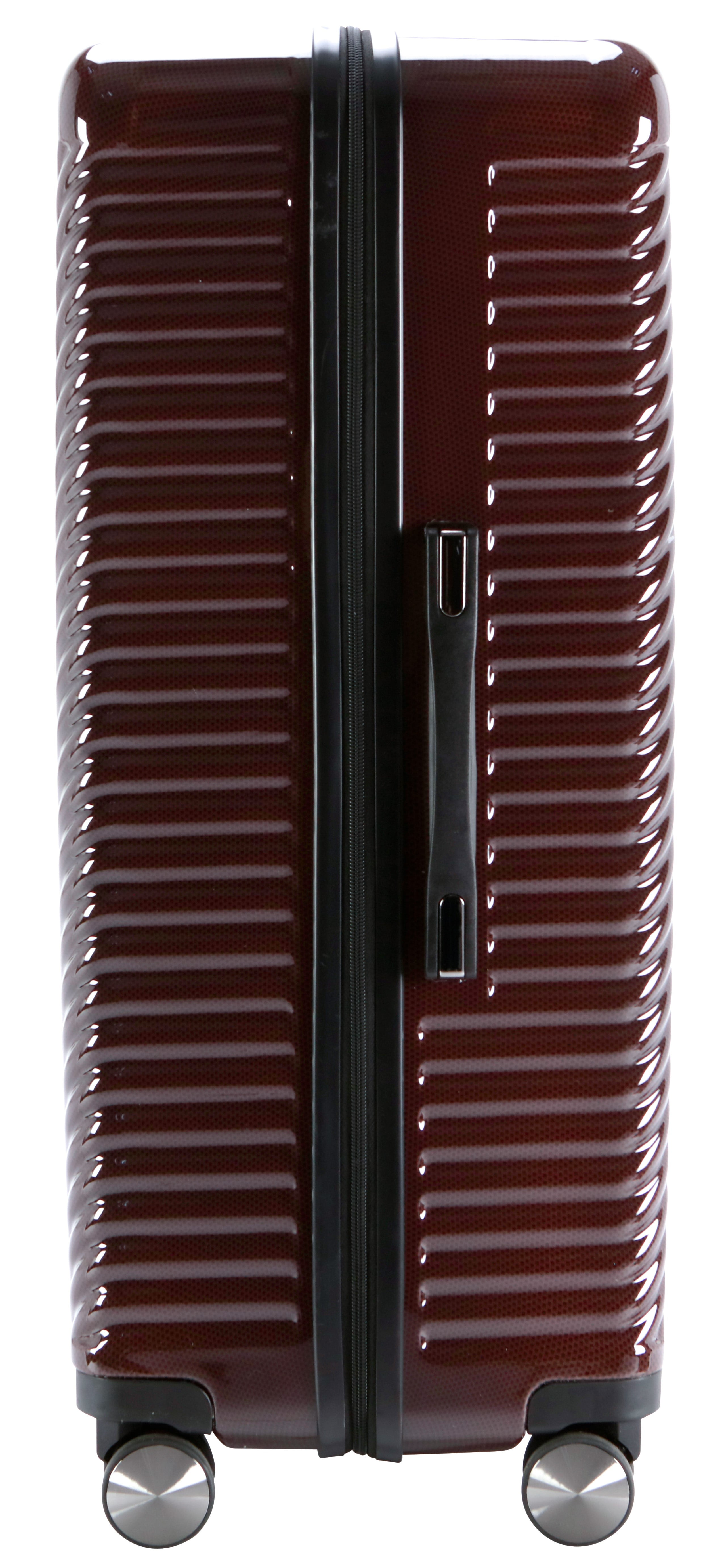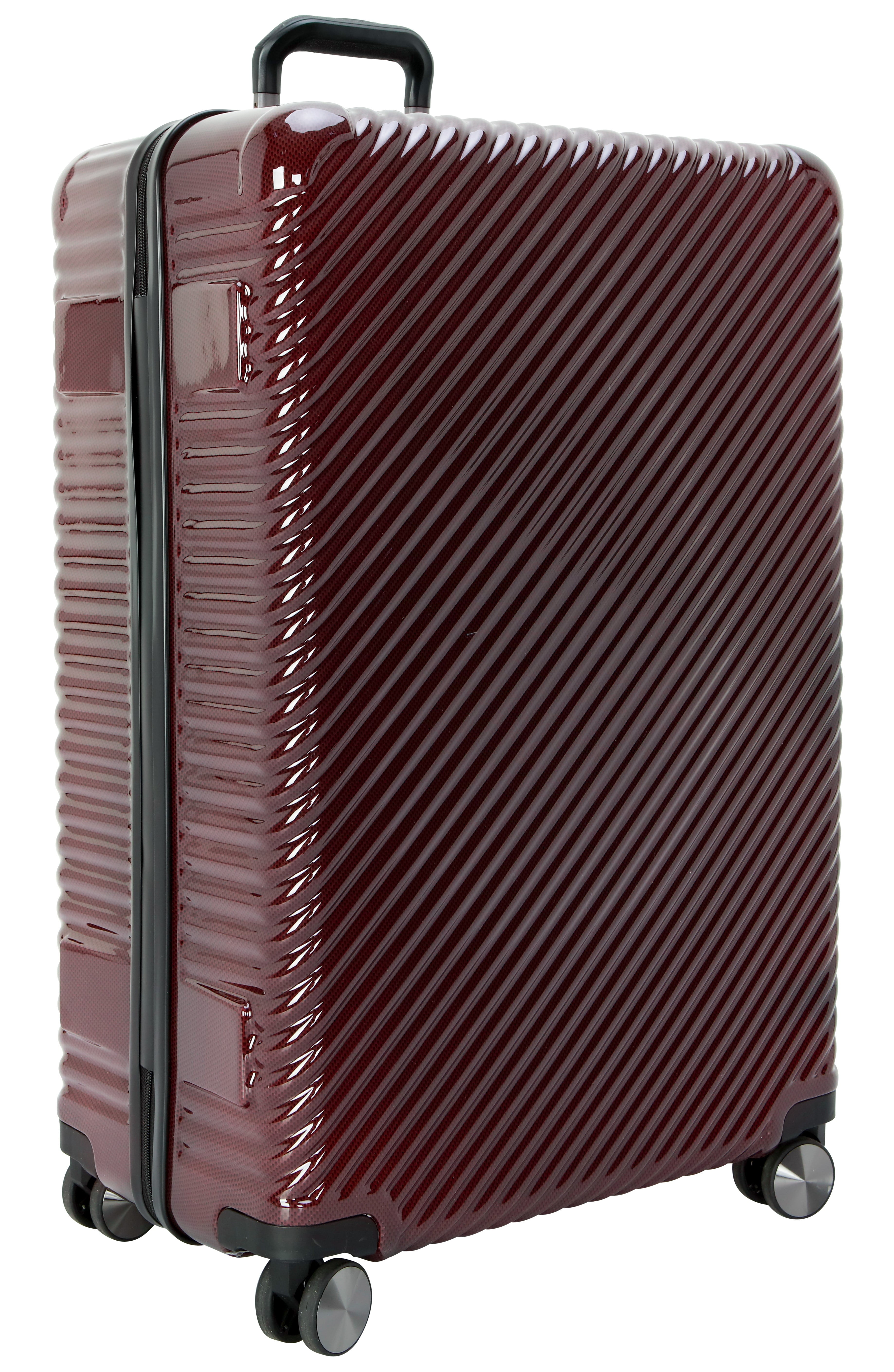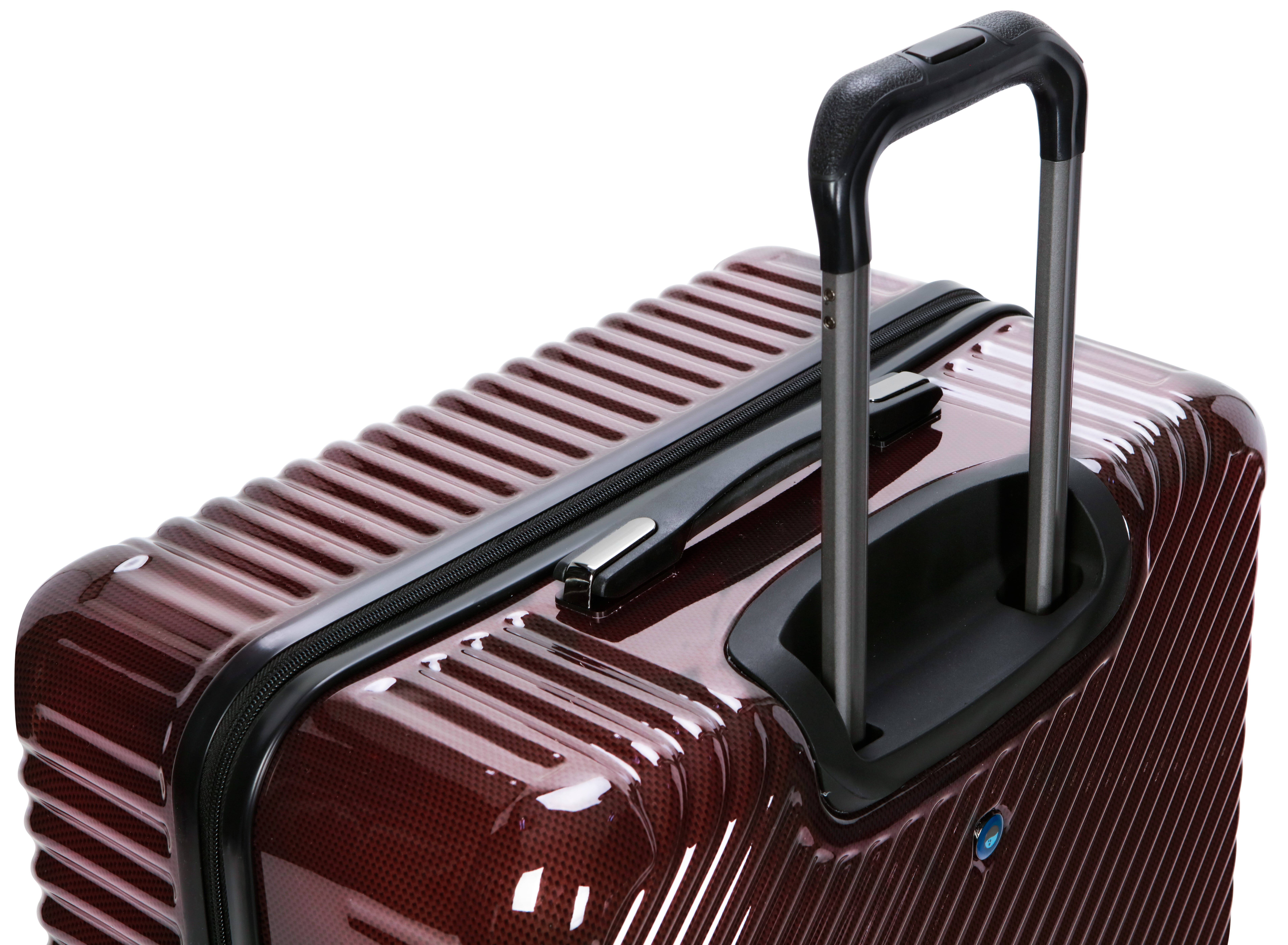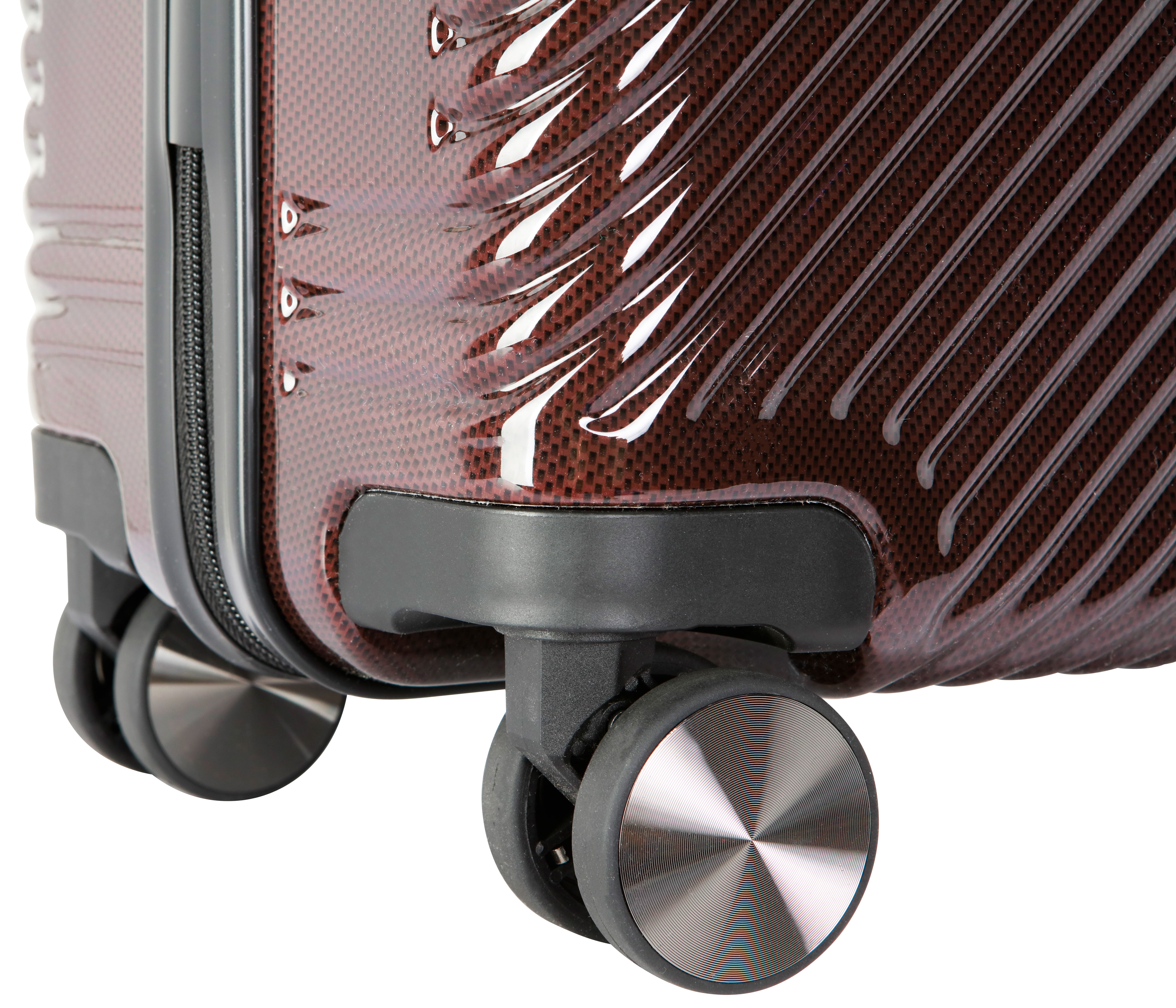 Made of durable 100% ABS with a PC Film and deluxe 100% Polyester Lining Stylish high shine two-tone shell High performance 360-degree dual wheel spinner system Sturdy adjustable telescopic handles Comfort grip carry handles Built in compression straps Built in interior organizer compartment Metallic accents 20 Year Limited Warranty