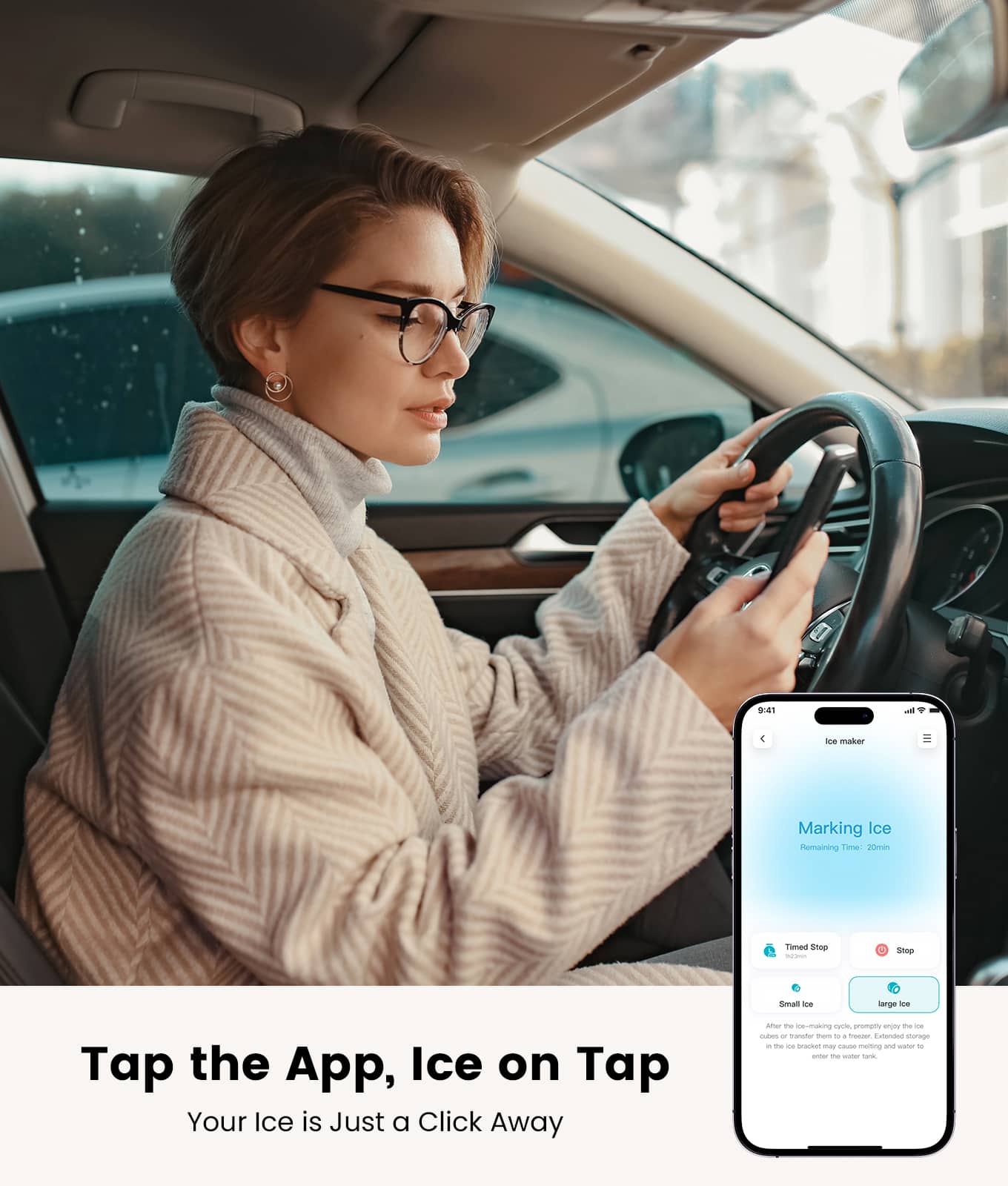 Enjoy smart, effortless ice-making with Alexa and app control—start or stop production, adjust settings, and monitor progress from anywhere. Get fresh ice in just 6-8 minutes, choosing between two sizes for quick-chilling sodas or slow-melting cocktails. Stay informed with real-time app alerts for low water levels or a full bin, and schedule ice production up to 24 hours in advance so you’re always prepared. Designed for quiet operation, it runs smoothly in any space, while the one-touch self-cleaning feature keeps your ice pure with minimal effort. Sleek and compact, it fits seamlessly into your kitchen, office, or bar, delivering convenience without taking up extra room. More ice, less hassle—because every moment deserves a perfectly chilled drink.