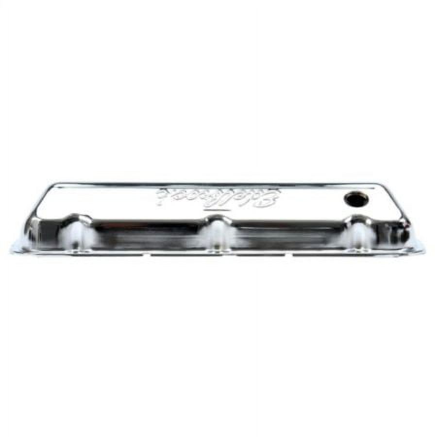 Engineered for function and styled for good looks, triple chrome-plated Signature Series valve covers have stock-style breather baffles that prevent oil passage to the PCV valve. General Information Manufacturer: Edelbrock Manufacturer Part Number: Edelbrock UPC: 085347044634 Characteristics Engine Make/Size: Ford 429-460 Material: Chrome Valve Cover Style: Short Cylinder Head Type: Standard Fitment Guide 1969-1974 Ford Country Sedan 1969-1974 Ford Country Squire 1969-1972 Ford Custom 1969-1976 Ford Custom 500 1978-1978 Ford E-100 Econoline 1975-1980 Ford E-250 Econoline 1975-1987 Ford E-250 Econoline Club Wagon 1975-1987 Ford E-350 Econoline 1977-1987 Ford E-350 Econoline Club Wagon 1976-1976 Ford Elite 1973-1979 Ford F-100 1975-1979 Ford F-150 1973-1987 Ford F-250 1973-1987 Ford F-350 1970-1970 Ford Fairlane 1969-1974 Ford Galaxie 500 1972-1976 Ford Gran Torino 1969-1978 Ford LTD 1970-1971 Ford Mustang 1969-1974 Ford Ranch Wagon 1970-1977 Ford Ranchero 1968-1976 Ford Thunderbird 1970-1976 Ford Torino 1968-1978 Lincoln Continental 1968-1971 Lincoln Mark III 1972-1976 Lincoln Mark IV 1977-1978 Lincoln Mark V 1969-1974 Mercury Colony Park 1971-1976 Mercury Cougar 1975-1978 Mercury Grand Marquis 1969-1970 Mercury Marauder 1969-1978 Mercury Marquis 1970-1976 Mercury Montego 1969-1974 Mercury Monterey