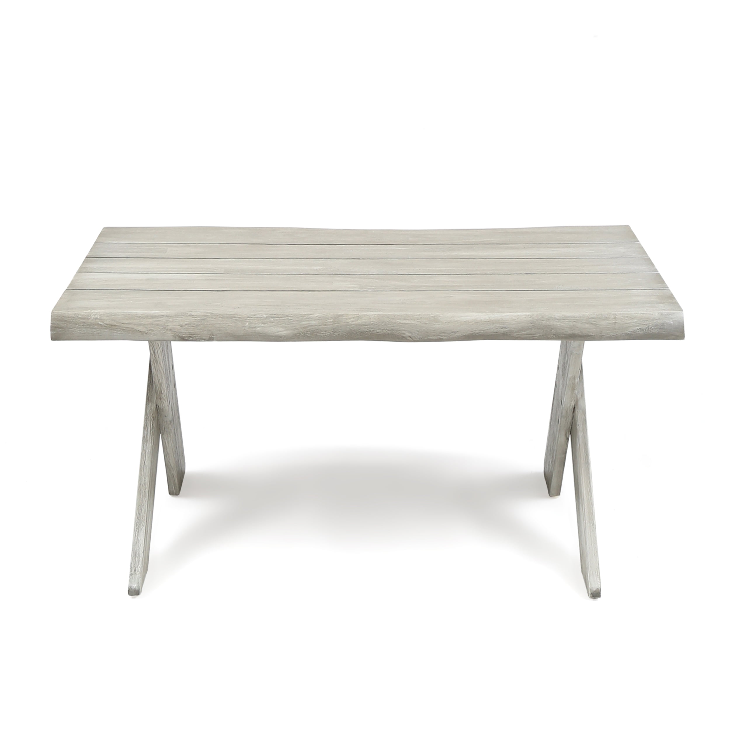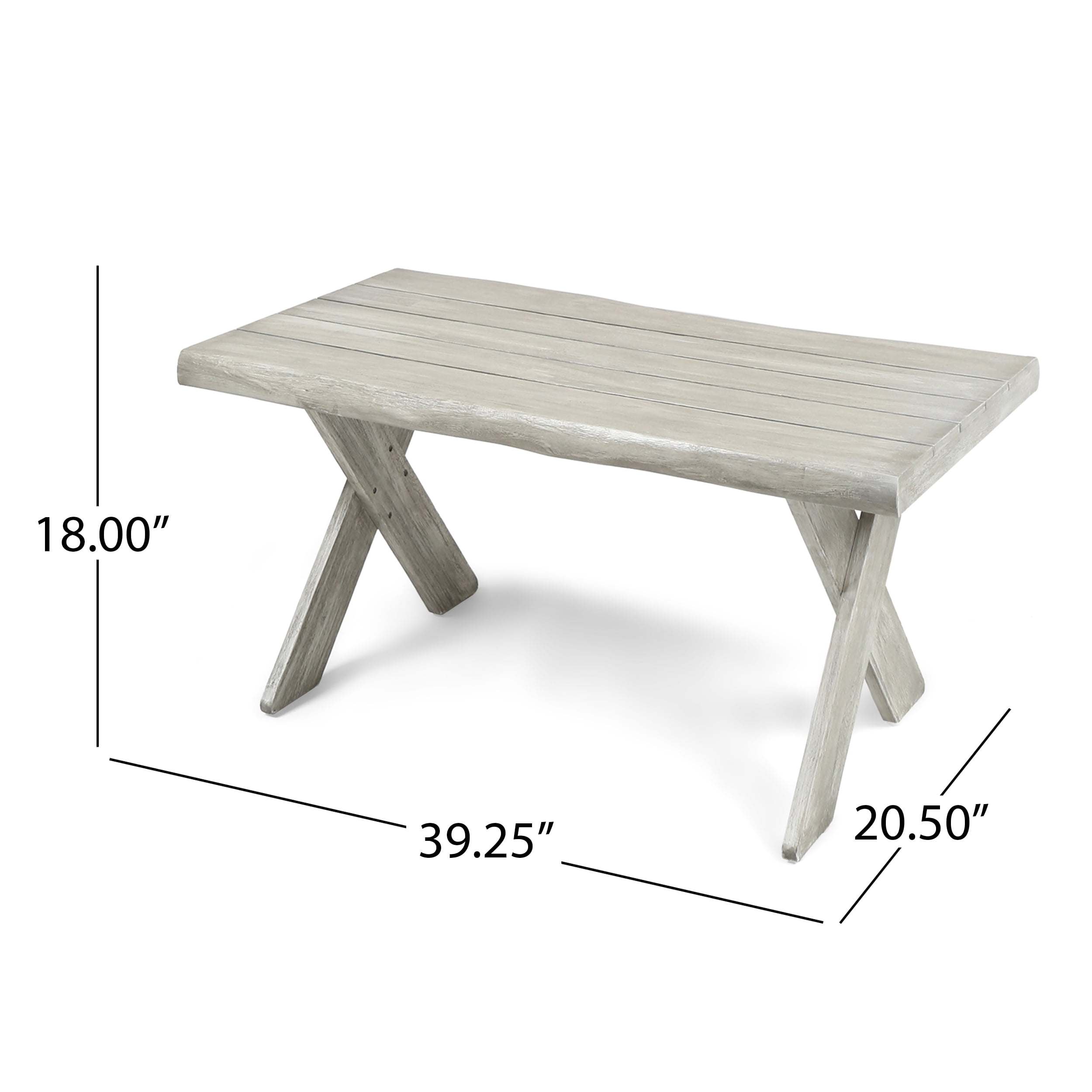 Includes: One (1) Coffee Table Material: Acacia Wood Finish: Sandblast Light Grey Assembly Required Hand Crafted Details Dimensions: 20.50 inches deep x 39.25 inches wide x 18.00 inches high