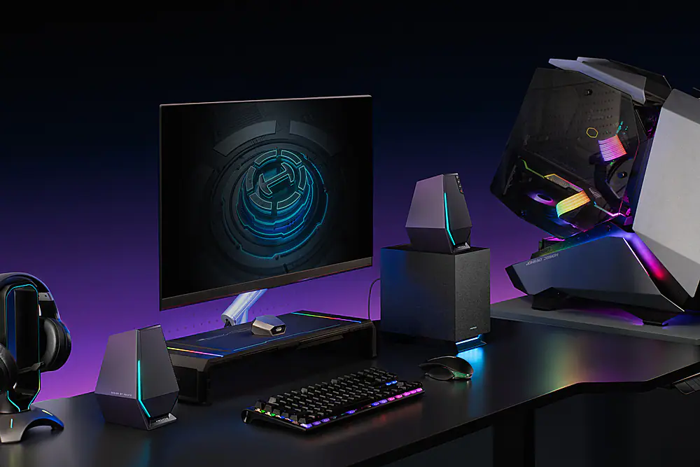 The esports aesthetics of G1500 MAX embody a futuristic Cyberpunk style, characterized by minimalist lines that define the Sci&Tech body. Hexagonal “Big Arm” shaped speakers, housed within wooden cabinets, evoke a blockbuster sensation.