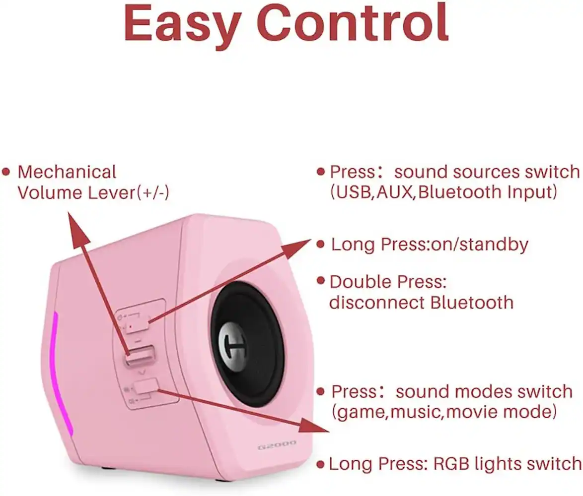 - Product Name: G2000 2.0 Bluetooth Gaming Speakers with RGB Lighting (2-Piece)
