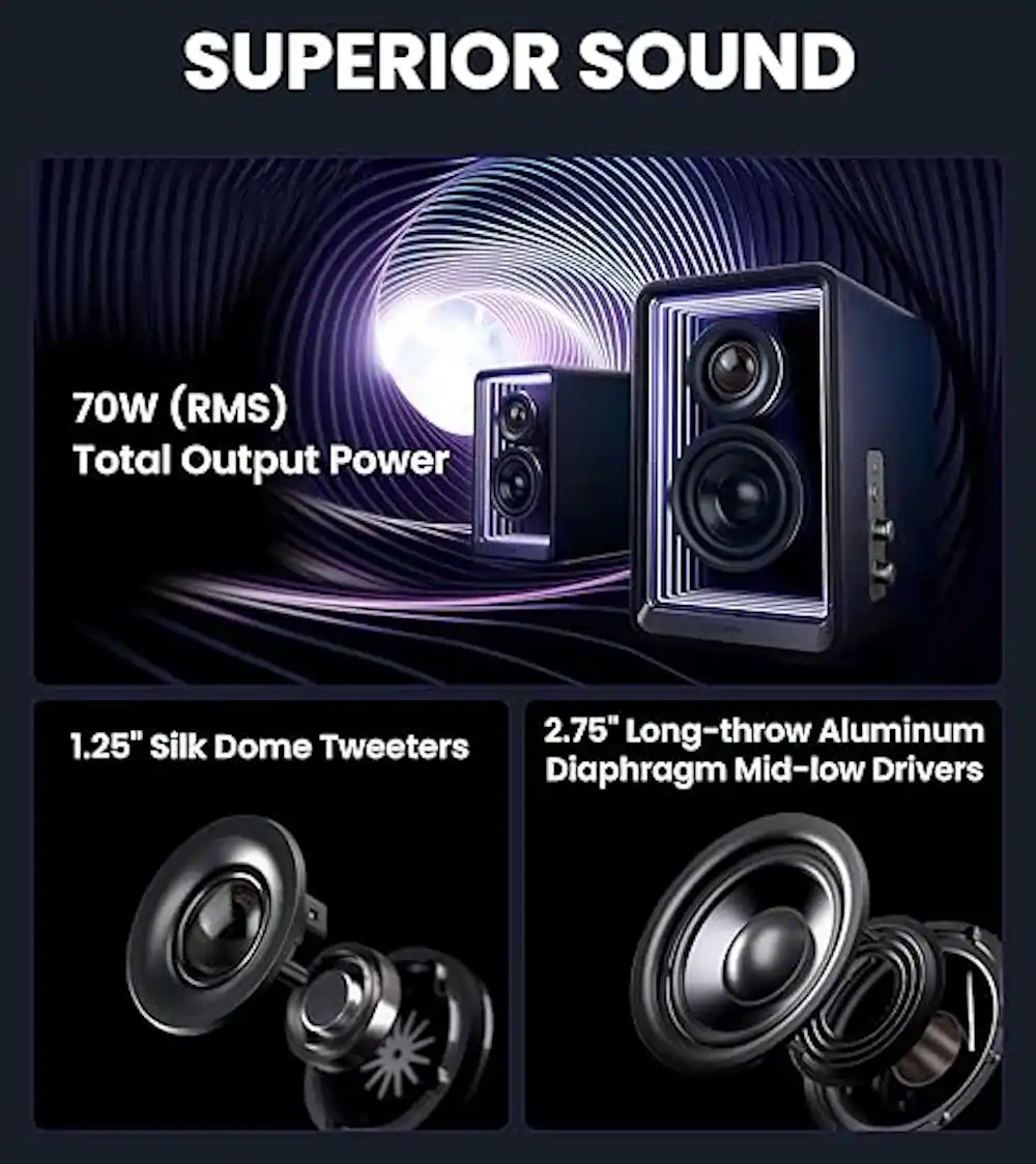 The QR65 speakers feature stunning light effects powered by our patented TempoAbyss technology. These effects resemble cascading ribbons of light, adding a captivating visual element to the mirror-like baffle. You can easily select from 11 preset light effects using the side panel button, or get creative and customize your own unique light display with over 16 million possibilities using the Edifier ConneX app.