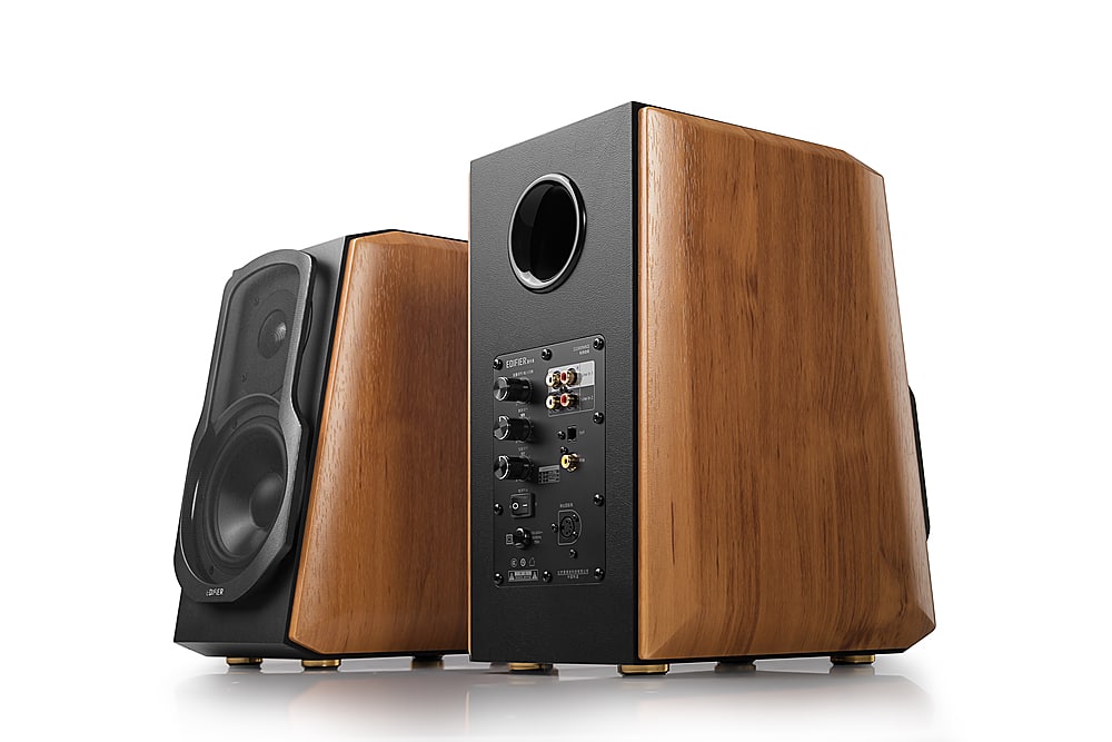 Experience rich sound quality with these Edifier bookshelf speakers. The class D digital power amplification system and a 5.5-inch aluminum mid-woofer unit deliver crystal-clear audio and bass while reducing distortion. These Edifier bookshelf speakers feature wooden side panels for classic appeal, while the support for optical, coaxial and auxiliary inputs ensures flexible connectivity for your TV set, mobile devices and gaming consoles.