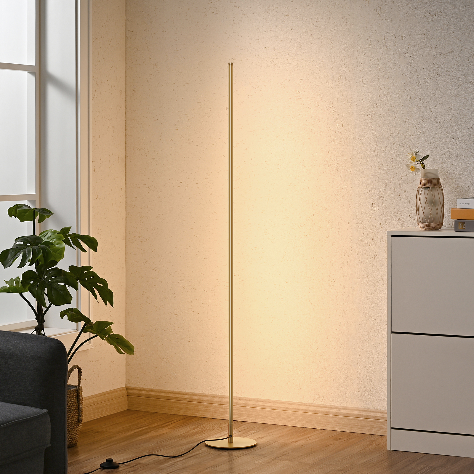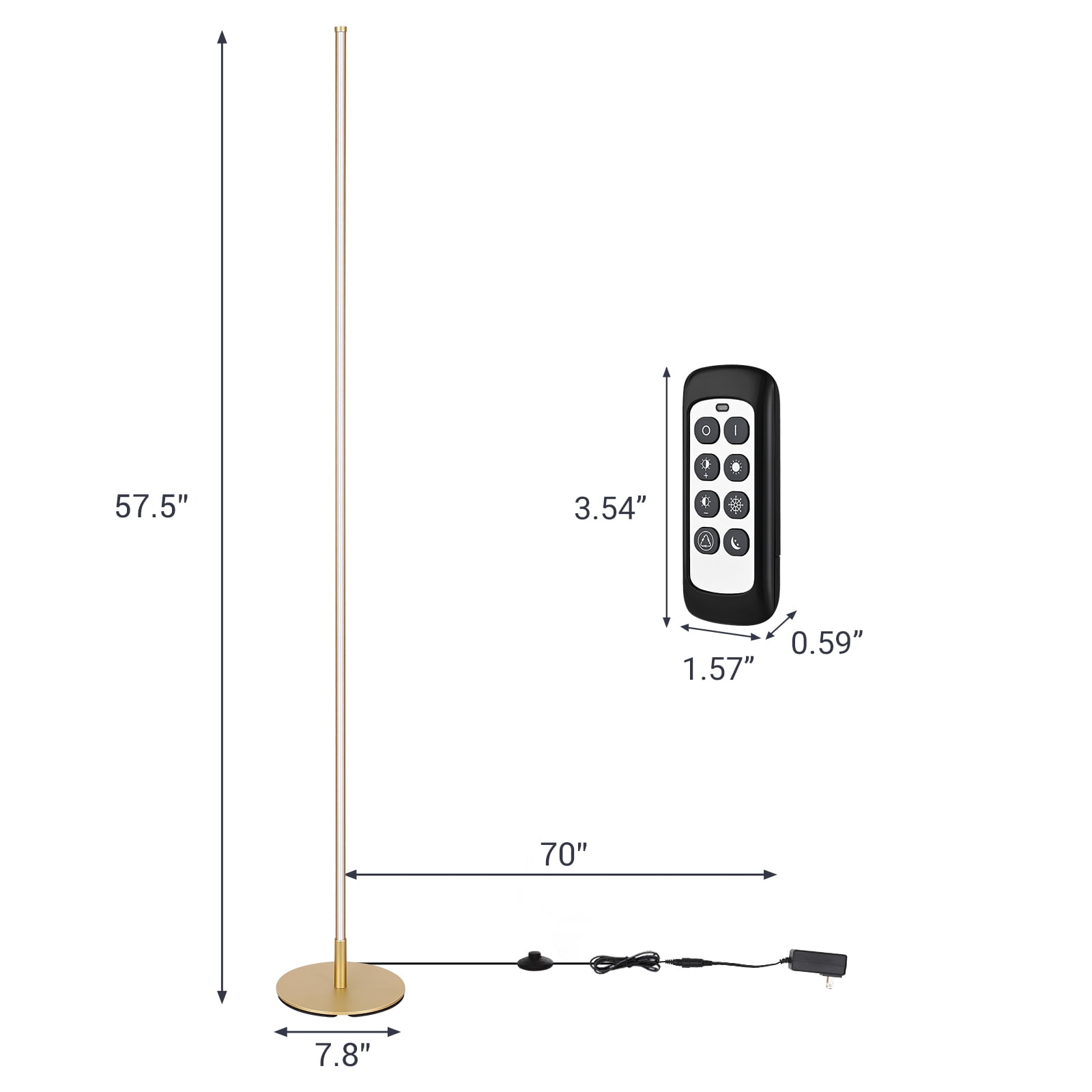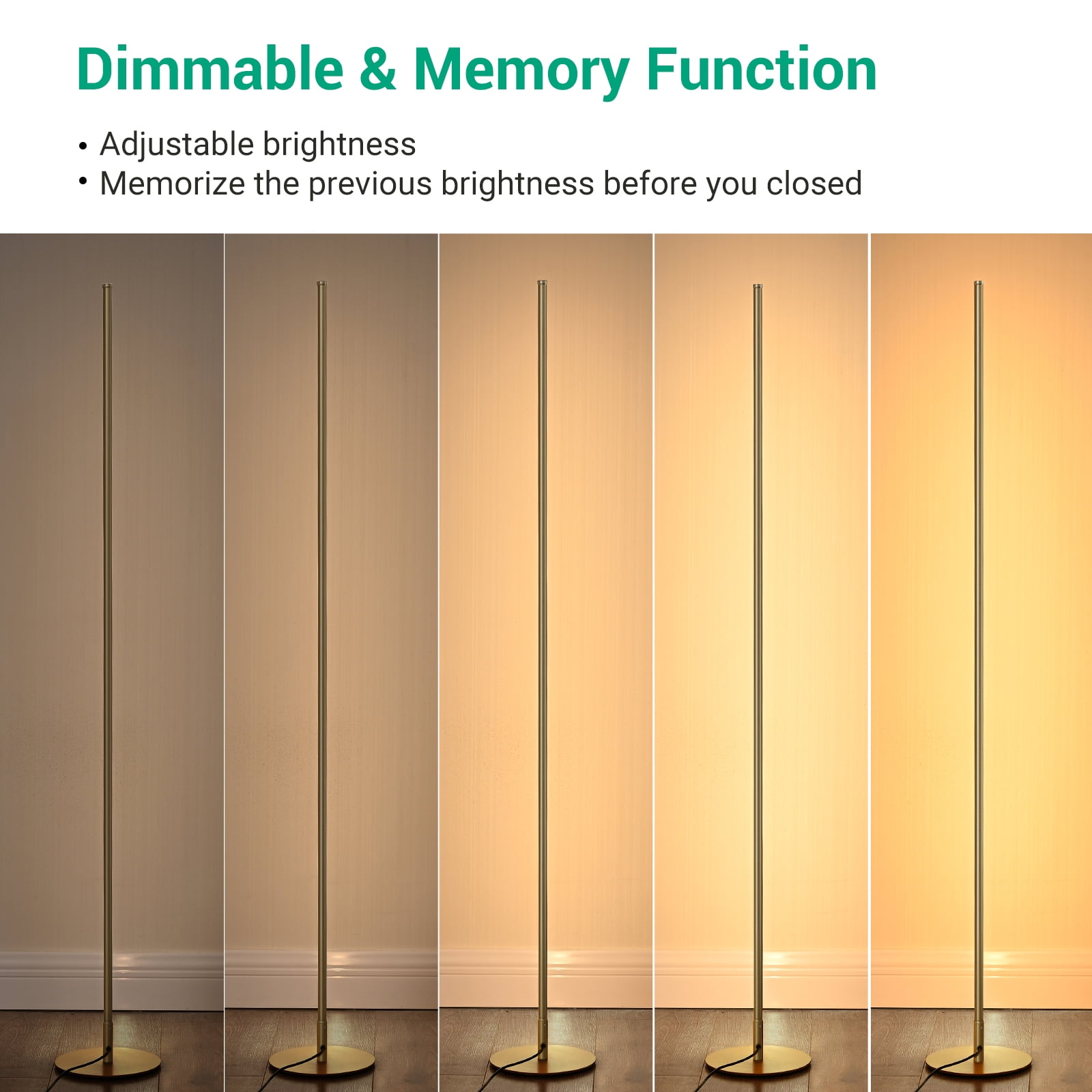 EDISHINE 57.5″ Minimalist Dimmable Gold Floor Lamp