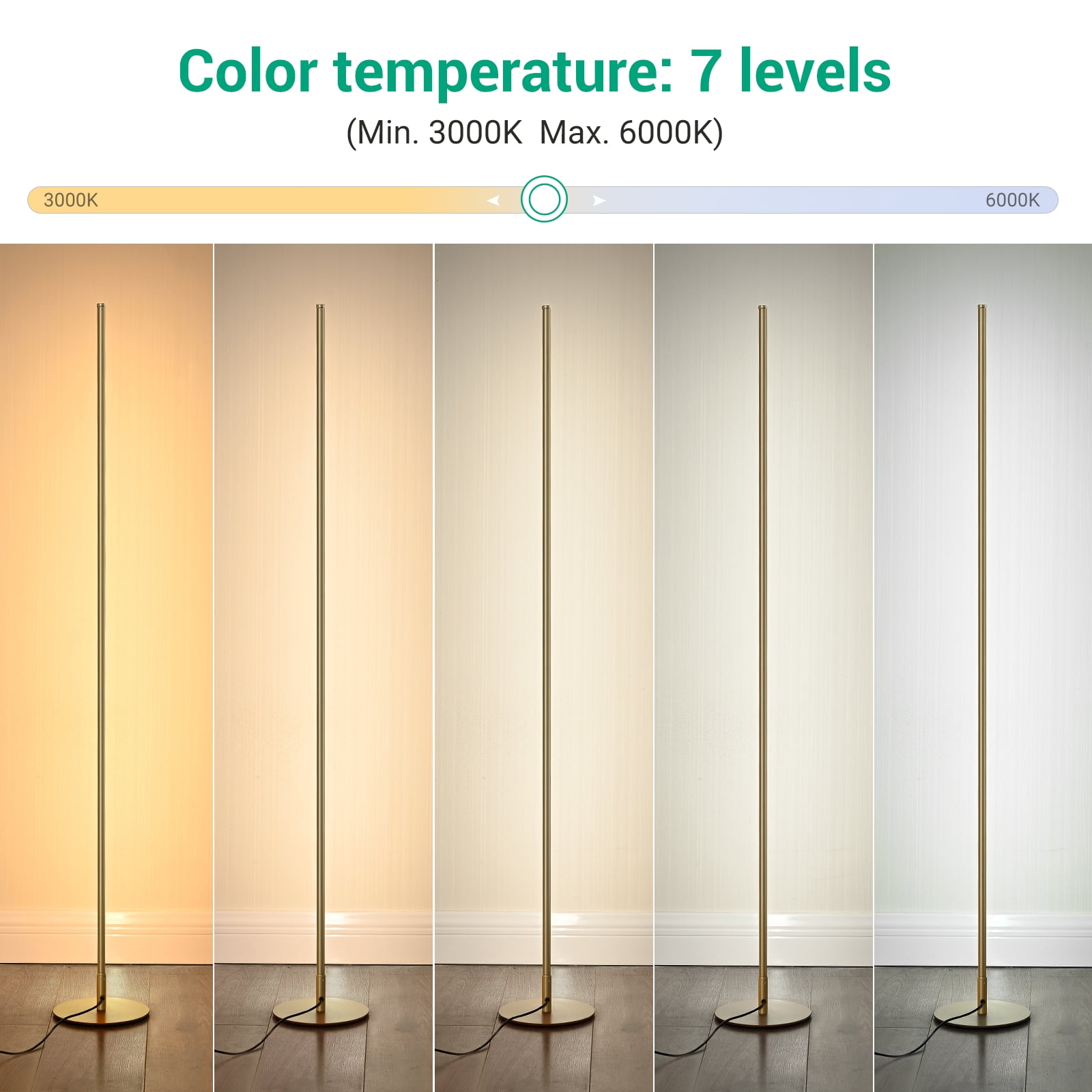 EDISHINE Dimmable LED Floor Lamp with Remote Control, when a room calls for understated modernism, the 57.5″ LED Floor Lamp answers with the perfect balance of minimalism and statement-making design. The energy-efficient built-in LEDs cast a warm glow or white glow from the slimline bar base according to your choice. Adjust the brightness from 10-100% to provide comfortable light, allowing you to customize the lighting according to life or work needs; 7 colors temperature from 2700 to 6000K to switch the lighting from warm, white to cool light; creating a glamourous ambiance for your family.