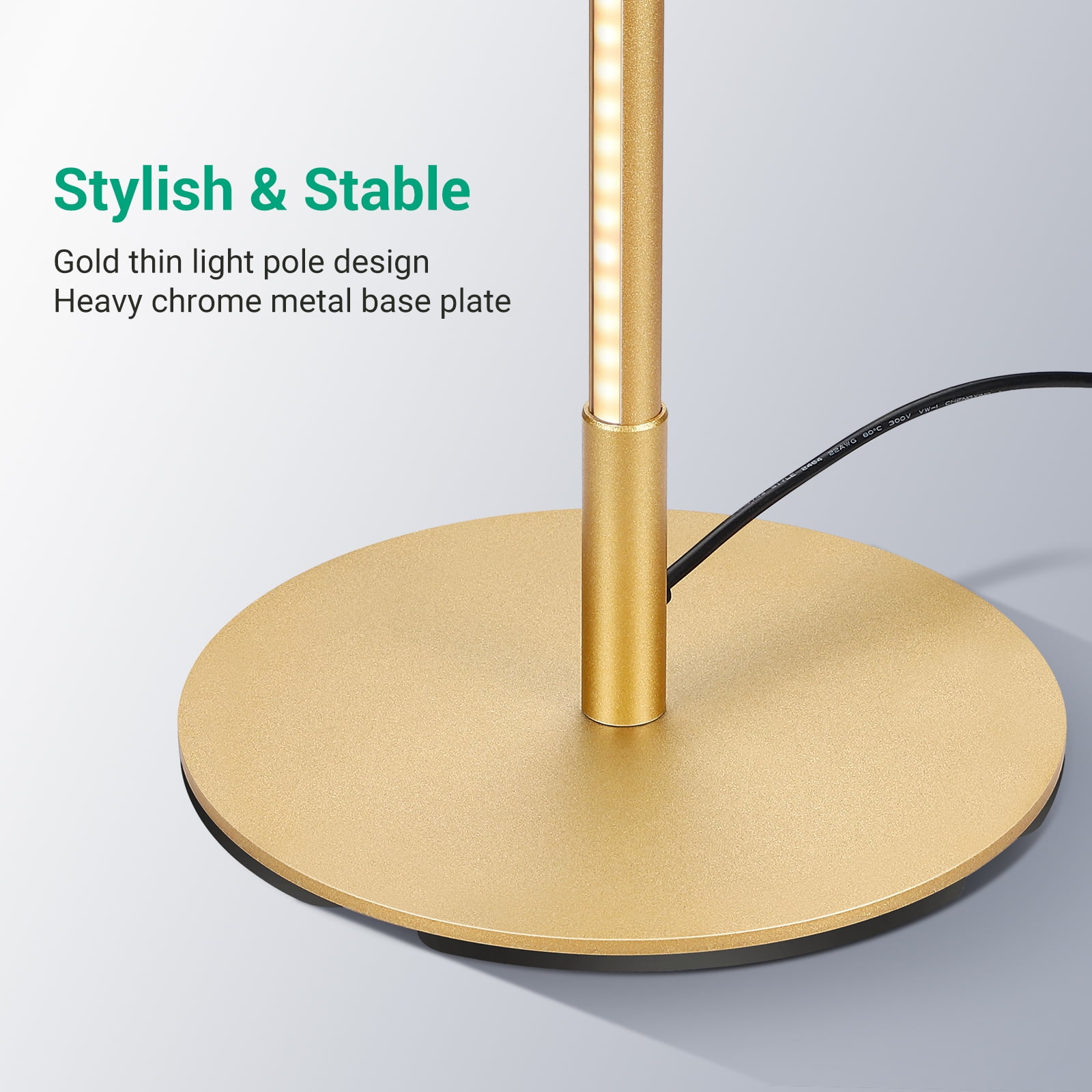 Dimmable & 7 CCT Adjustable: Adjust the brightness from 10-100% to provide comfortable light; 7 color temperatures from 3000K to 6000K to switch the lighting from warm white to cool light Eye Caring & Cozy Light: Multiple light designs including accent lighting mode provide soft, flicker-free light to reduce eye fatigue; customized lighting modes fit for bedroom, living room, lounge, office, entertainment room, and study room Remote Control & Memory Function: Can be controlled smoothly within 49FT; one click to enter night light mode at 30% brightness, and the memory function saves your last setting Long Lasting & Safety: Features over 30, 000 hours of life under normal use; no need to replace a bulb and it won’t overheat after long-time usage, protecting children and pets from burning Sturdy Base: Made with metal material and a weighted base, ensuring safety and stability, preventing it from tipping over, especially safe for kids and pets