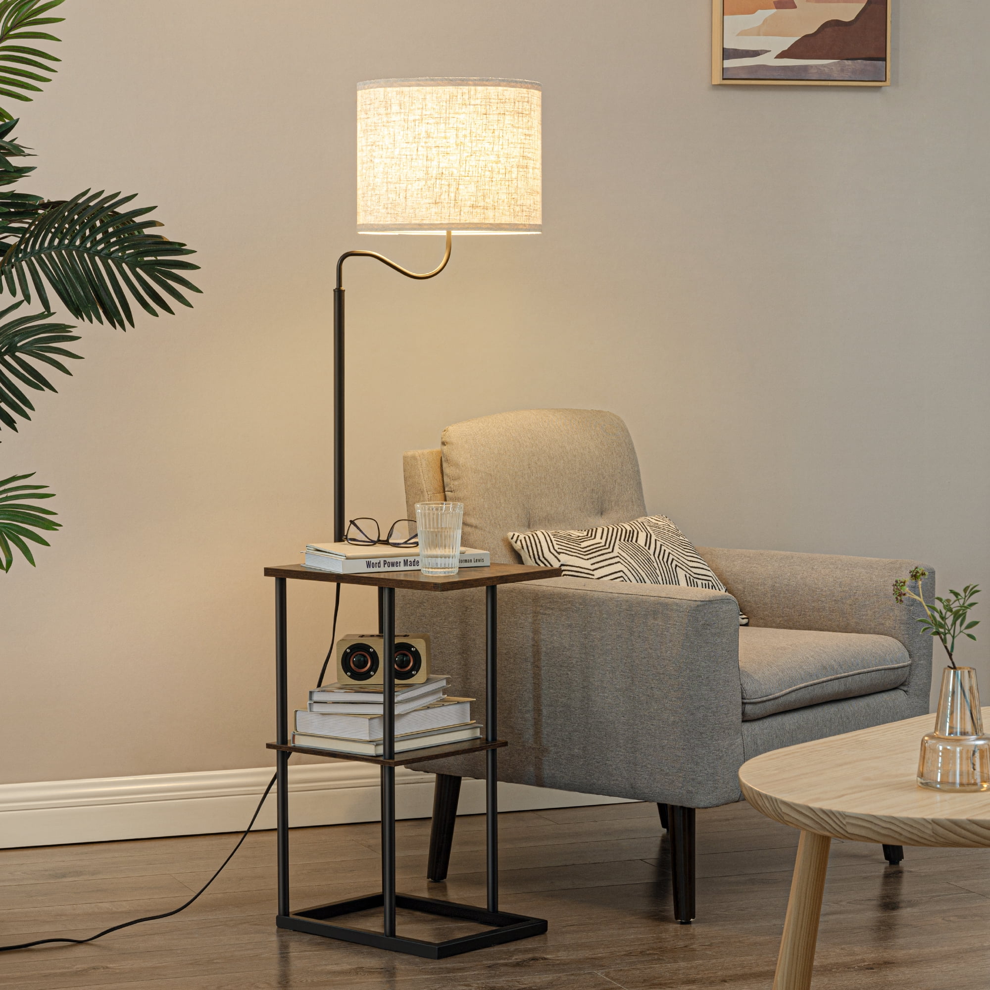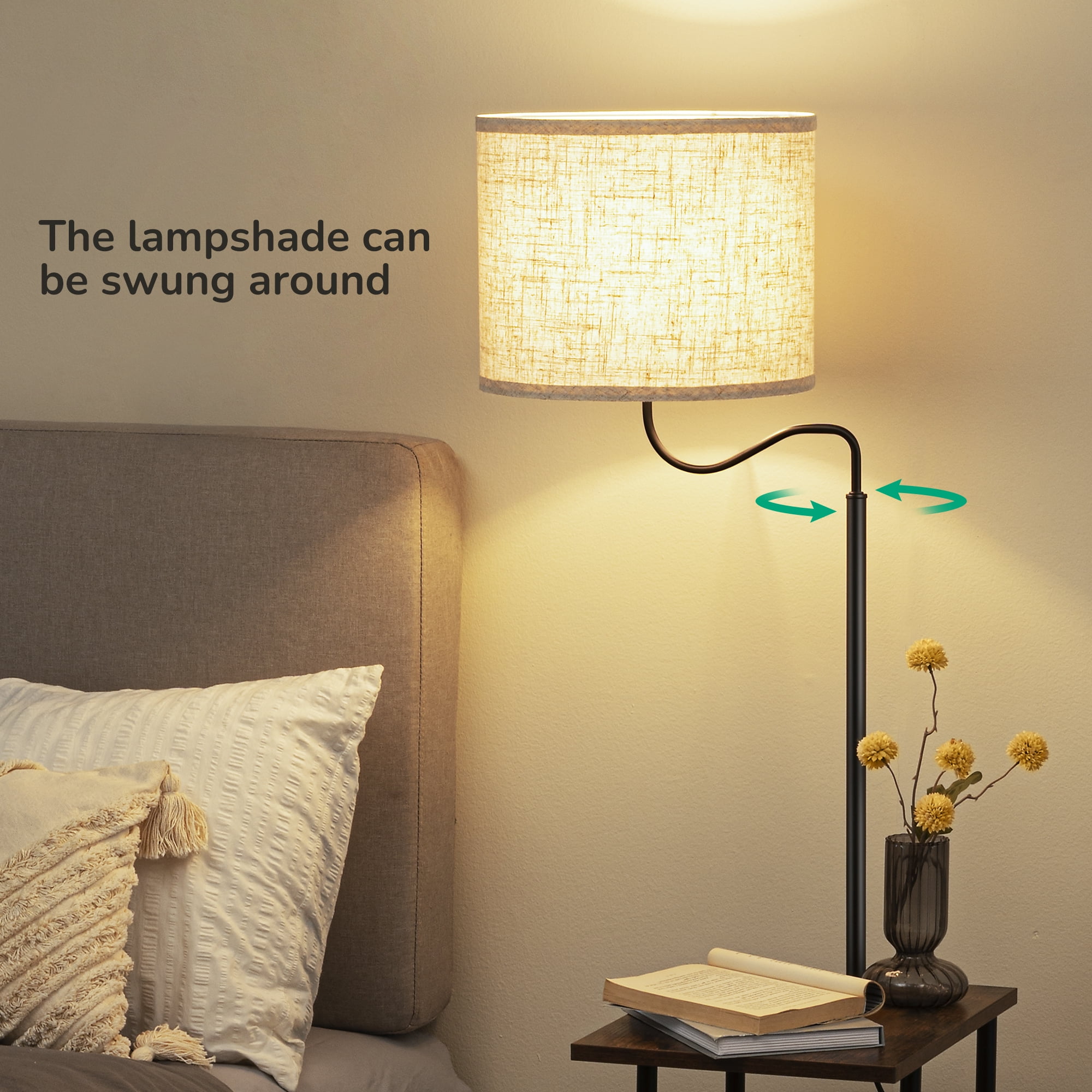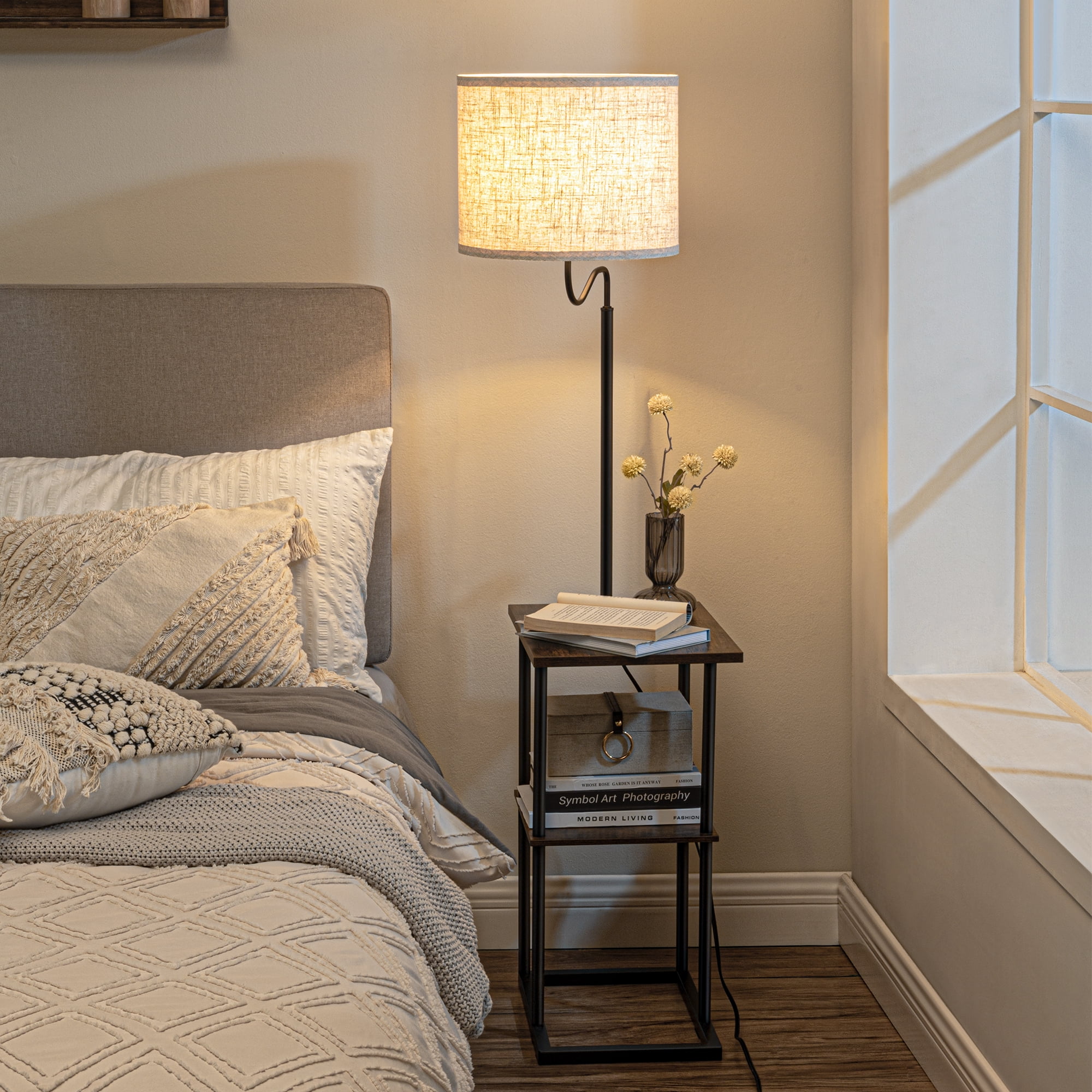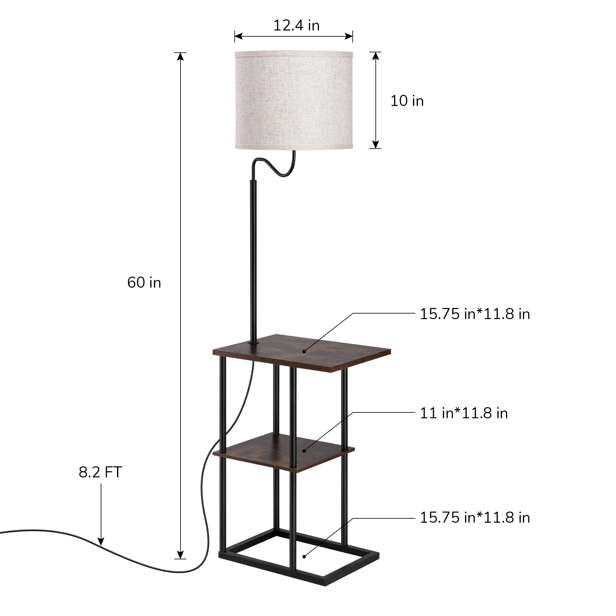 【Swung Lampshade】With the adjustable shade, you can direct the light to anywhere you need it, it’s a practical reading floor lamp for your family. 【Soft Light for Reading】Linen drum lampshade is thick enough to soften beams and minimize glare, protects your eyes. 【Rotary Switch】The convenient rotary switch is easy to operate and allows you to quickly turn on/off the light without moving from sofa or bed. 【2 Storage Tables】Lamp shelf combo comprises of 2 square tables which can be used to place any decorative stuff or can hold books, phones etc., and make them within reach. 【Goes with Various Bulbs】Comes with E26 base socket, the standing lamp can be used with Incandescent Bulb (60W) / LED Bulb (10W) / CFL Bulb (10 W)/Halogen Bulb (43 W), bulb not included. Product Height: 60 IN. Materials: Metal, Wood, Linen Fabric Color: Rustic Brown, Black Input Voltage: 120VAC 60Hz Max.load Power: LED/CFL ≤ 10W; Incandescent Bulb ≤ 60W Socket Type: Standard Medium E26