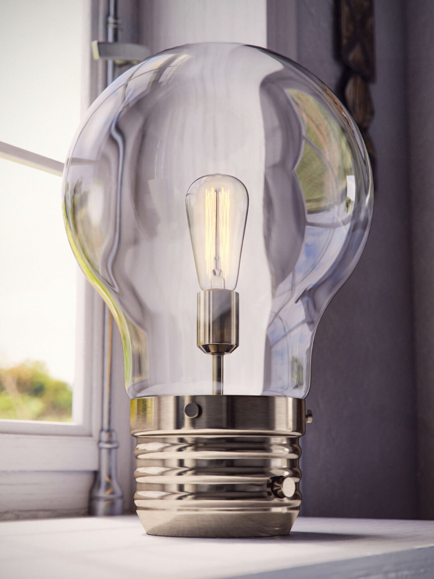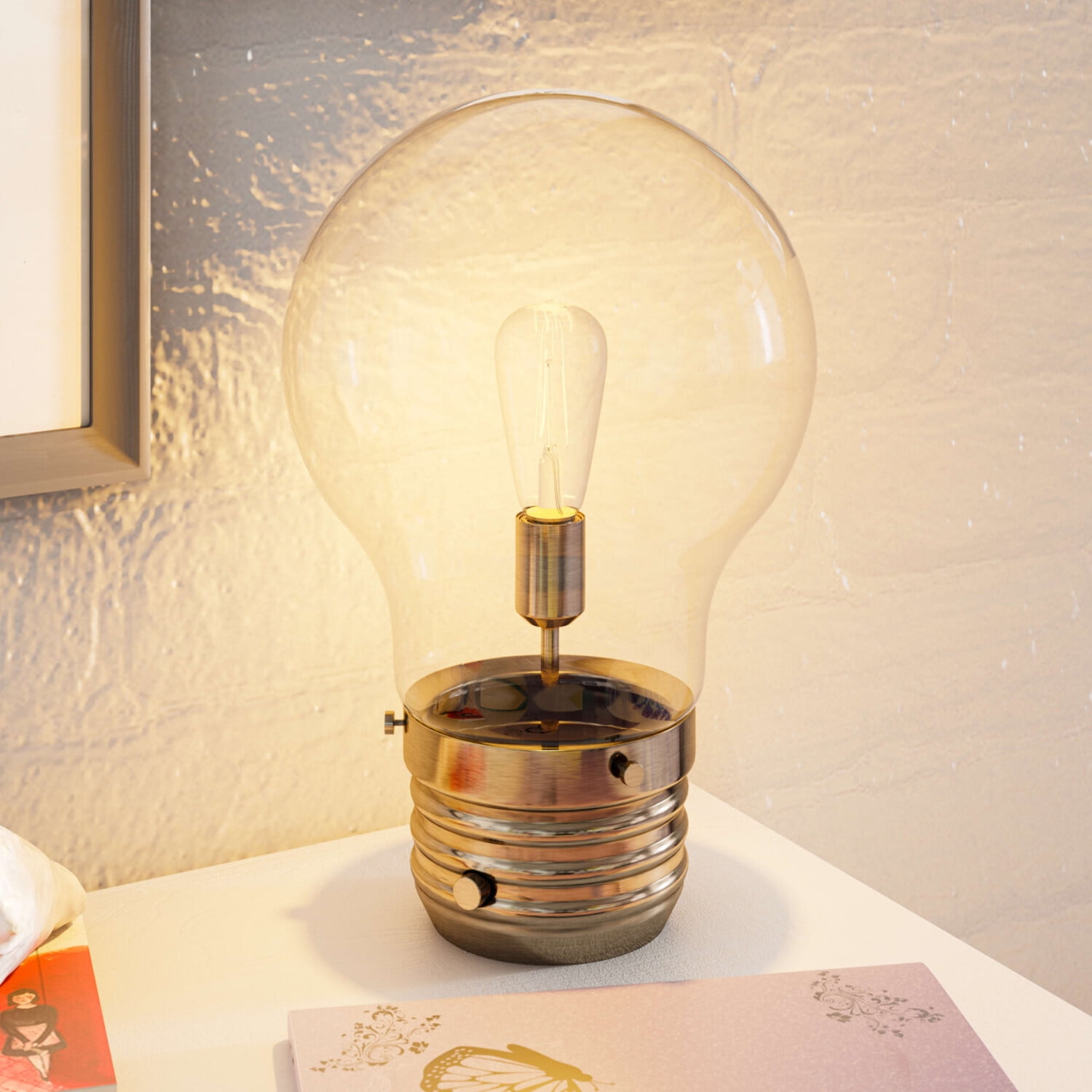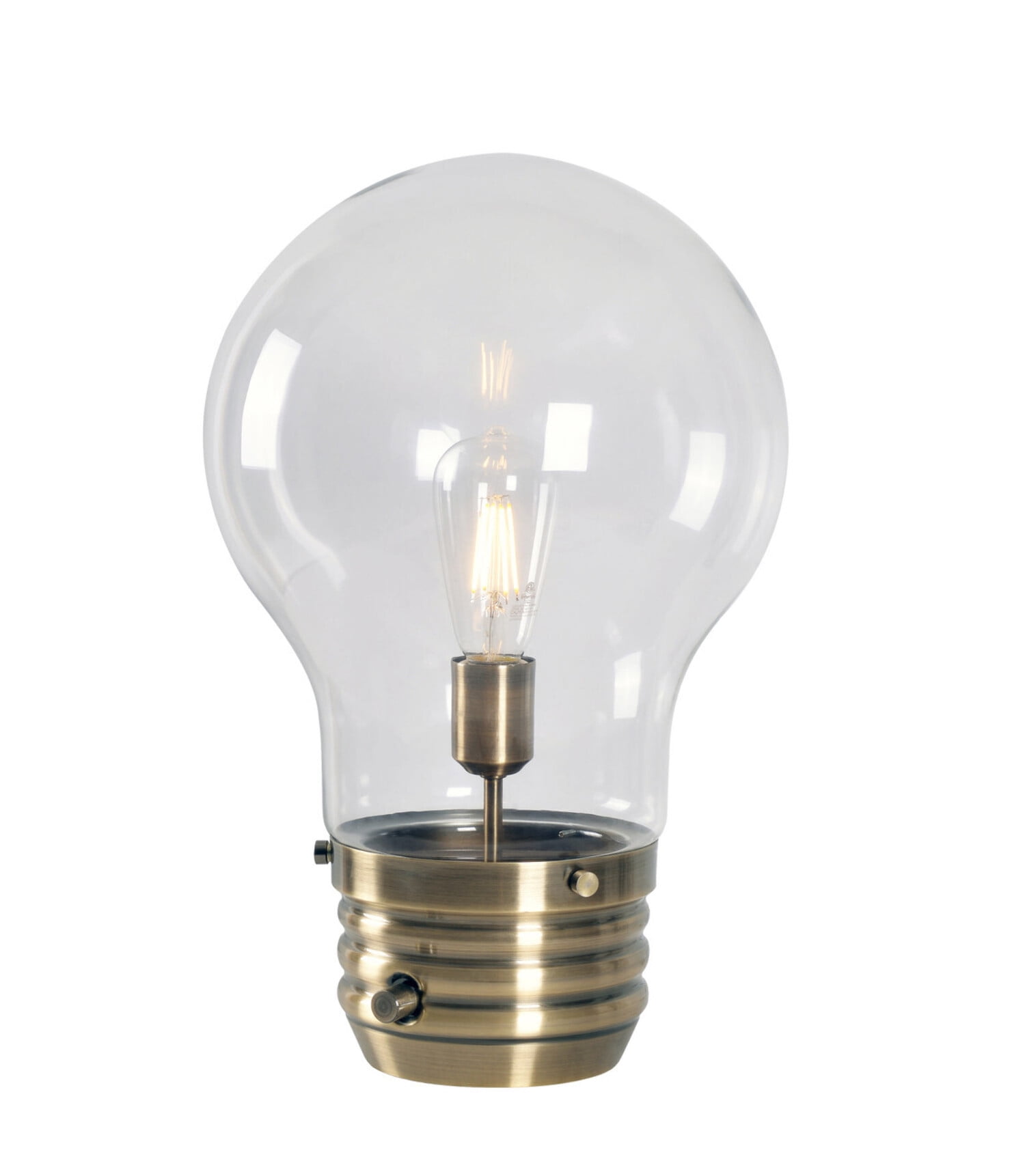 Creating an authentic look and feel to that of a genuine incandescent light bulb, this table lamp is finished with an antique brass accent to mimic the look of a bulb base. This playful table lamp includes a vintage-style LED Edison bulb within its clear glass shade, creating bright accent lighting for your end tables, nightstands, accent tables and more.