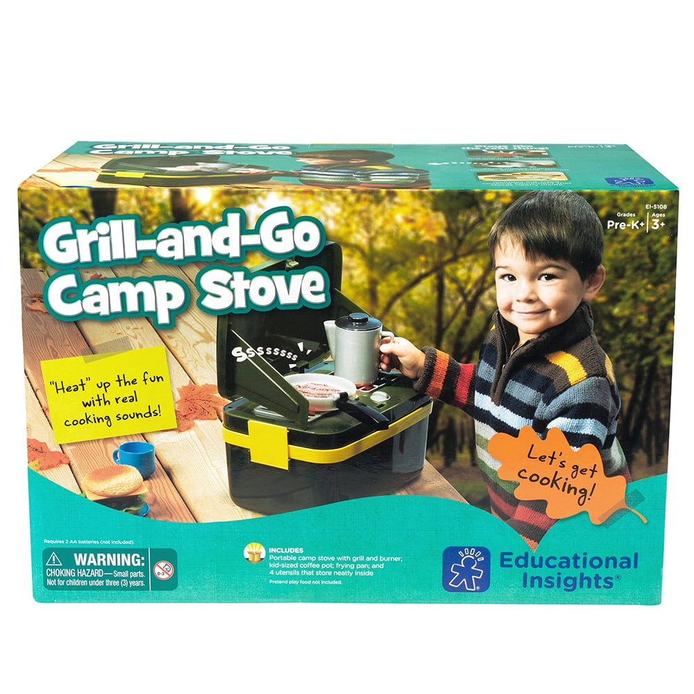 Educational Insights Grill & Go Camp Stove, Plastic Pretend Play Set with Lights and Sound, Play Food, Kids Ages 3+