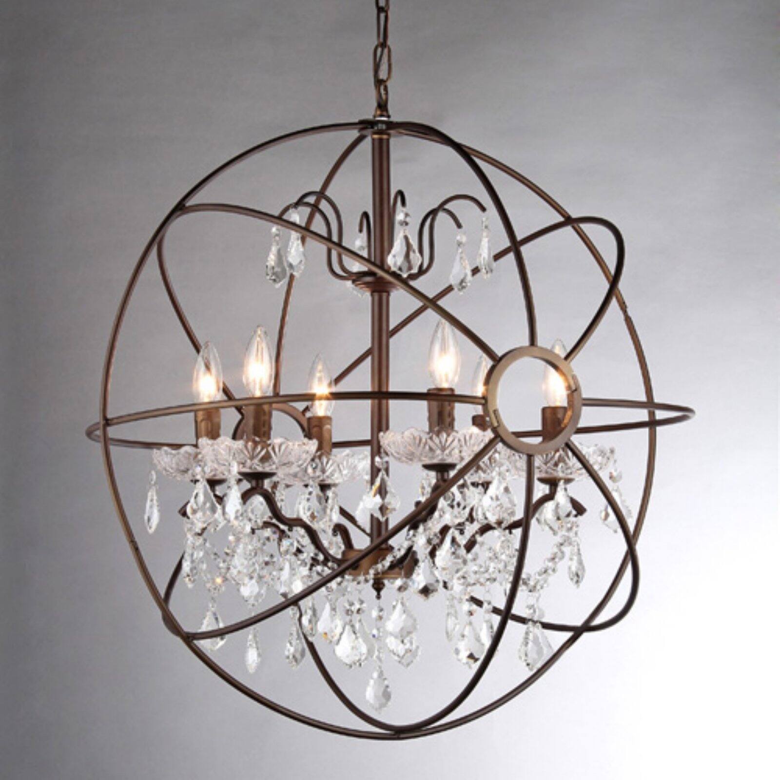 Beautify your living space with this stunning crystal chandelier by Edwards. This indoor chandelier features an eye-catching geometric design and cascading crystals that give any room a more contemporary look. The multidirectional lighting illuminates every corner of a room, and the solid metal base makes it durable enough to last for years. Setting: Indoor Fixture finish: Antique bronze Materials: Metal/crystal Number of lights: Eight (8) Requires: Eight (8) x 25-watt bulbs (not included) Switch Type: Hardwired Dimensions: 32 inches diameter This fixture needs to be hard wired. Professional installation is recommended.