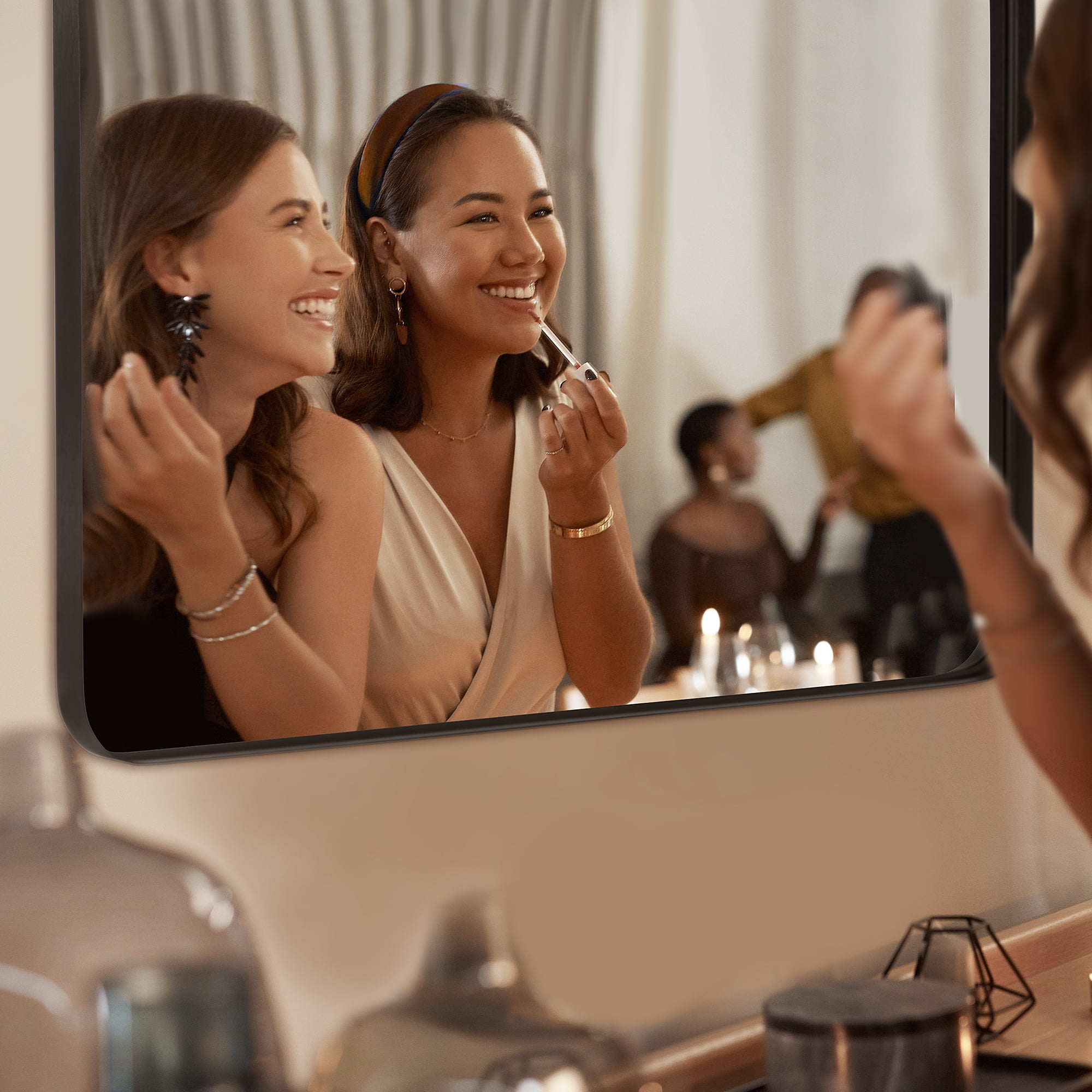 Our cutting-edge HD bathroom mirror crafted using advanced 4-layer float technology, it guarantees a crystal-clear, distortion-free image and quickly disperses fog for a pristine finish. Boasting a robust metal frame and 5mm tempered glass, this mirror is designed to be shatter-proof and ensure utmost safety. Its sleek black, waterproof, and rust-resistant construction adds a touch of contemporary sophistication to any setting. Elevate the ambiance of your bathroom, bedroom, or living room with this chic and long-lasting mirror. Upgrade your space to the next level of elegance today!