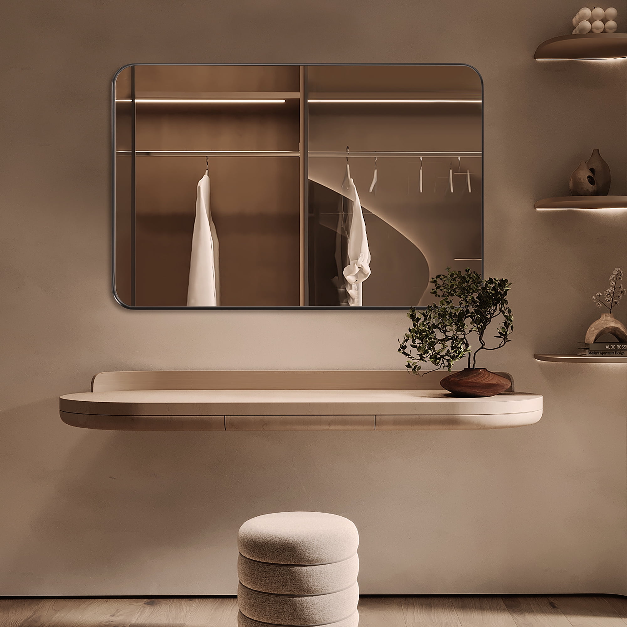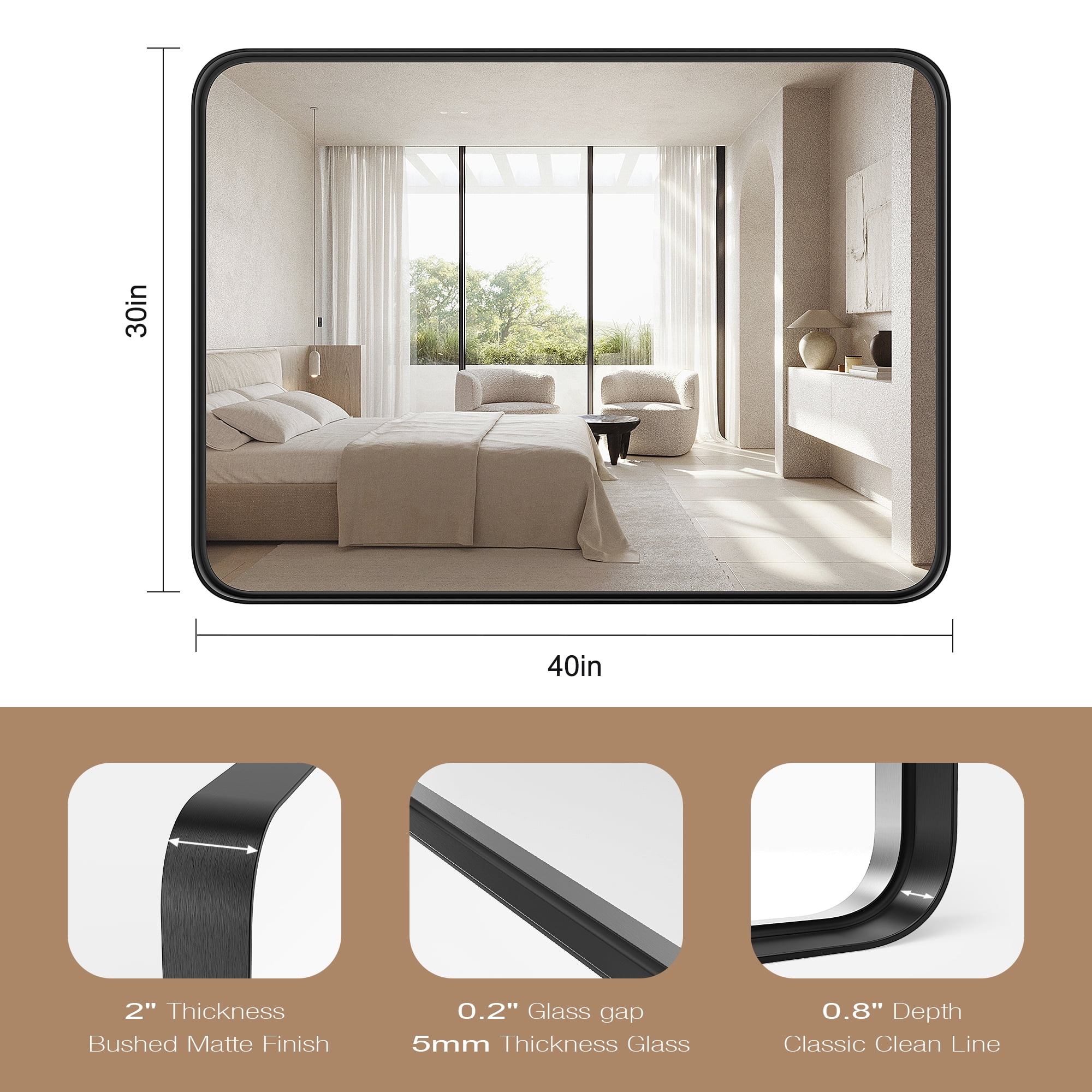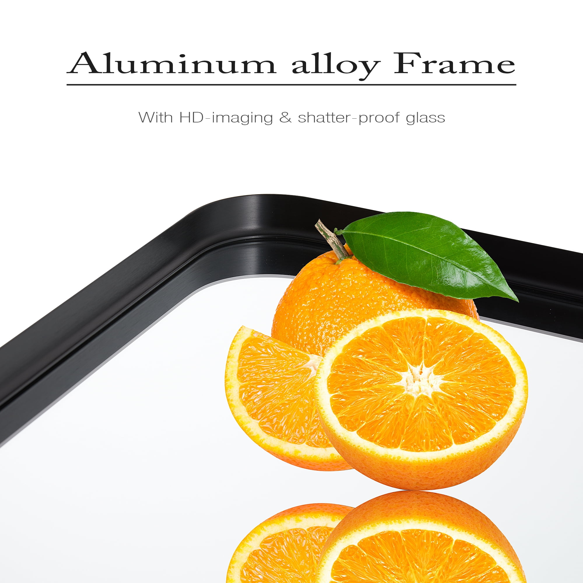 【CLEAR & HIGH-DEFINITION】Discover a level of clarity you’ve never seen before with our range of bathroom mirrors. Using 4-layer float technology, these mirrors restore your reflection with unparalleled precision, while also dispersing fog almost instantly. The result is a bright, distortion-free image that is simply flawless. 【ROBUST METAL FRAME】Unlike ordinary mirrors, our bathroom vanity mirrors are built to last. Featuring a 5mm tempered glass that is shatter-proof and burst-proof, these mirrors offer the highest level of safety. Specifically designed for bathroom use, they provide sturdy durability and long-lasting performance. 【WATERPROOF & RUST-RESISTANT】Crafted with high-quality aluminum alloy and a reinforced baking paint finish, the outer frame of our bathroom mirrors is fully waterproof and resistant to rust. Its sleek black design effortlessly complements any modern or classical home style, instantly adding a touch of sophistication to any space. 【VERSATILE APPLICATION】Boasting a simple and modern style, this black bathroom mirror is the perfect choice for a variety of rooms. Whether in the bathroom, bedroom, living room, dining room, entryway, farmhouse, or even above the fireplace, this decorative wall mirror effortlessly enhances the atmosphere. 【EASY ASSEMBLY】Installing our black mirror couldn’t be easier. Every mirror comes with clear instructions, necessary hardware, and tools. We even provide a helpful installation video, so you can have your mirror mounted on the wall in just 10-15 minutes. Upgrade your space effortlessly with our easy-to-use mirrors.
