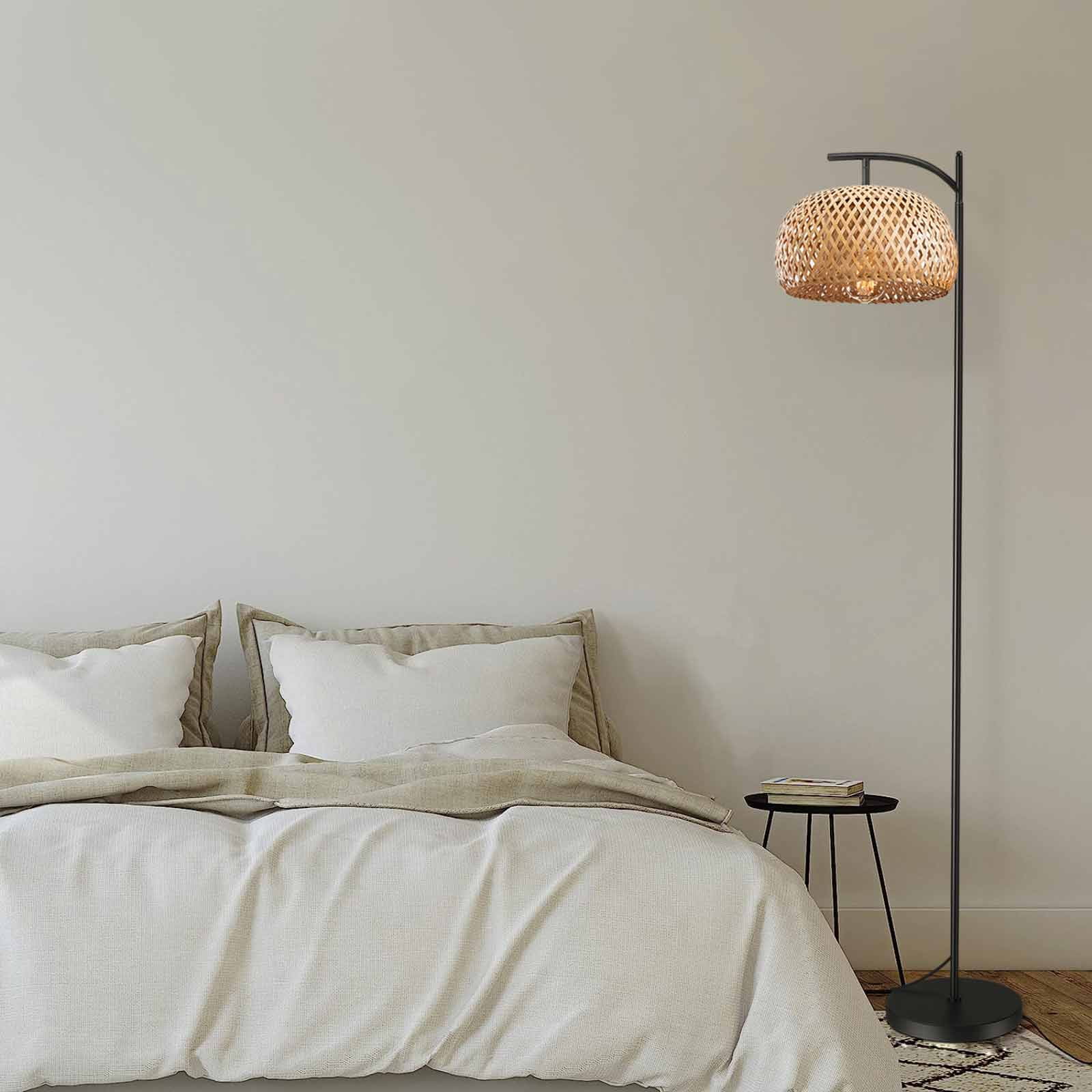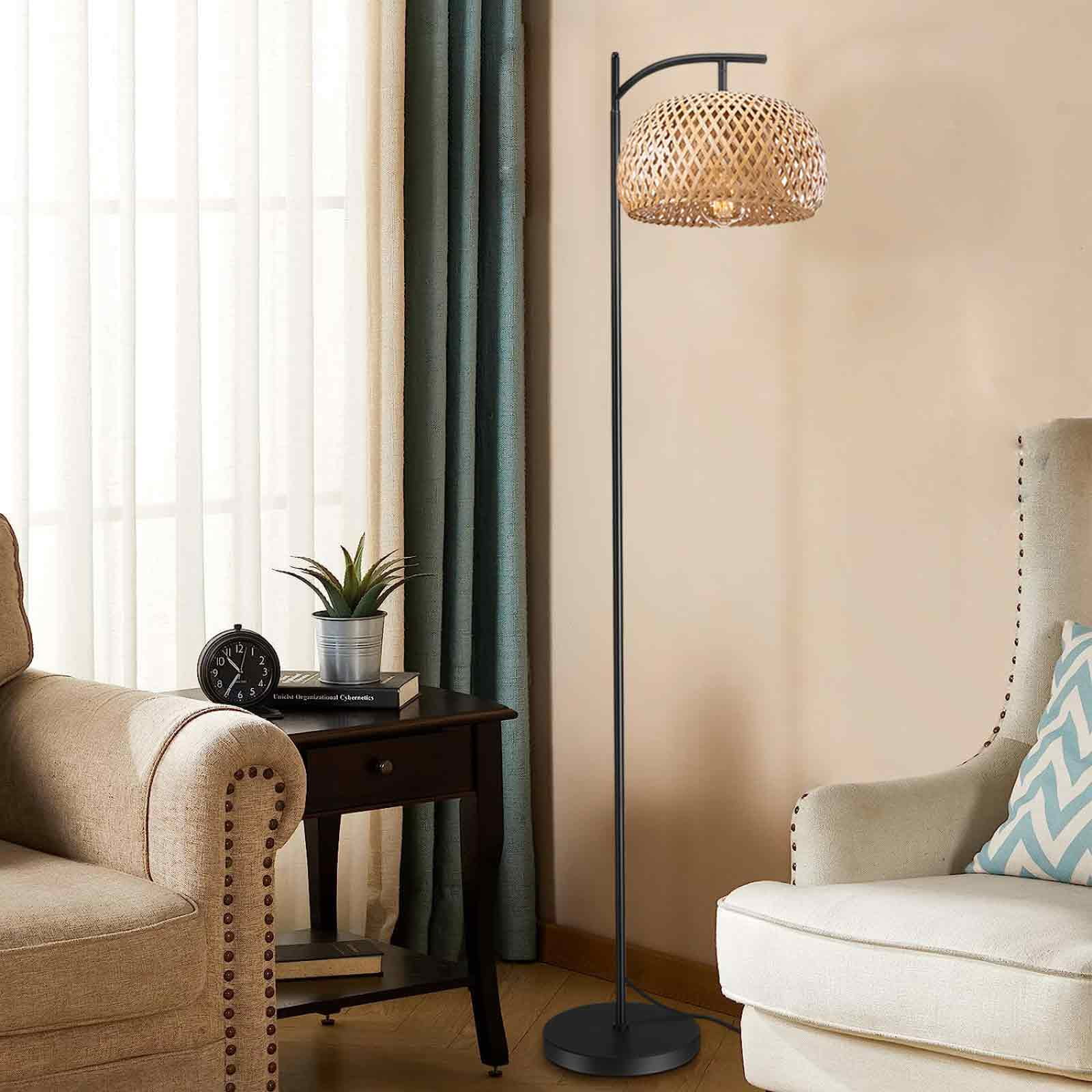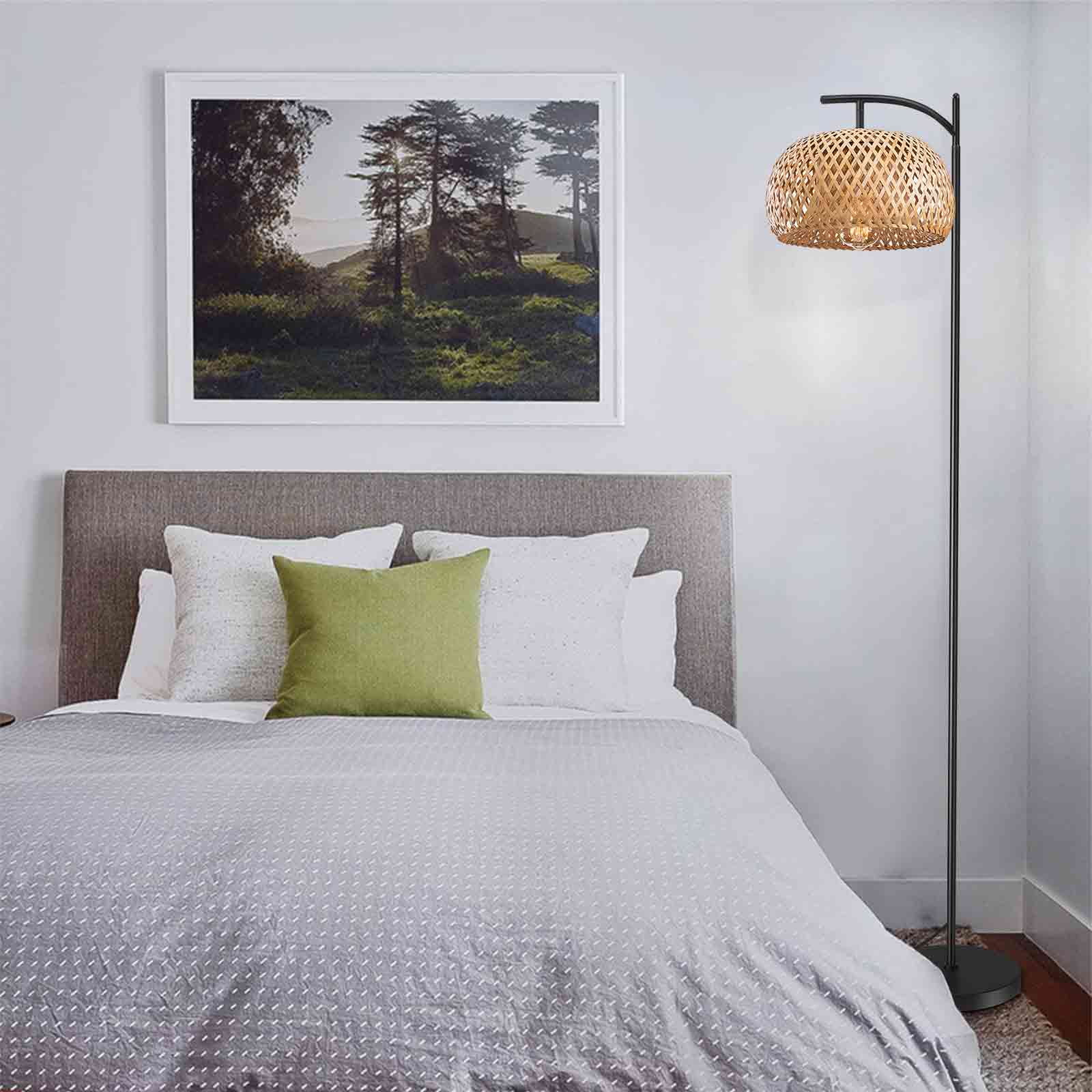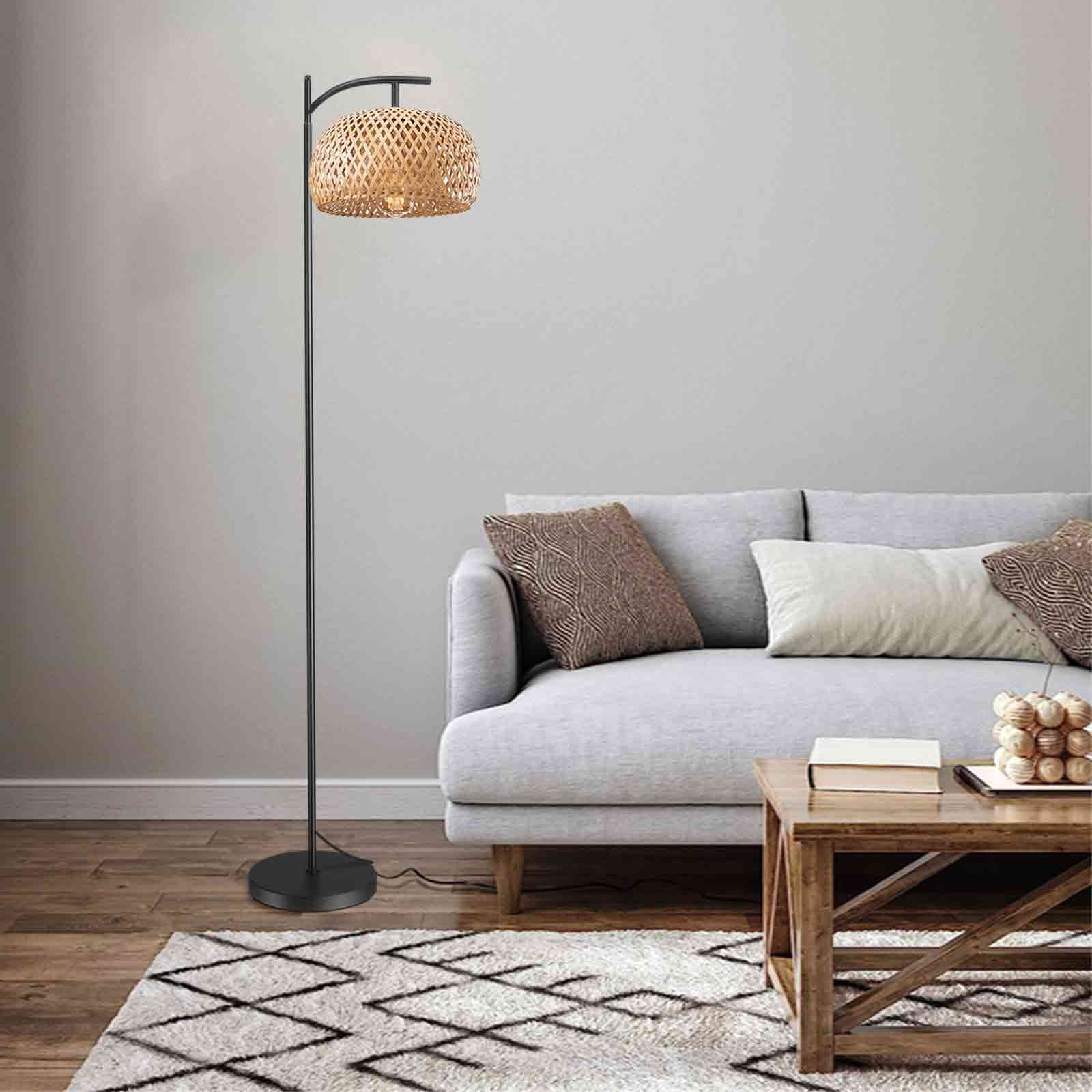 EE Eleven Master Floor Lamp for Living Room Farmhouse Rattan Standing Lamp, Nature Boho Bamboo Lampshade Floor Light for Bedroom, Office (Bulb not Include)