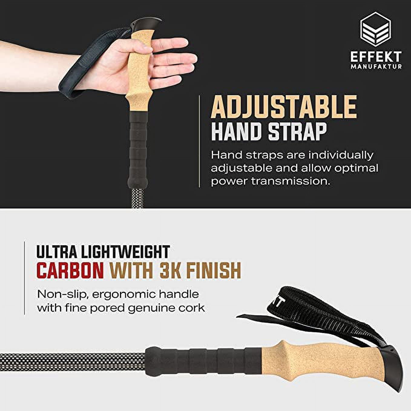 Are you adventurous and want to explore mountains and hilly terrains? looking for robust equipment to go anywhere without limitations? Effekt Manufaktur carbon fiber trekking poles for men and women in Black are prefect for all expenditures!