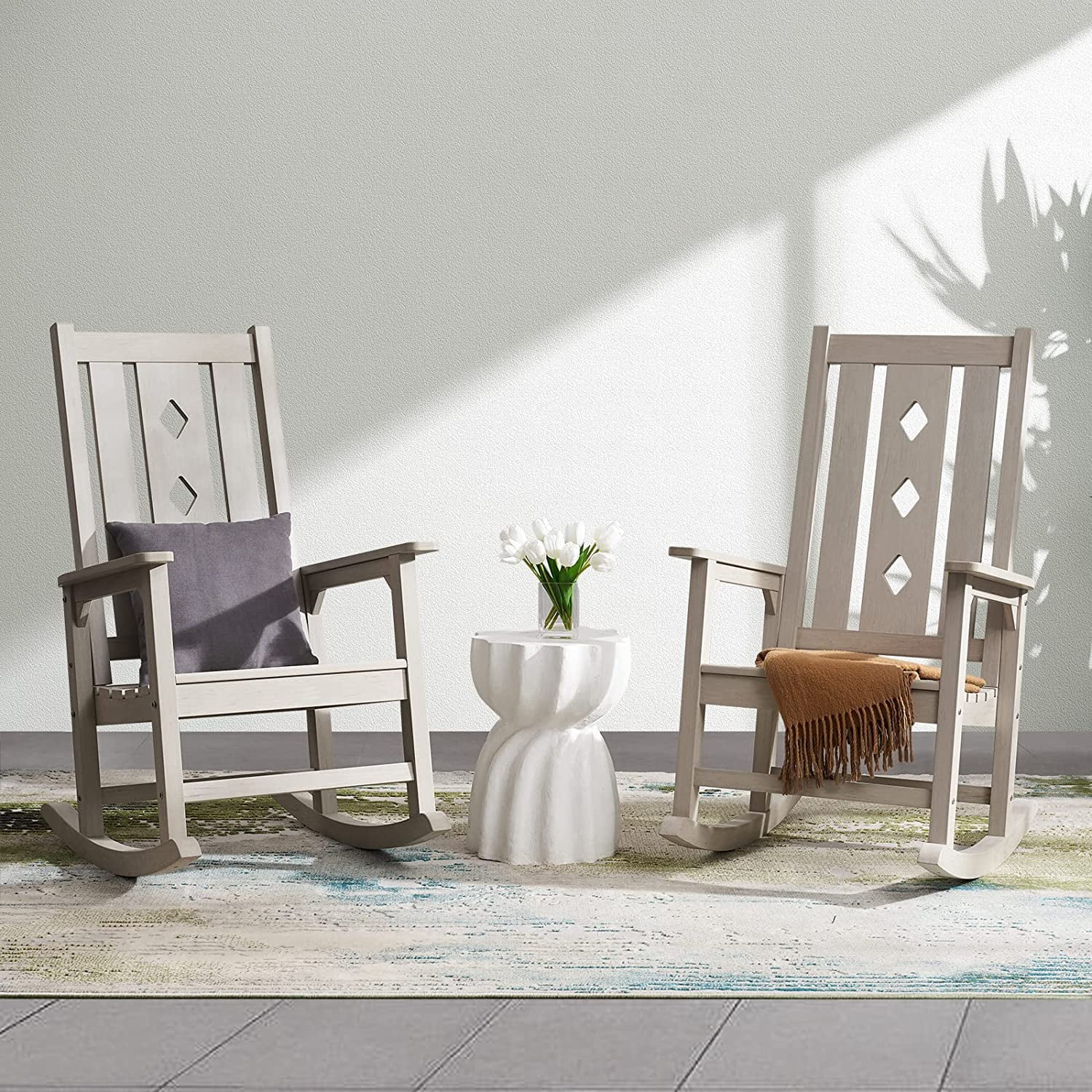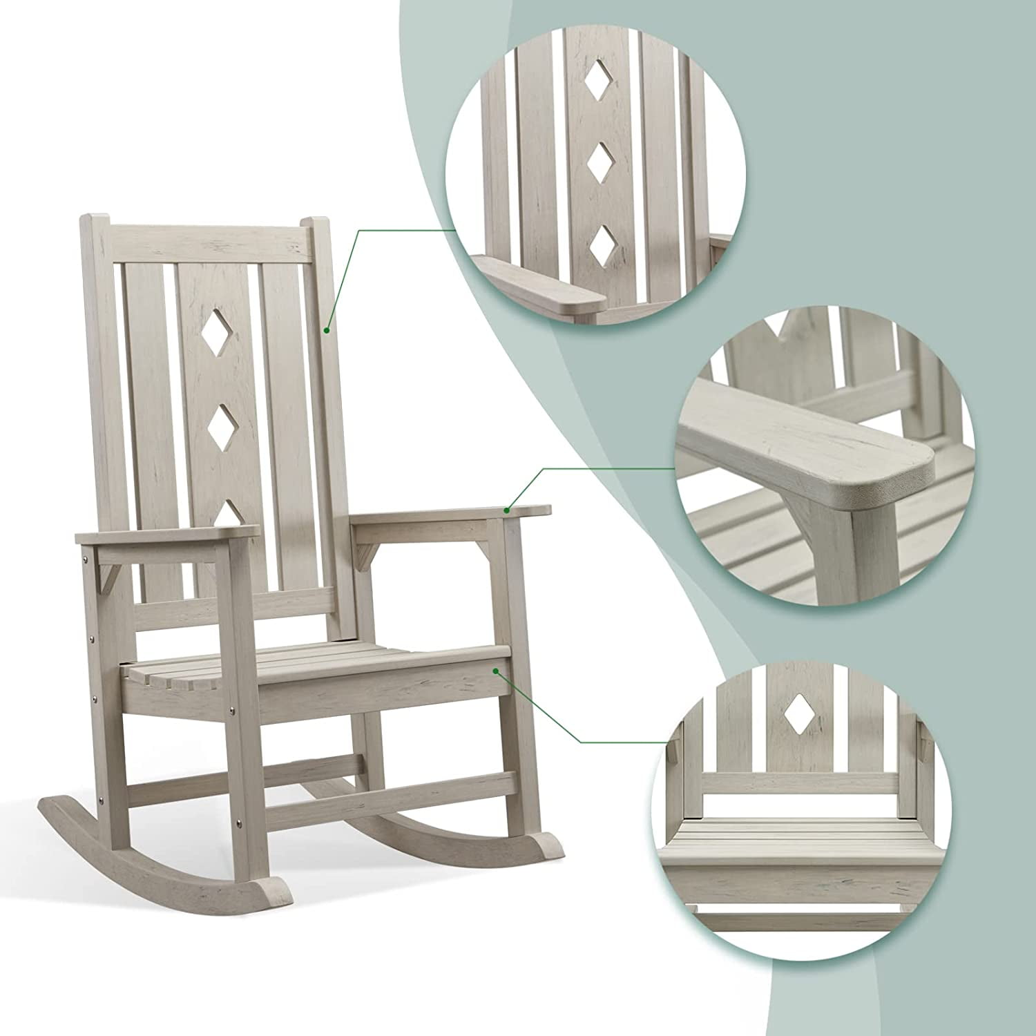 Efurden Rocking Chair Over-Sized, Weather Resistant Patio Rocker for Adults, Smooth Rocking Chair for Indoor and Outdoor, 350lbs Load (Light Gray with Azure Grain)