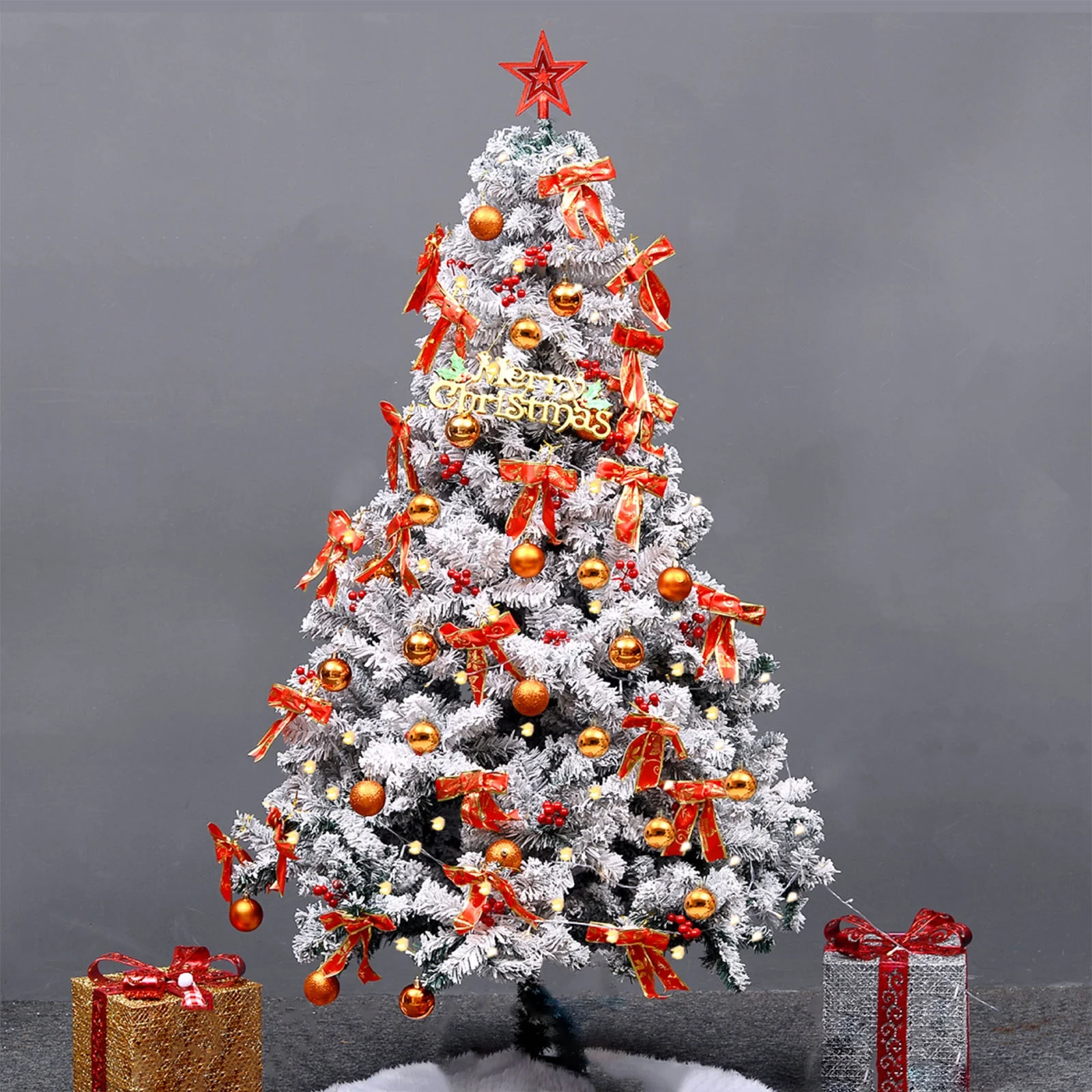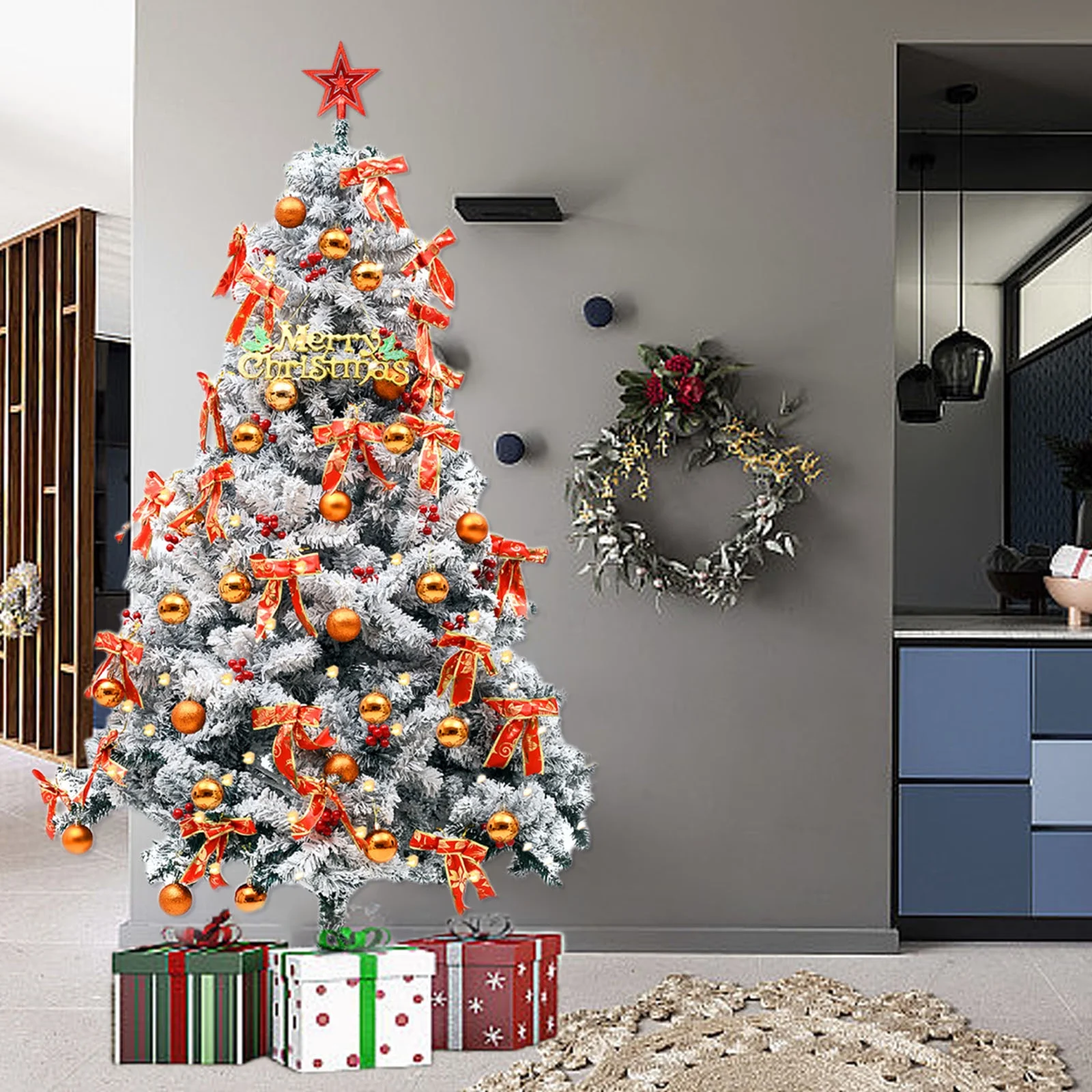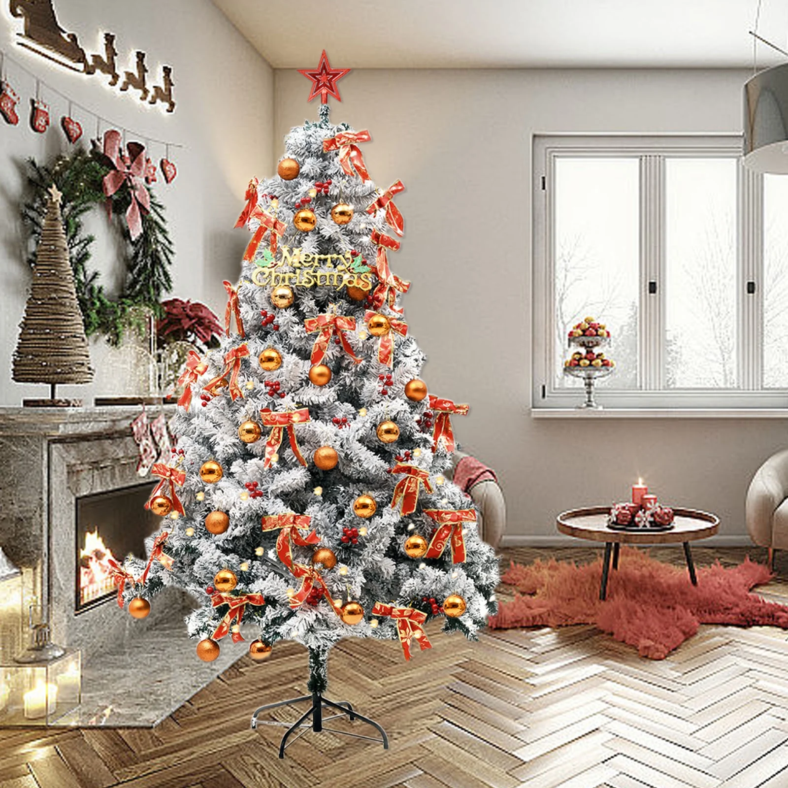 EGNMCR Pre-Lit Artificial Christmas Tree, 6.9ft Snow Flocked Xmas Tree with 900 Branch Tips&Christmas Tree Ornaments Set, Easy Assembly, Christmas Trees for Home, Office, Holiday Party Decorations