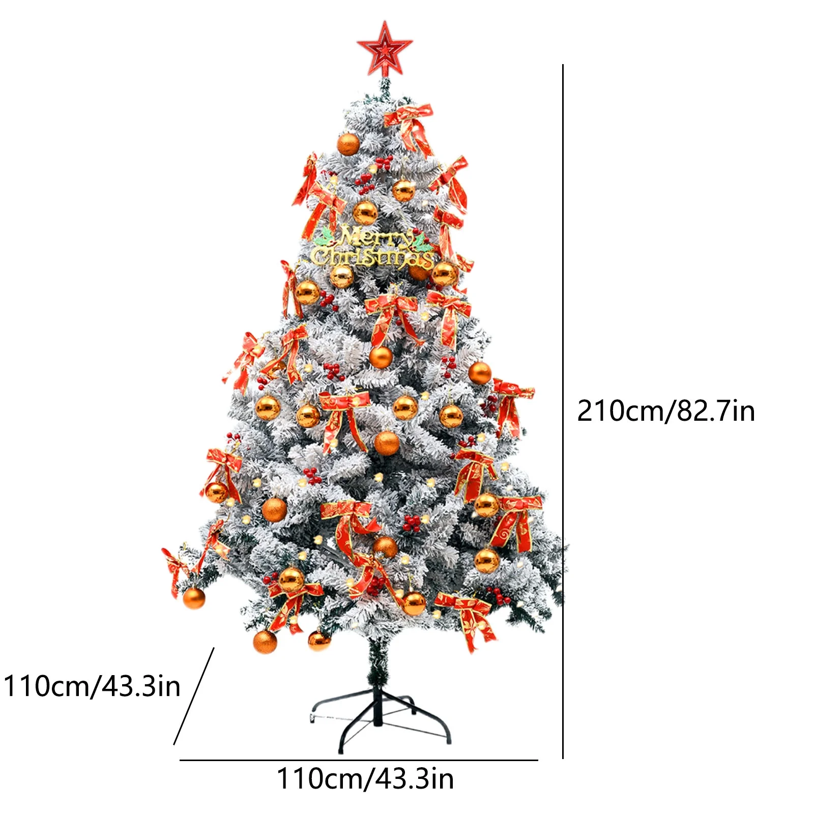 Enhance Your Holiday Decor With The Exquisite Snow Covered Plush Christmas Tree 82.6in Snow Flocked Artificial Holiday Christmas Tree Set With Light Feature: Product Name: Christmas Tree Material: PVC+metal Product color: Multicolor Product size: 210x105cm/83×41.5in Packing size: 110x30x30cm/43.3×11.8×11.8in Gross weight: 5455g/12lb Description: Festive Decoration: This Christmas tree is the perfect addition to your holiday decor. With its snowflake plush and encrypted design, it creates a festive ambiance that brings the true spirit of Christmas into your home,excite holiday cheer in your home, office, holiday party, and more with a Christmas tree that helps make the season feel complete. Abundant Christmas tree package is very suitable for decoration. Premium Quality: Crafted with attention to detail, this Christmas tree features branches that are full, giving it a lifelike appearance. The metal base provides stability and durability, ensuring that it will last for many holidays to come.strong enough to hold garland and all your favorite ornaments for a customized look Suitable Sizes: Available In 6.9ft this Christmas tree can suitable for any space, whether it’s a cozy apartment or a spacious living room. create a stunning centerpiece for your holiday celebrations. Easy assembly and fluffing: Put the tree together in just 3 steps: simply connect the base to the largest part of the tree before attaching the remaining sections and easily fluffing the branches Perfect Holiday Gift: Whether you’re buying it for yourself or as a gift for someone special, this Christmas tree is sure to satisfy. Its elegant design and quality craftsmanship making it a standout choice for anyone looking to add some holiday ambiance to their home. Package Included: 1x Christmas Tree 1x Welcome Sign 1x 32.8FT Light Srip 1x Star 12x Bows 20x Red Fruit Strings 24x Christmas Balls