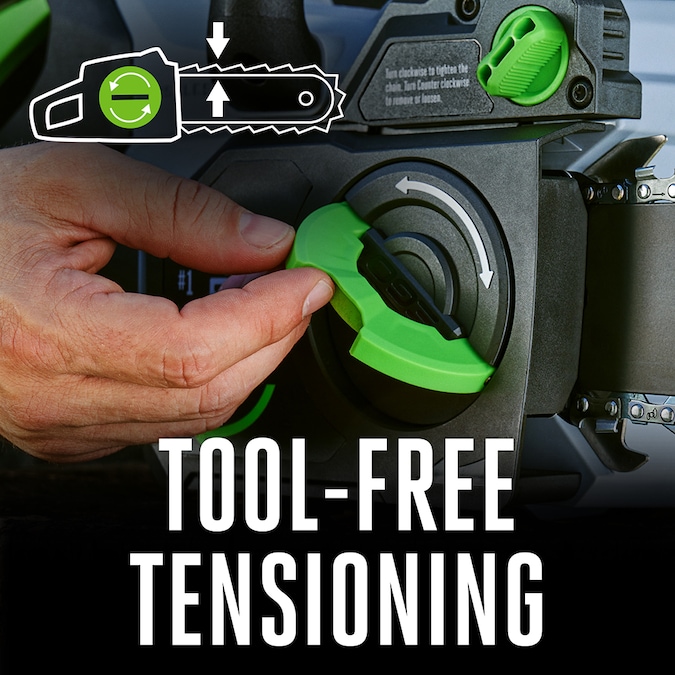 - Tool-free chain tensioning system for quick, easy bar and chain adjustments